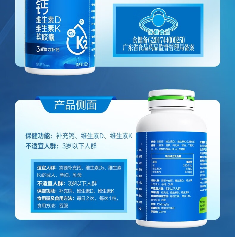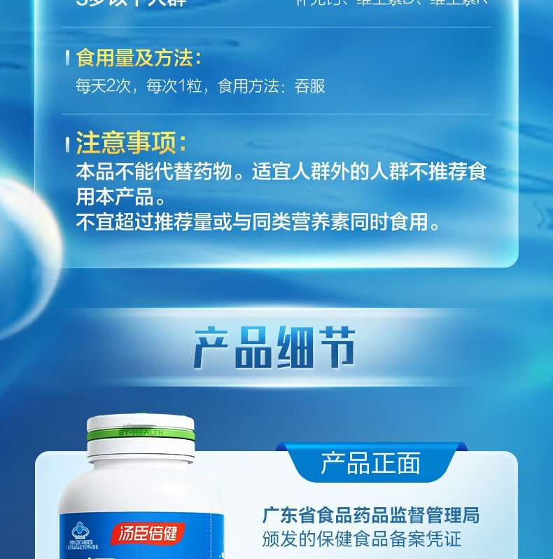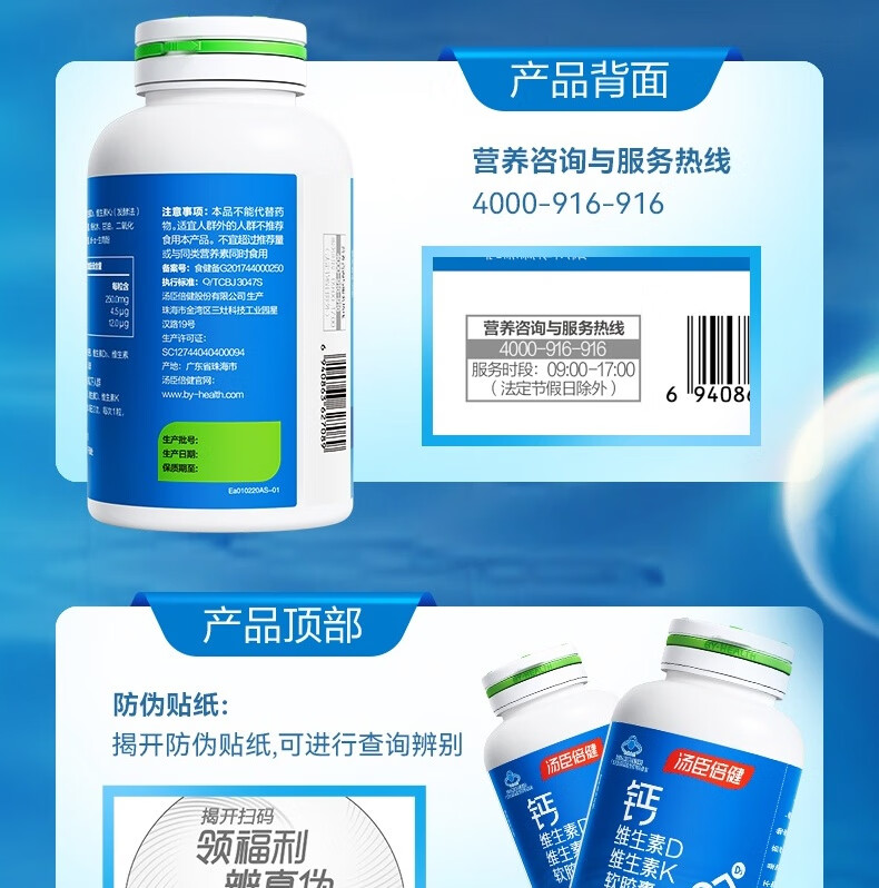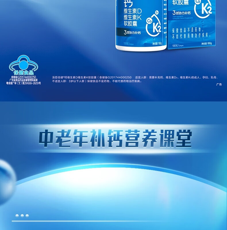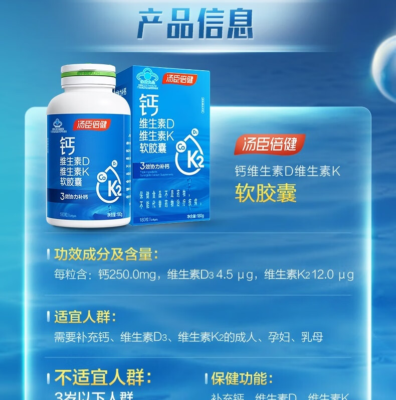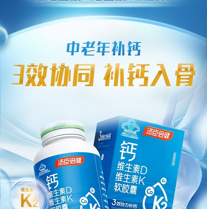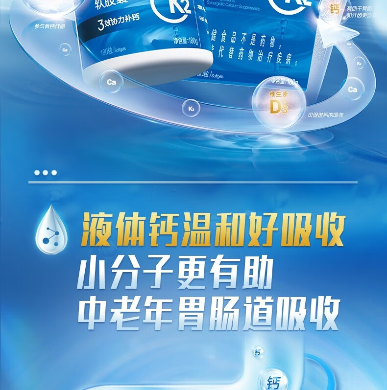 汤臣倍健液体钙维生素d3胶囊180粒成人钙片中老年补钙女士补钙