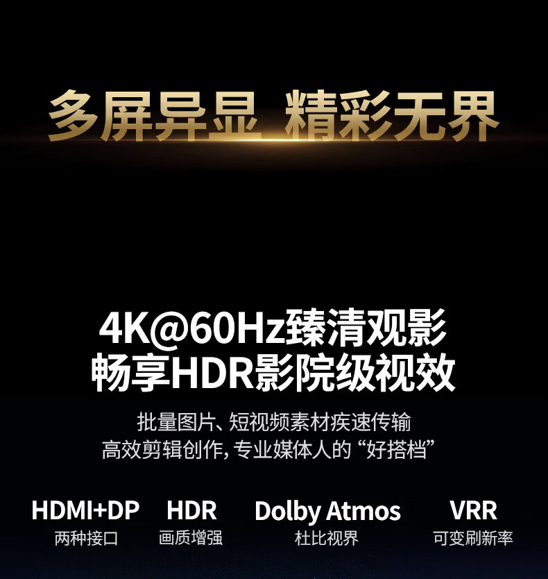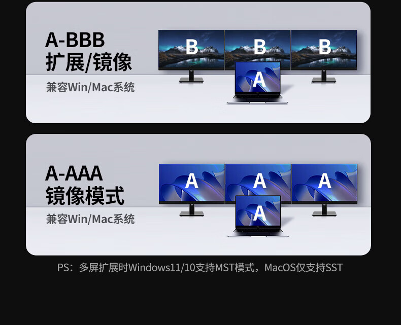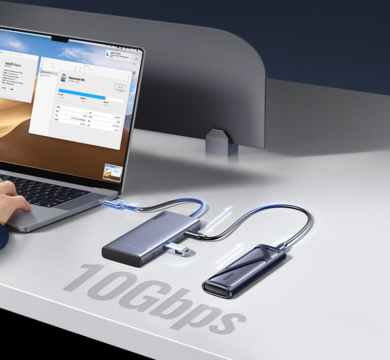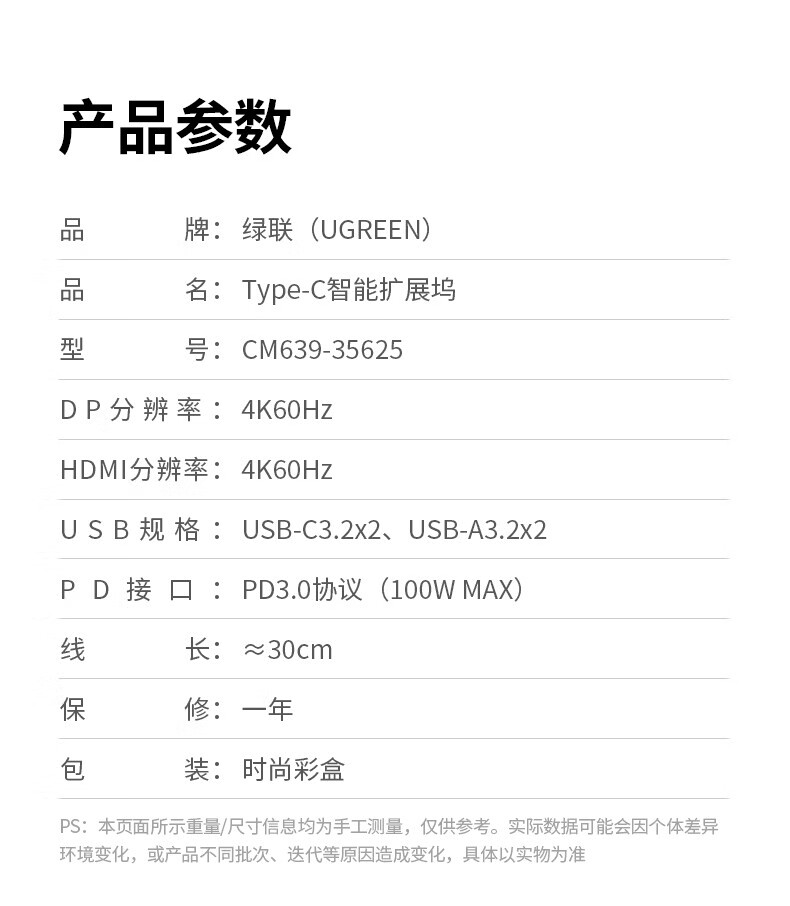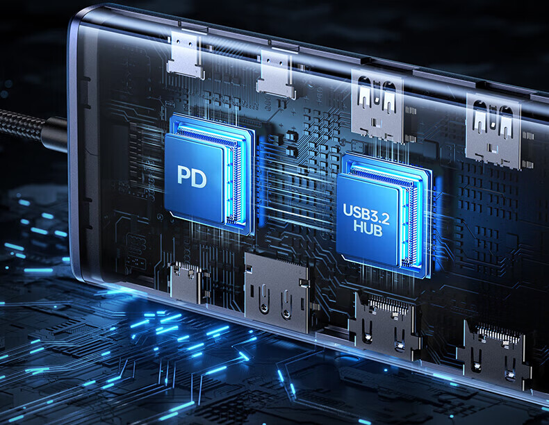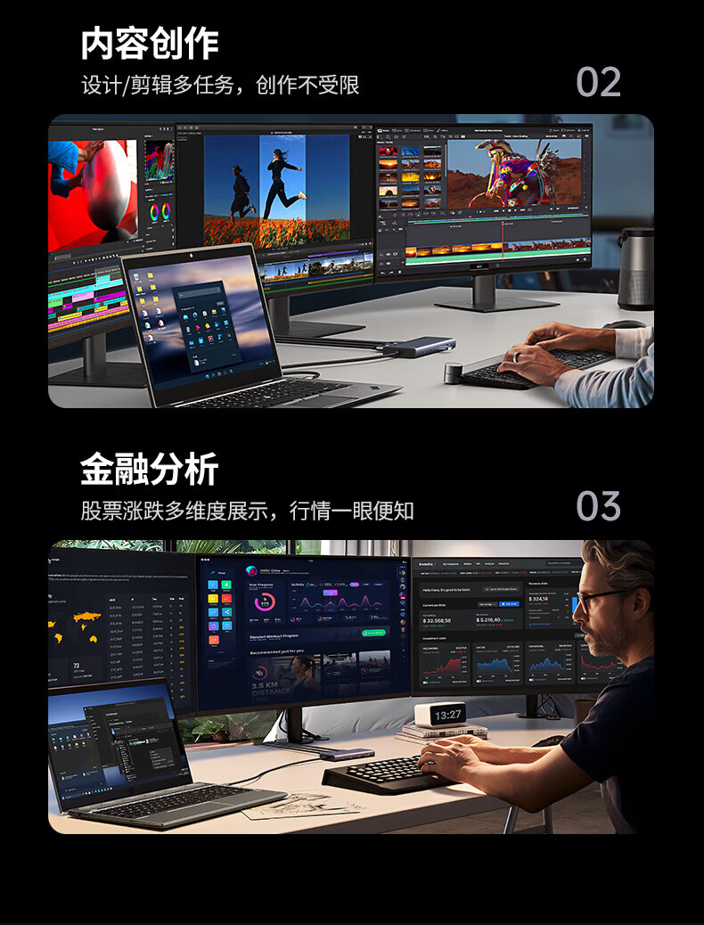 绿联(UGREEN)Type-C3.2双HDMI/DP八合一8合1扩展坞USB-C雷电5拓展坞10G转接4K60Hz多屏扩展适用联想华为电脑MST 8合一音频款CM880-55544