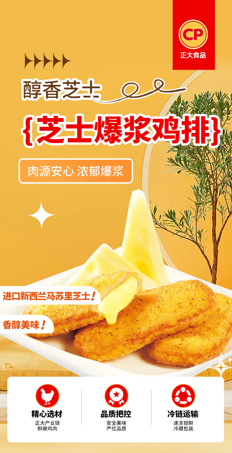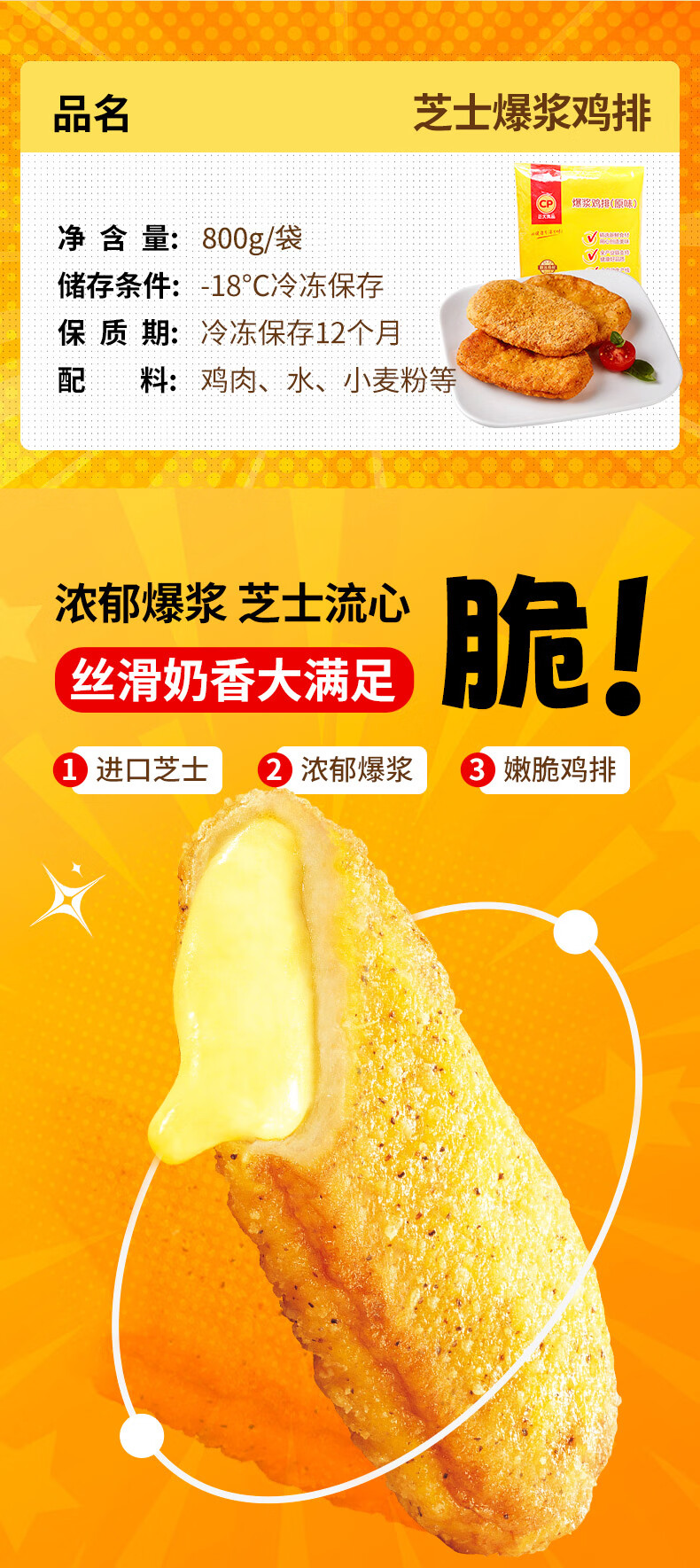 正大食品(CP)芝士爆浆鸡排1.6斤 早餐半成品鸡排 空气炸锅食材春节送货