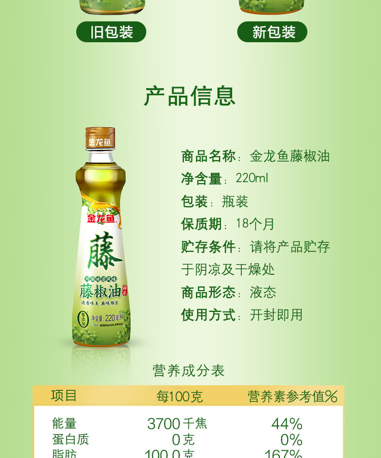 金龙鱼藤椒油220ml青藤椒 麻椒油麻油香油 米线麻辣烫火锅 调味川渝风味