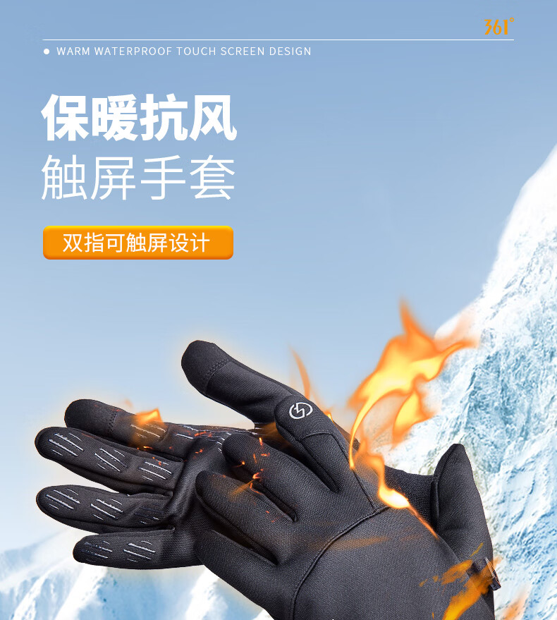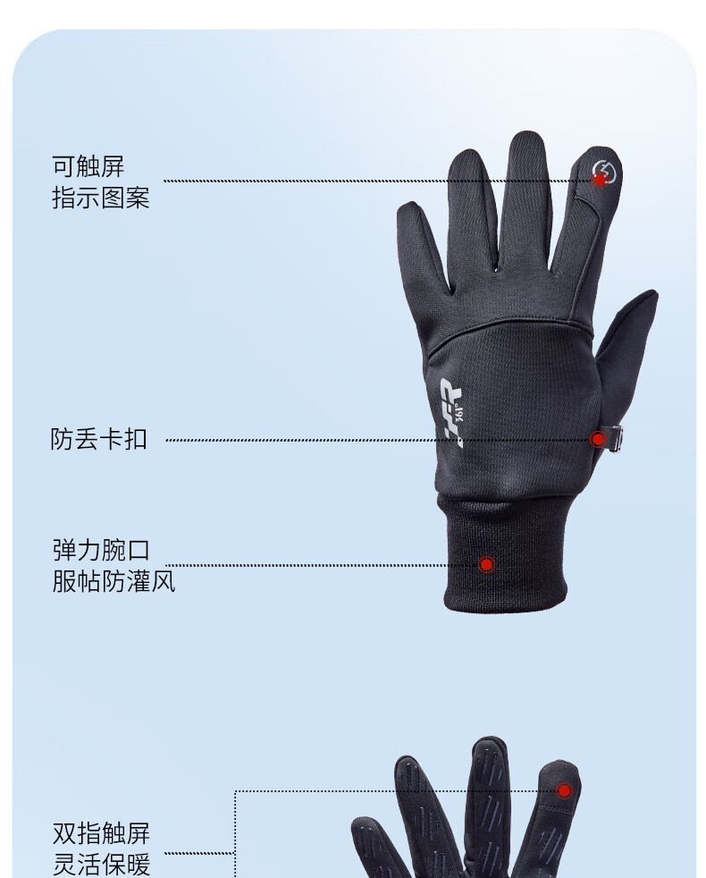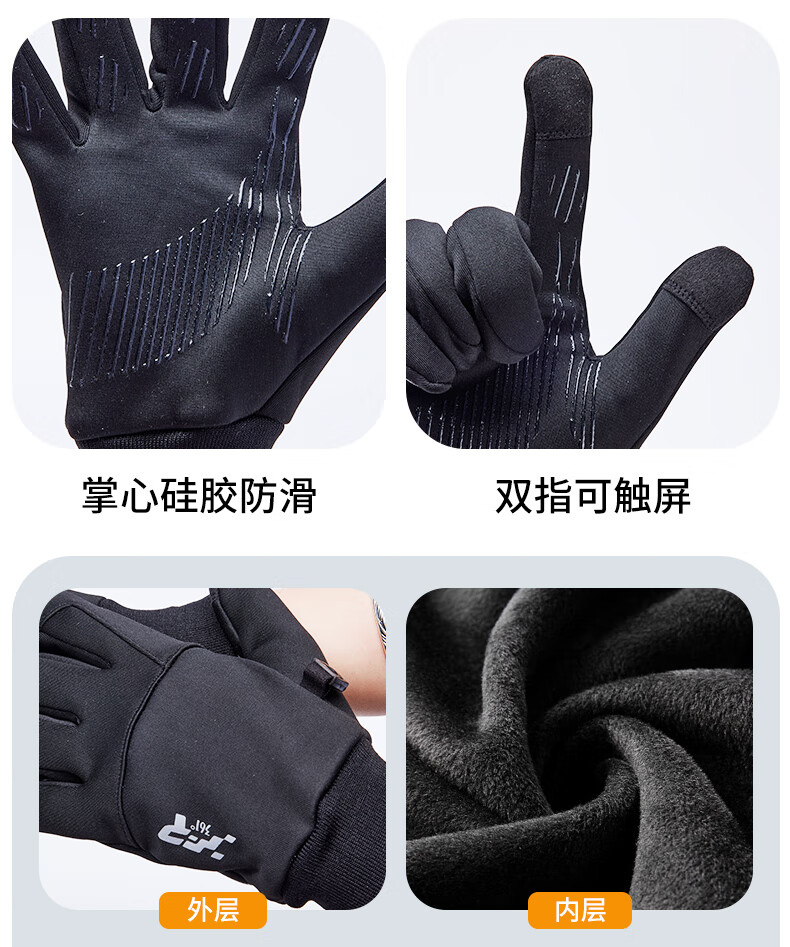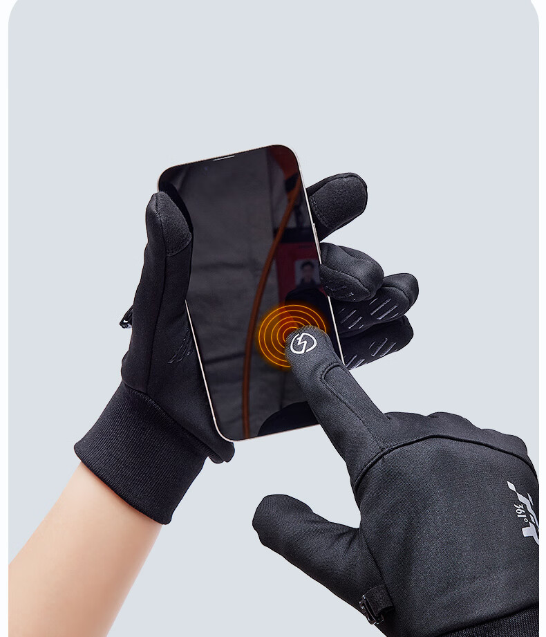 361°手套冬季骑行保暖防风电动摩托车跑步户外男女自行车加绒触屏 女款黑色