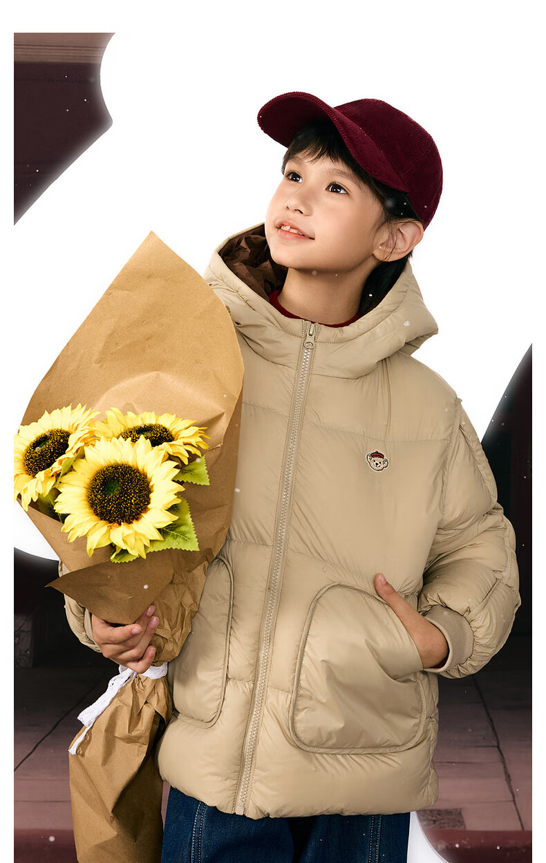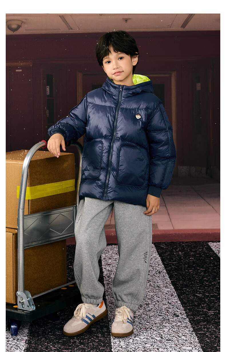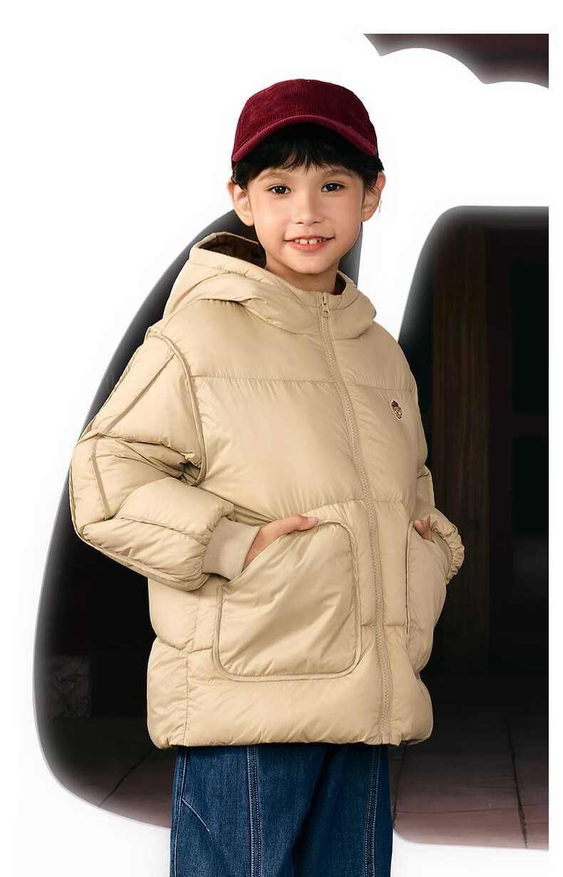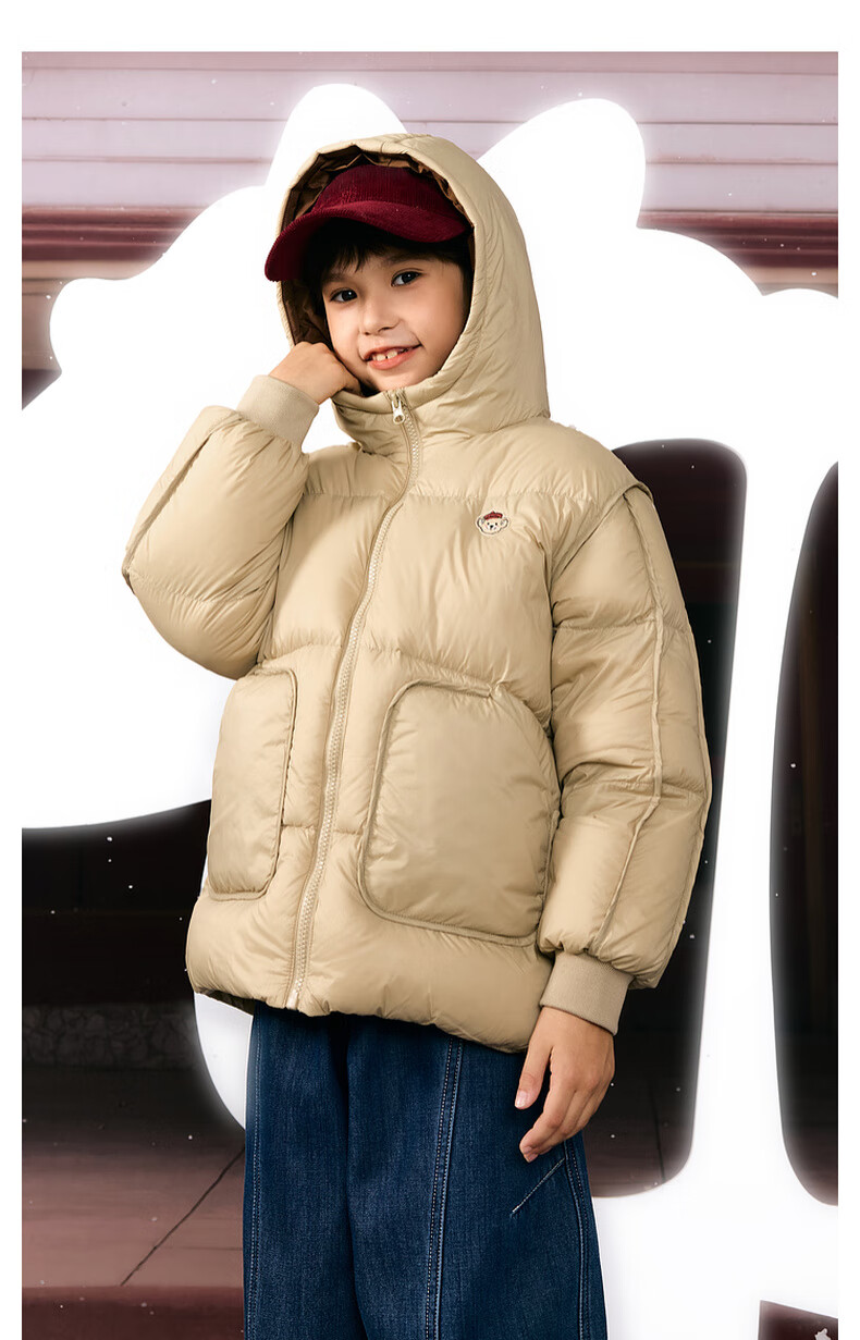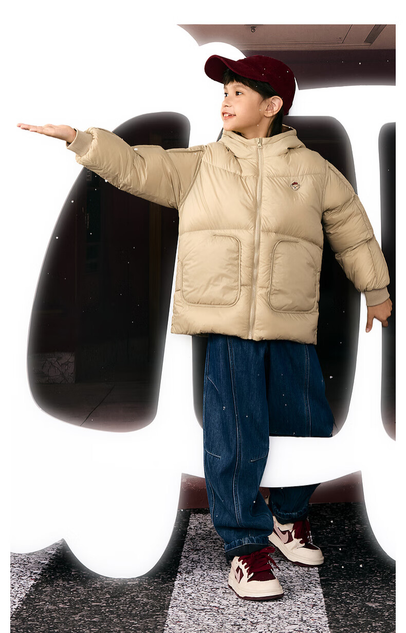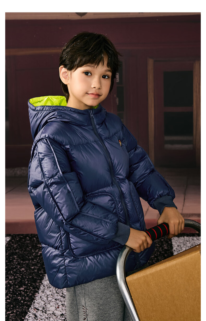 马骑顿男大童冬季新品学院风潮酷休闲保暖连帽羽绒服中长款 军绿 140 充绒量87g