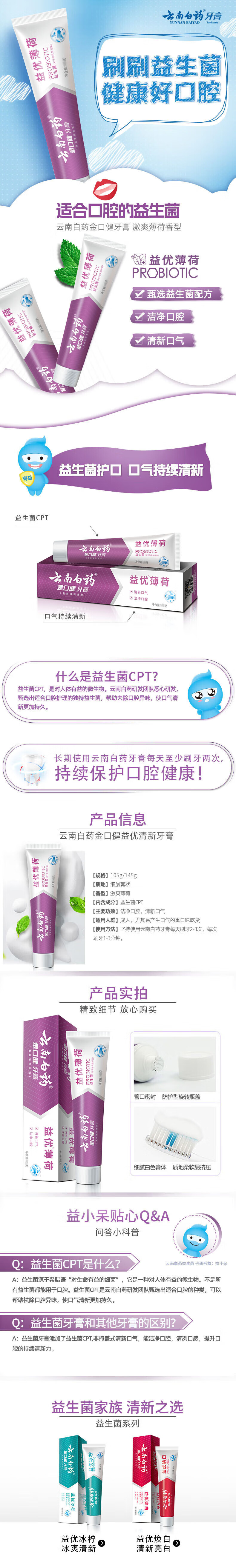 云南白药益生菌牙膏420g益优冰柠*2 益优薄荷*2 清新口气 益生菌牙膏420g