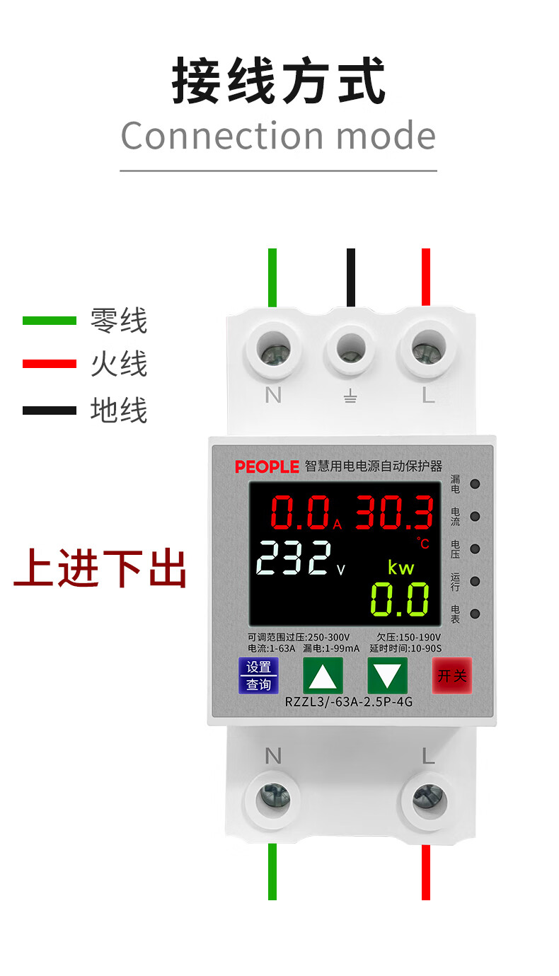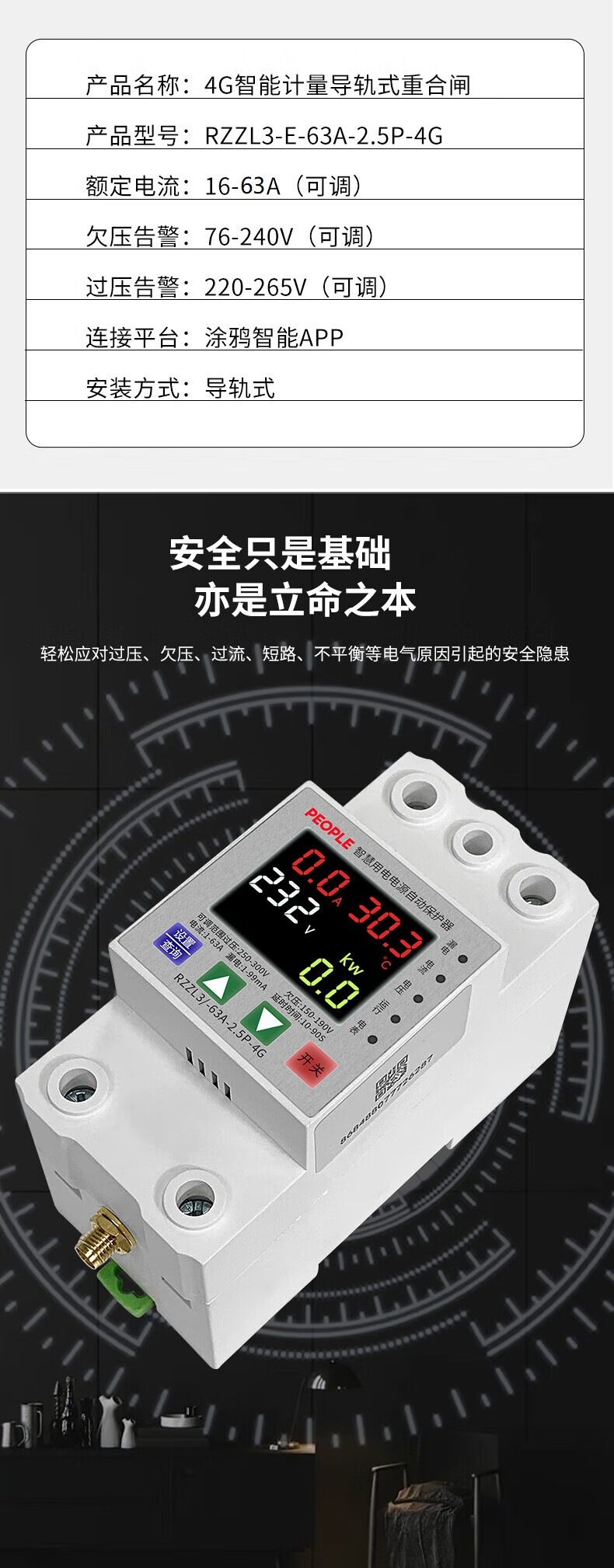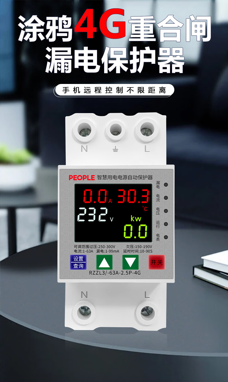 人民涂鸦4G智能重合闸手机远程控制语音定时漏电保护器开关 RZZL3-E-63A-2.5P-4G