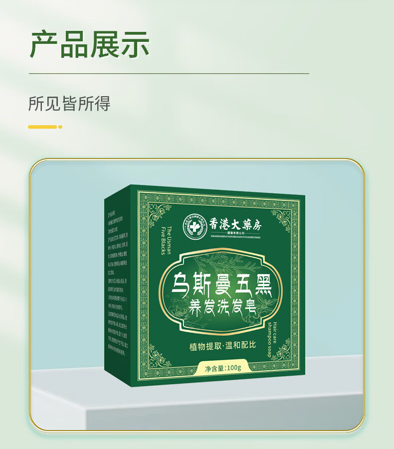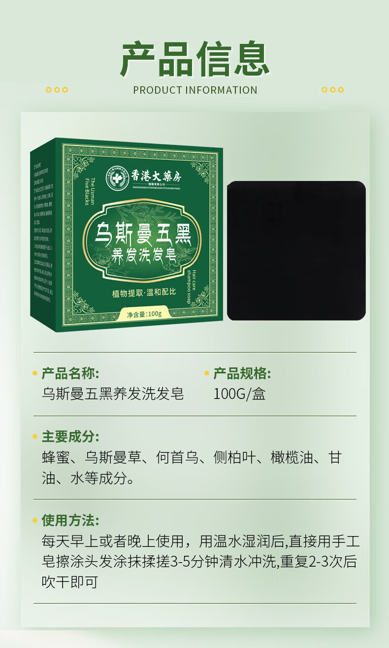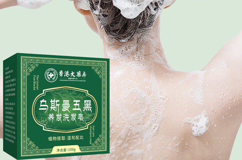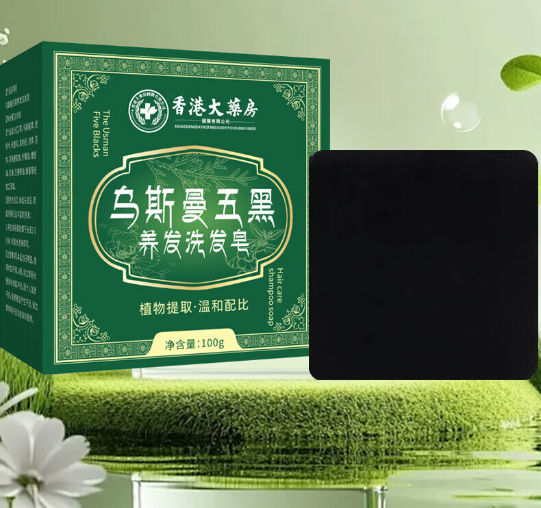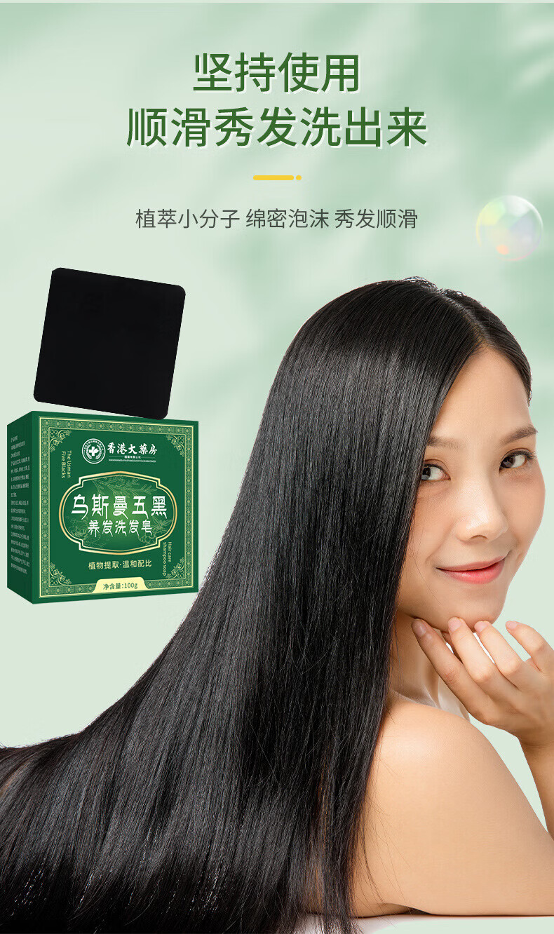 香港大药房洗完自然黑正品新疆乌斯曼草洗发皂乌黑亮泽养发植物精华皂 1盒【体验装】温和清洁不伤头皮