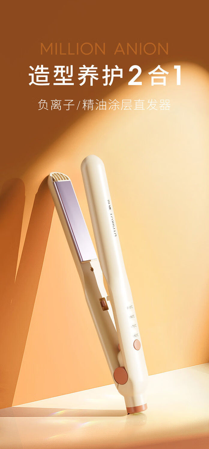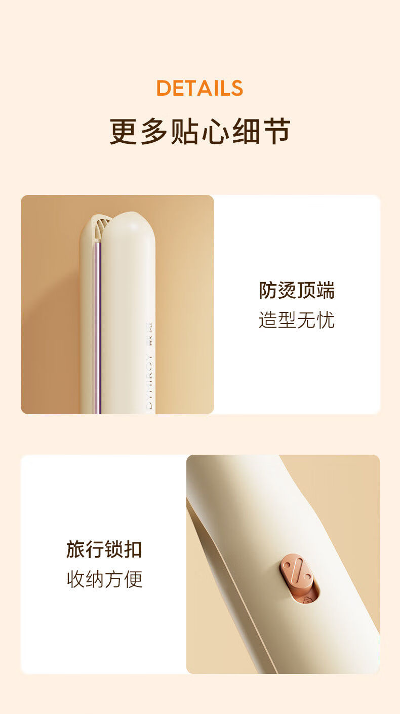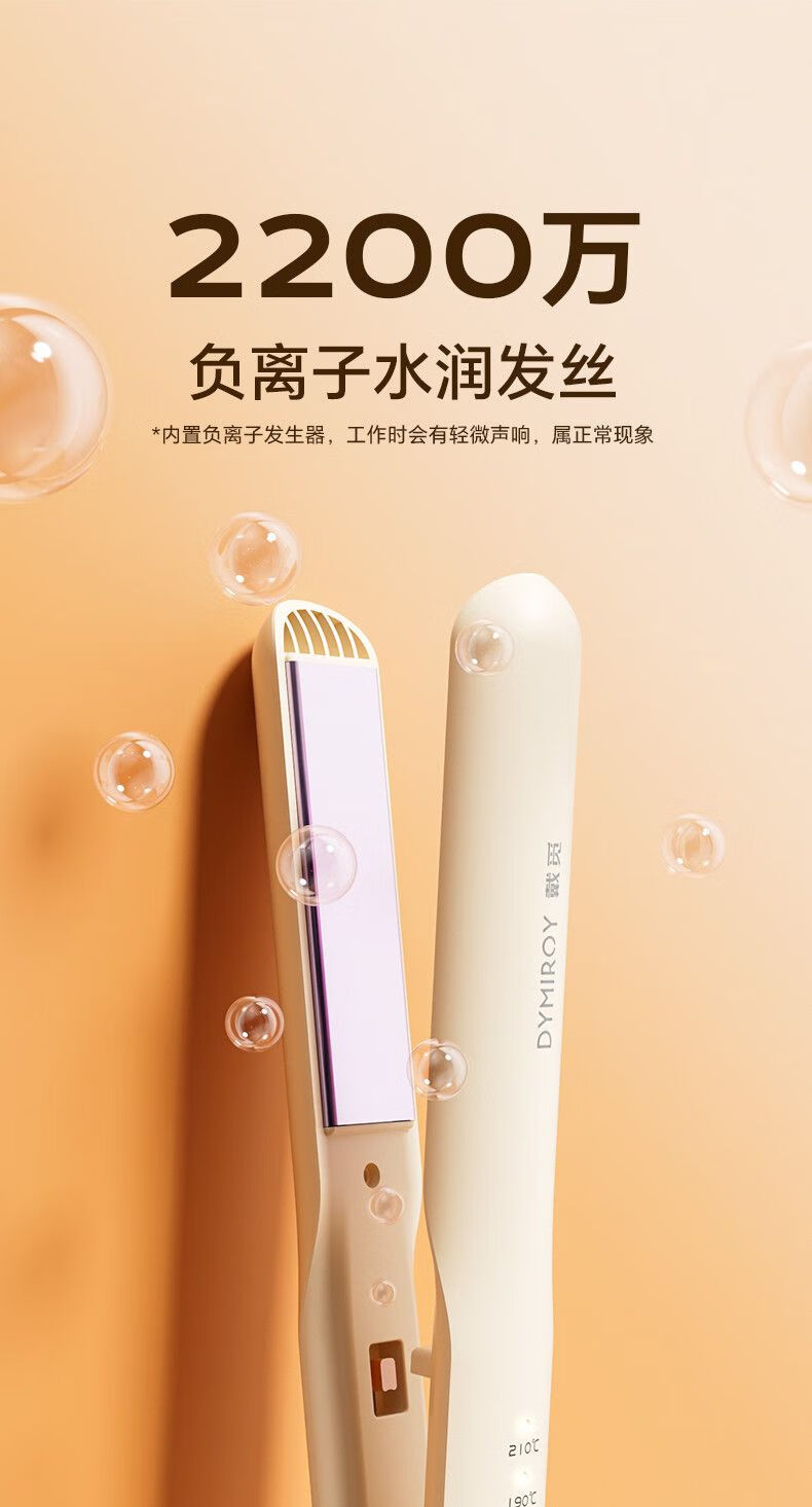 DYMIROY 戴觅直板夹负离子夹板护发拉直板卷直两用宿舍刘海烫发夹熨板高颅顶蓬松卷发棒迷你便携小型不伤发造型 米色全配款【千万负离子+精油护发+蓬松秀发】