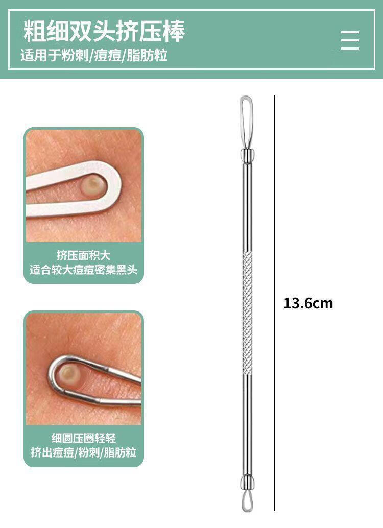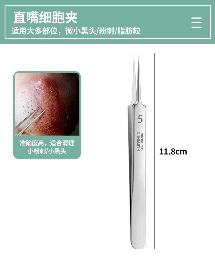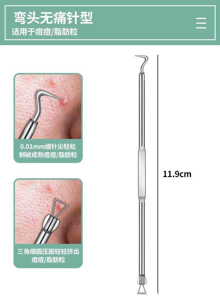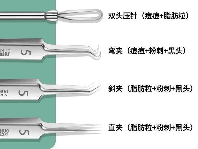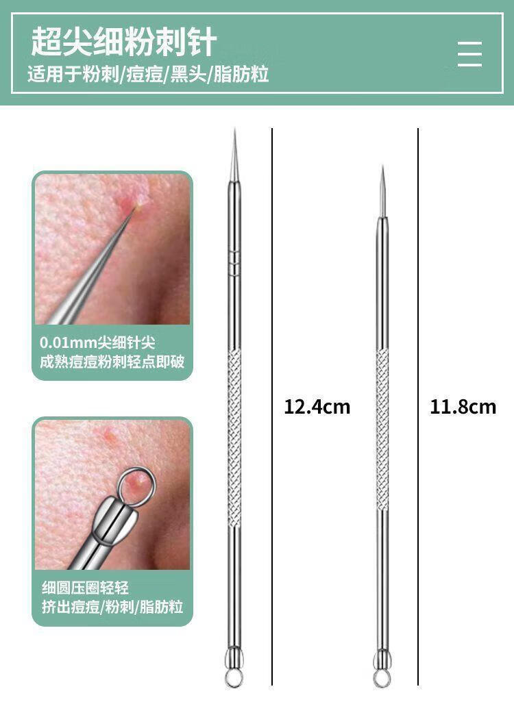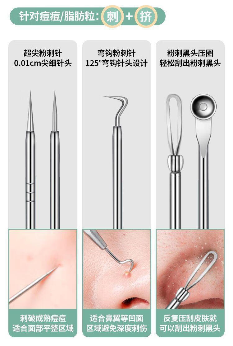 德国不锈钢去黑头针细胞夹子粉刺针套装夹夹挤镊子神器暗疮痘痘 超级甄选9件套 1件 (铁盒)