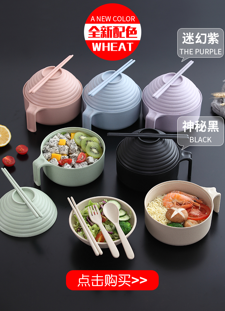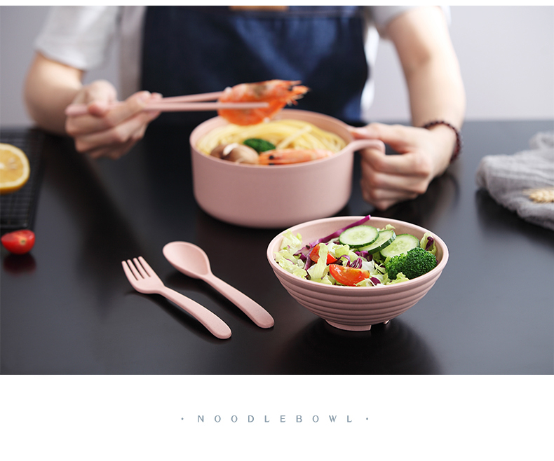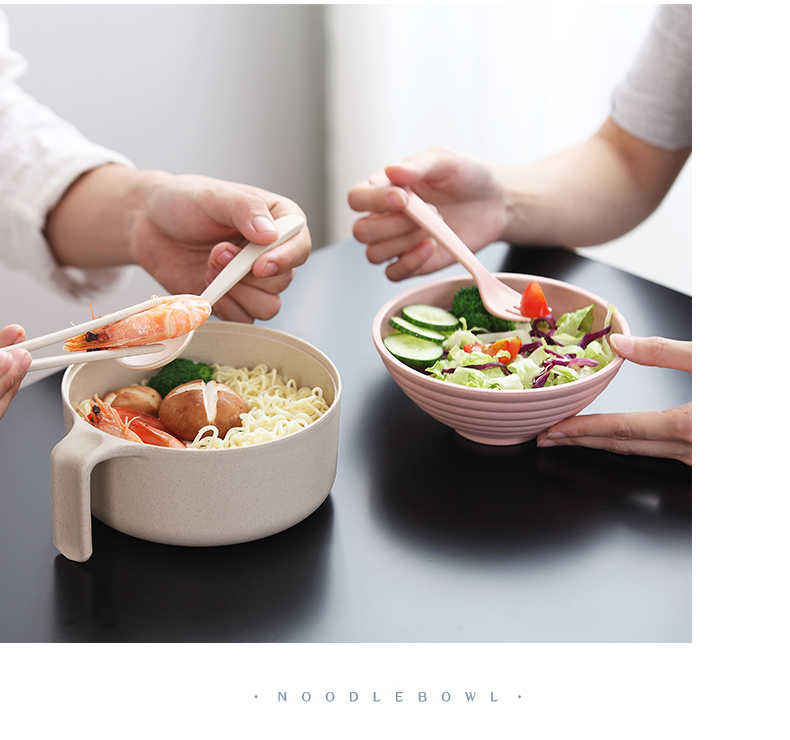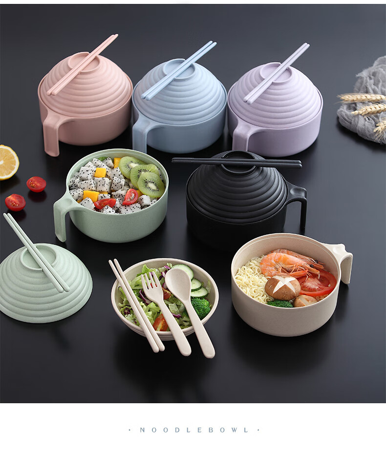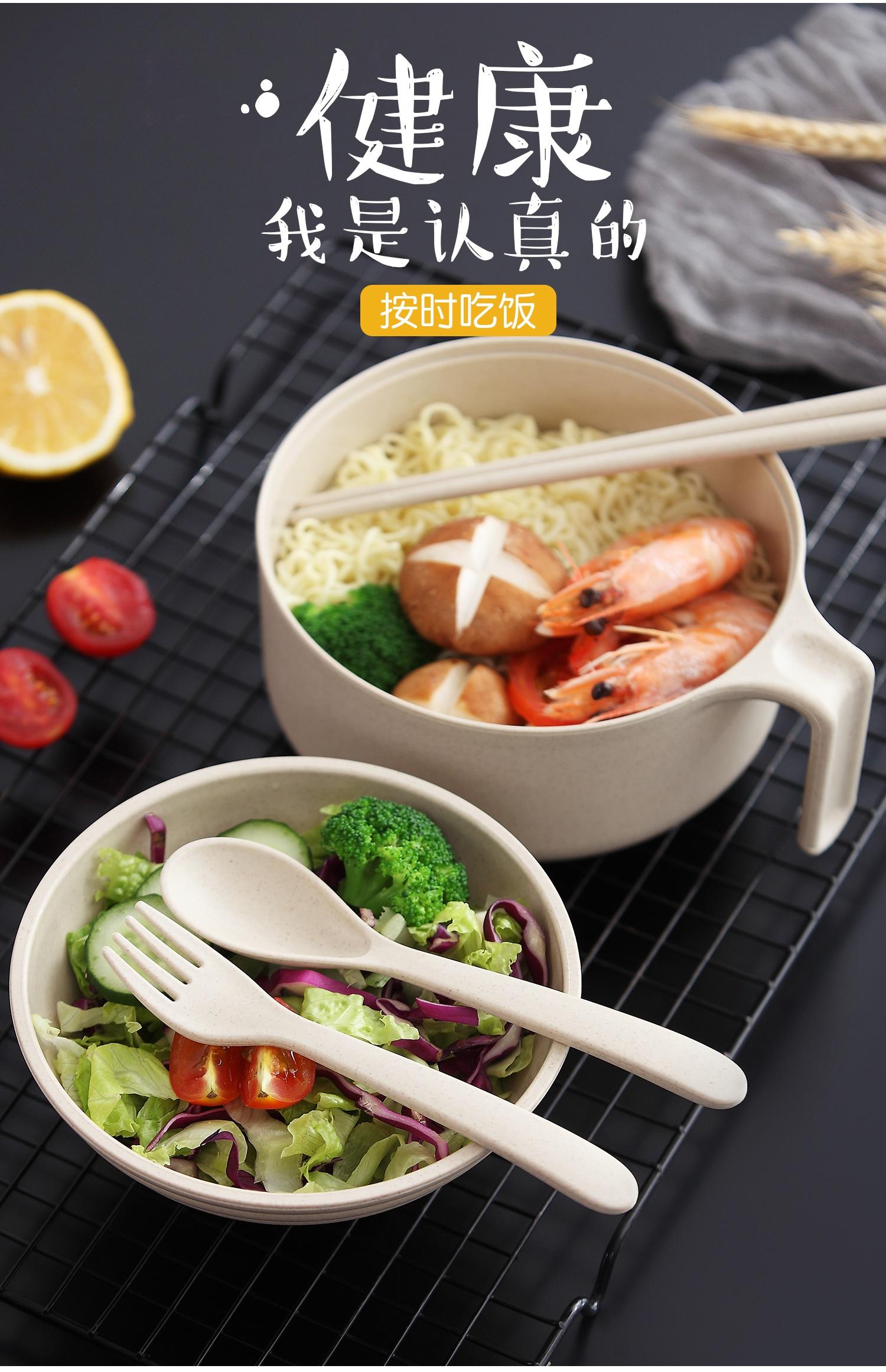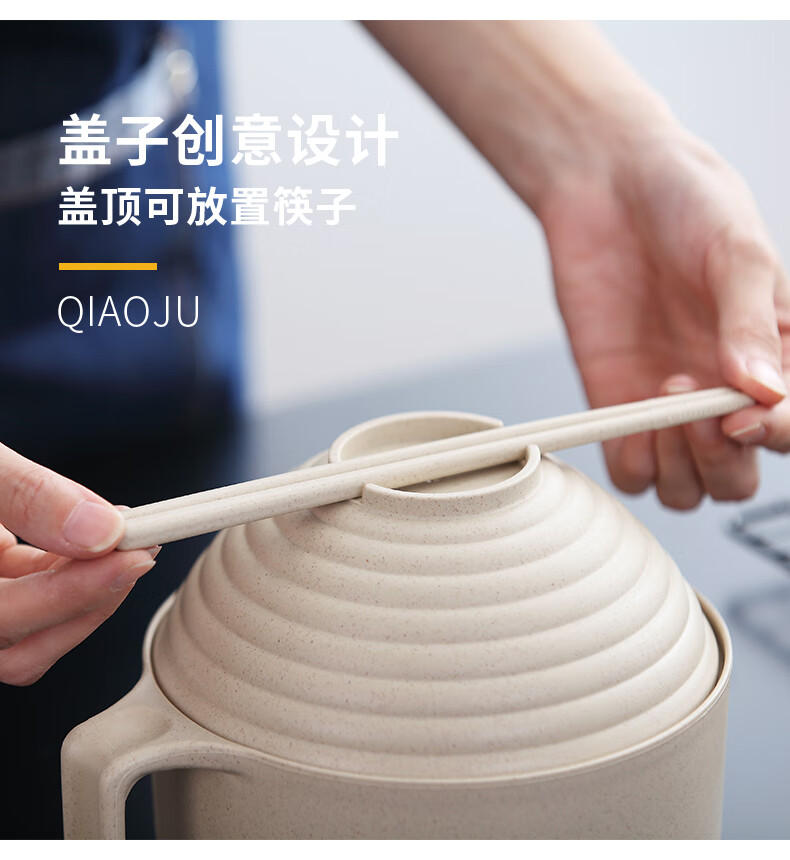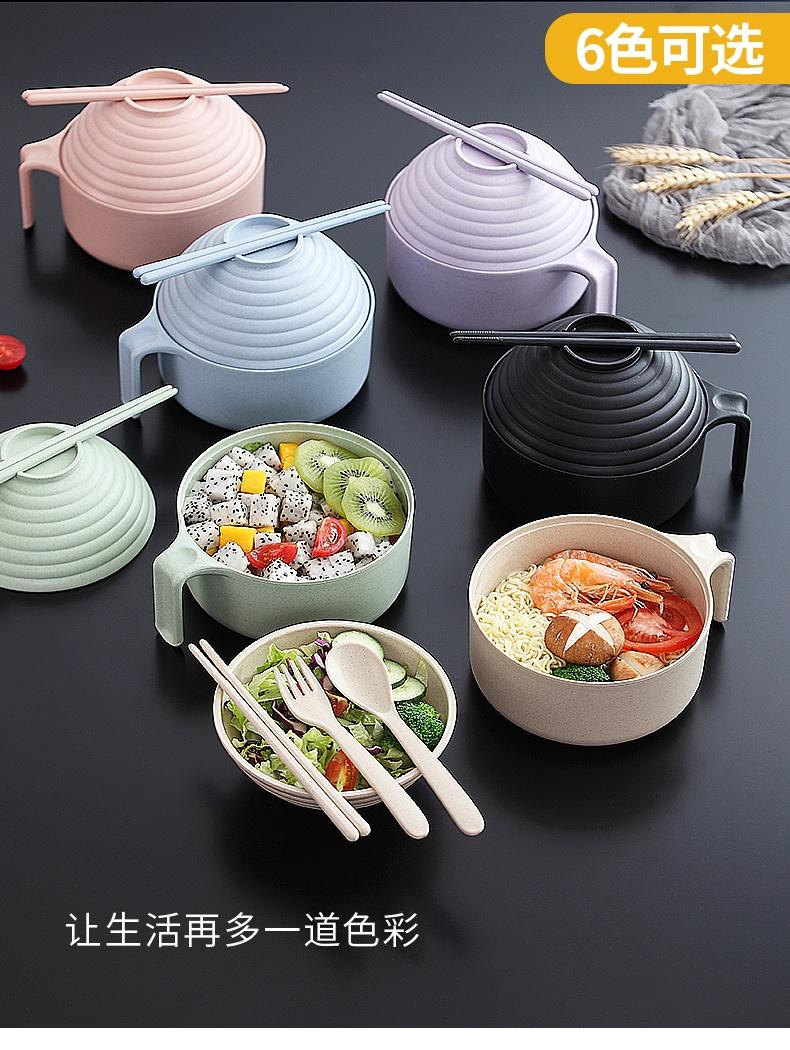巧居巧具小麦秸秆餐具泡面碗带盖饭碗个人专用碗具套装汤碗大号碗筷家用 【薄荷绿】5件套