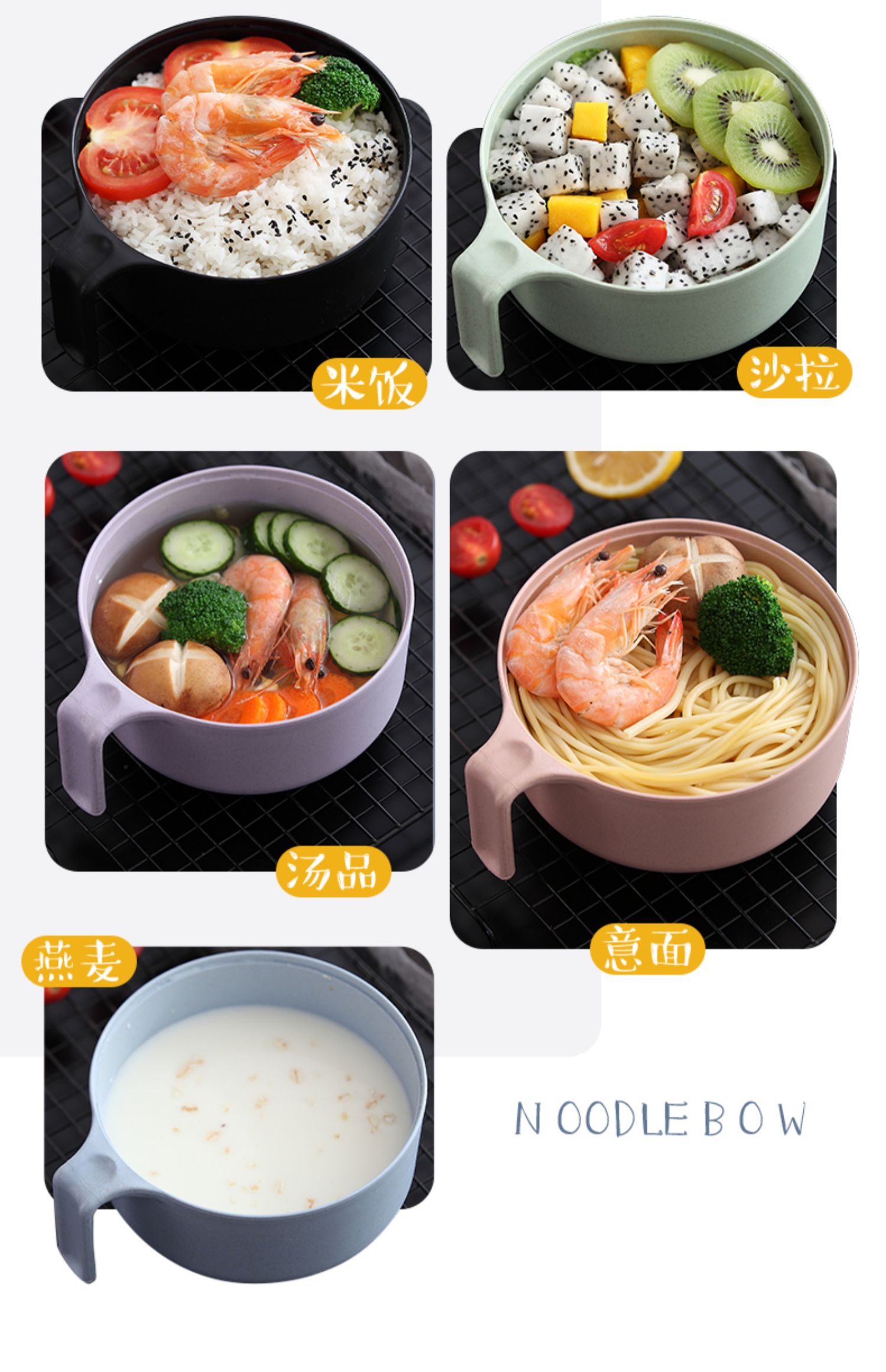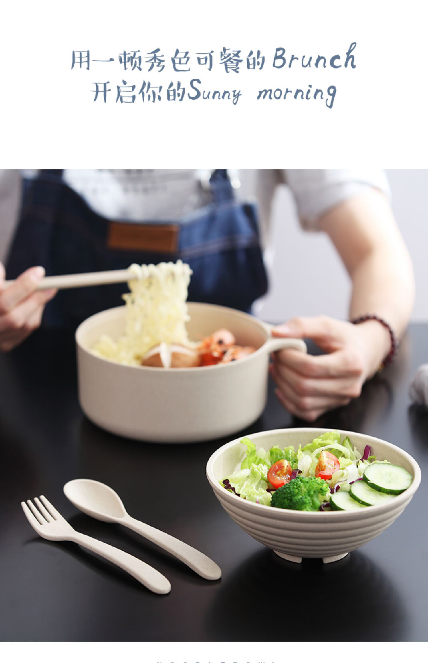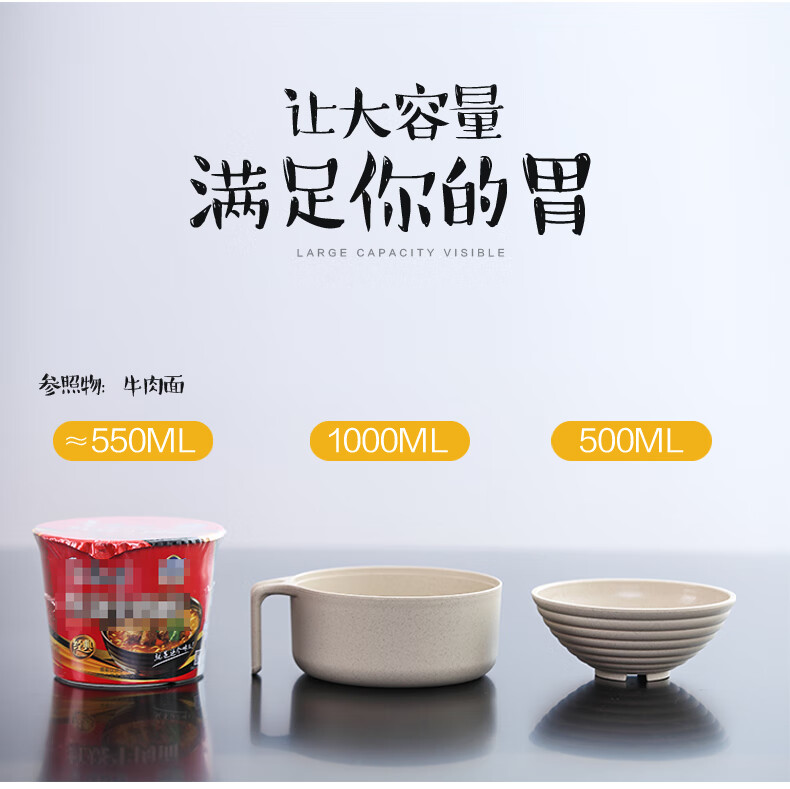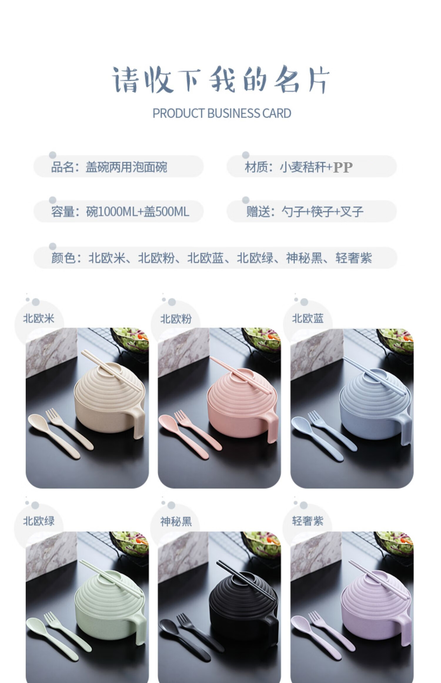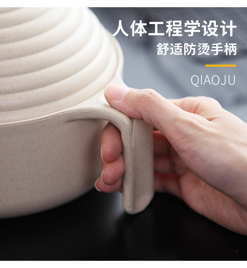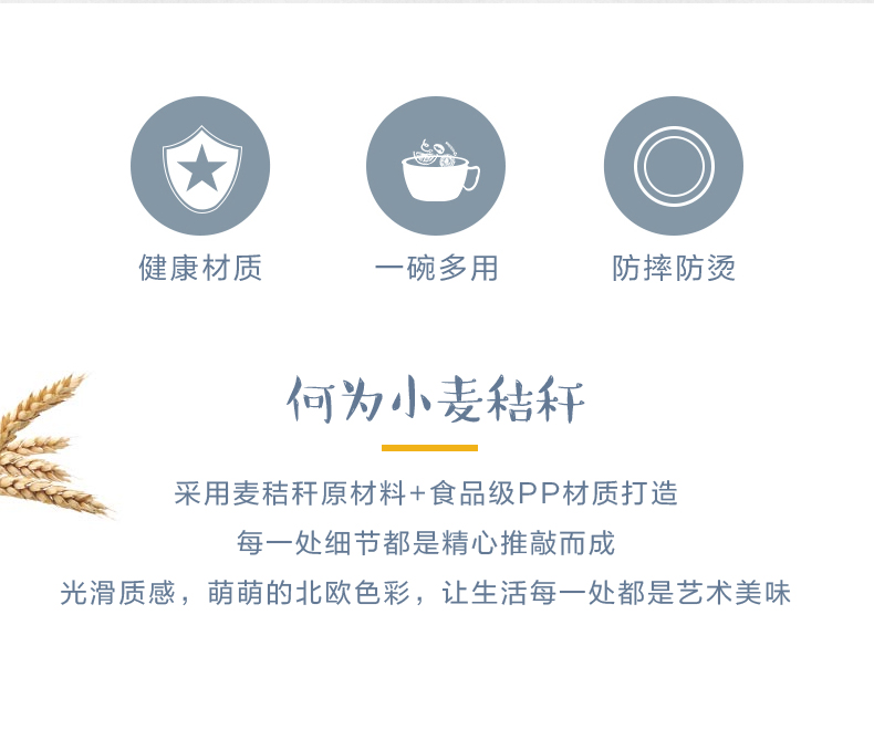 巧居巧具小麦秸秆餐具泡面碗带盖饭碗个人专用碗具套装汤碗大号碗筷家用 【薄荷绿】5件套