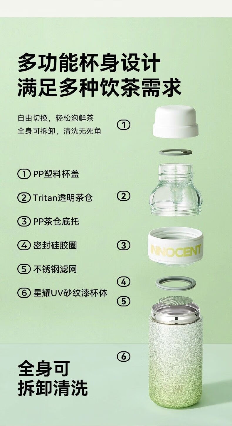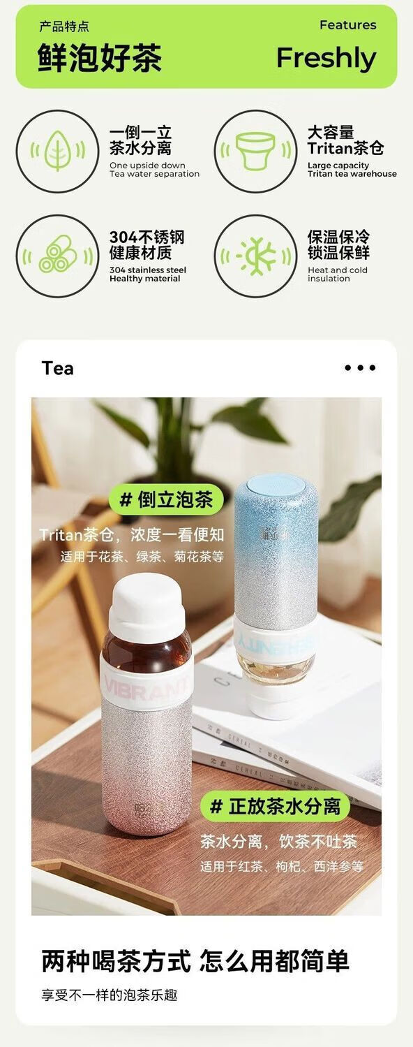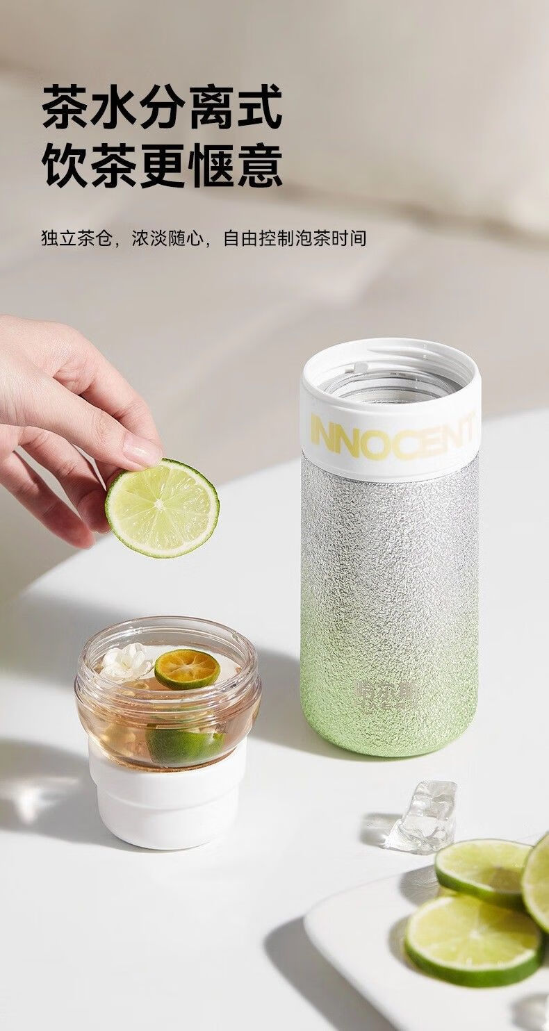 哈尔斯(HAERS)保温杯高颜值户外便携车载304不锈钢泡茶茶水分离过滤喝茶水杯子 静谧蓝300ml【独立茶仓】