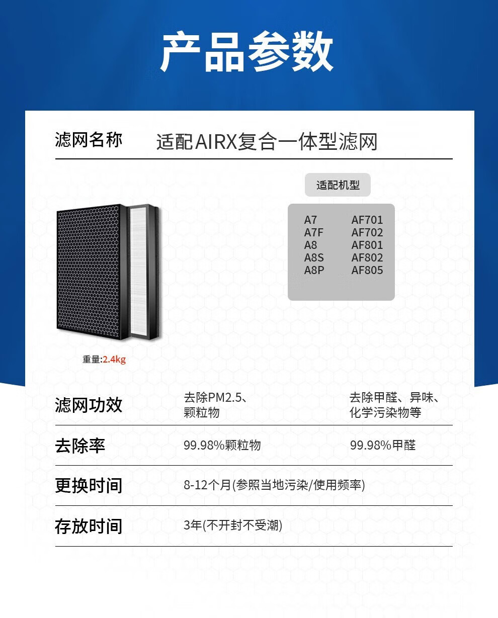 凯琪丽(KAIQILI)适配airx空气净化器滤网A7/A7F/A8 A8S A8P加强滤芯 A7/A7F/A8 A8S A8P加强滤芯(2片)