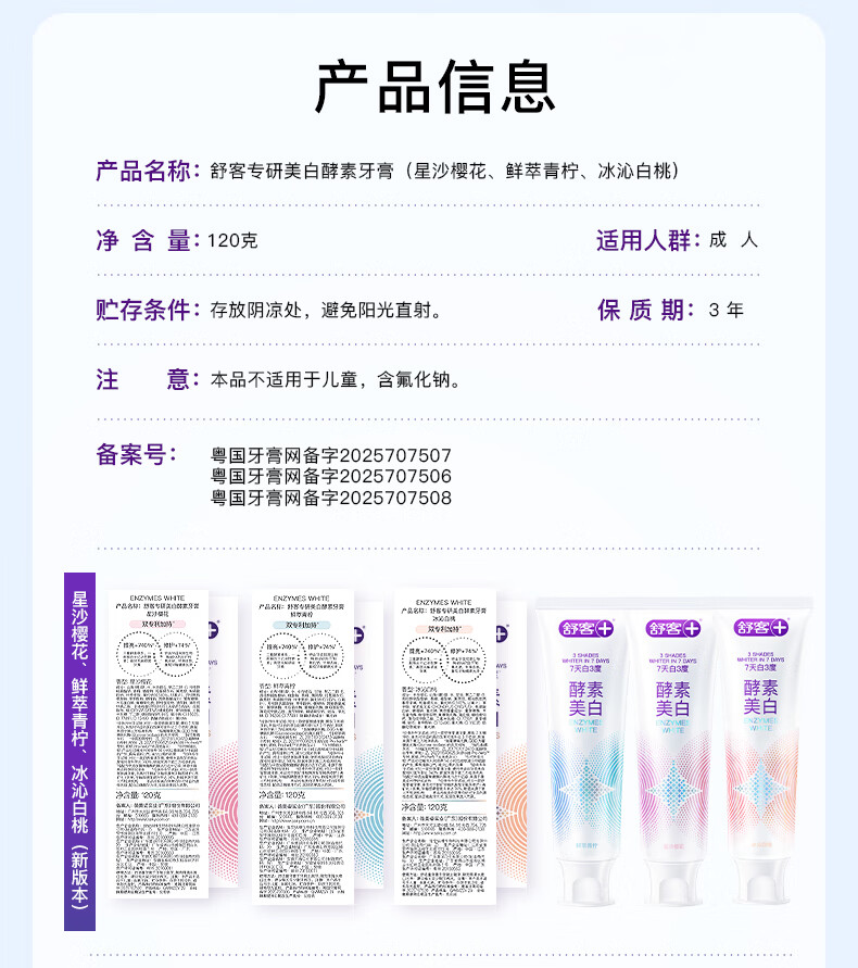 舒客肖战同款】酵素美白牙膏去黄清新口气含氟防蛀男女生专用官方正品 120g*3支+ 140g*1支 共500g