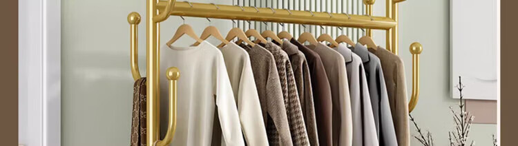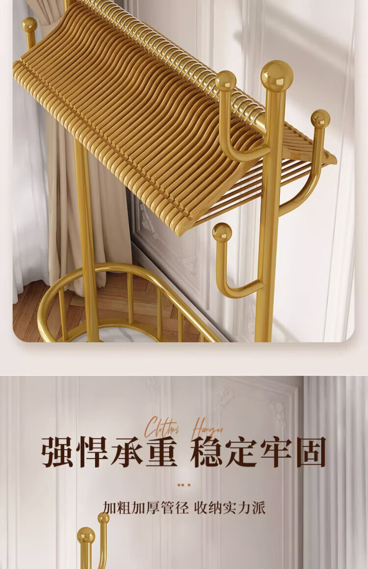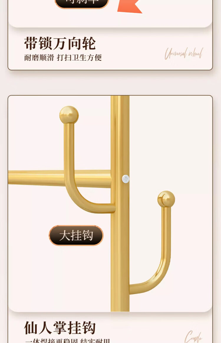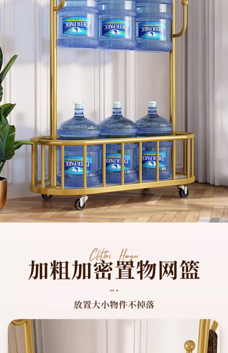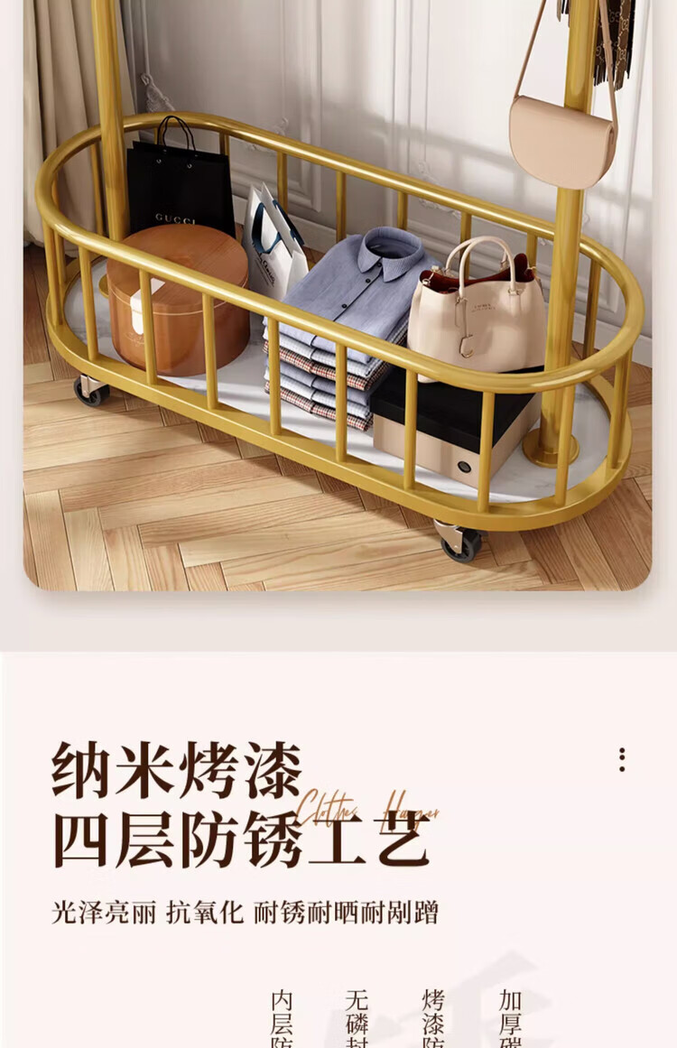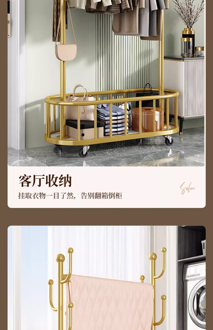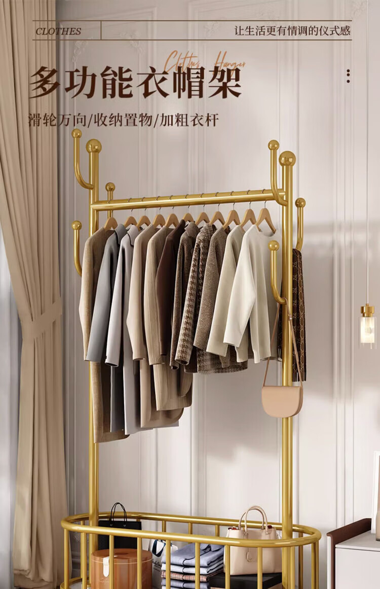 朱小姐的店卧室挂衣架可移动落地衣架家用衣帽架多功能衣服架子收纳架 【白色升级款-双层带置物篮】100*180cm