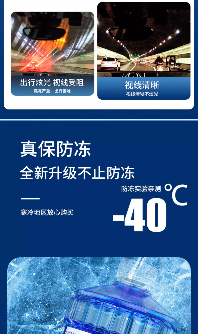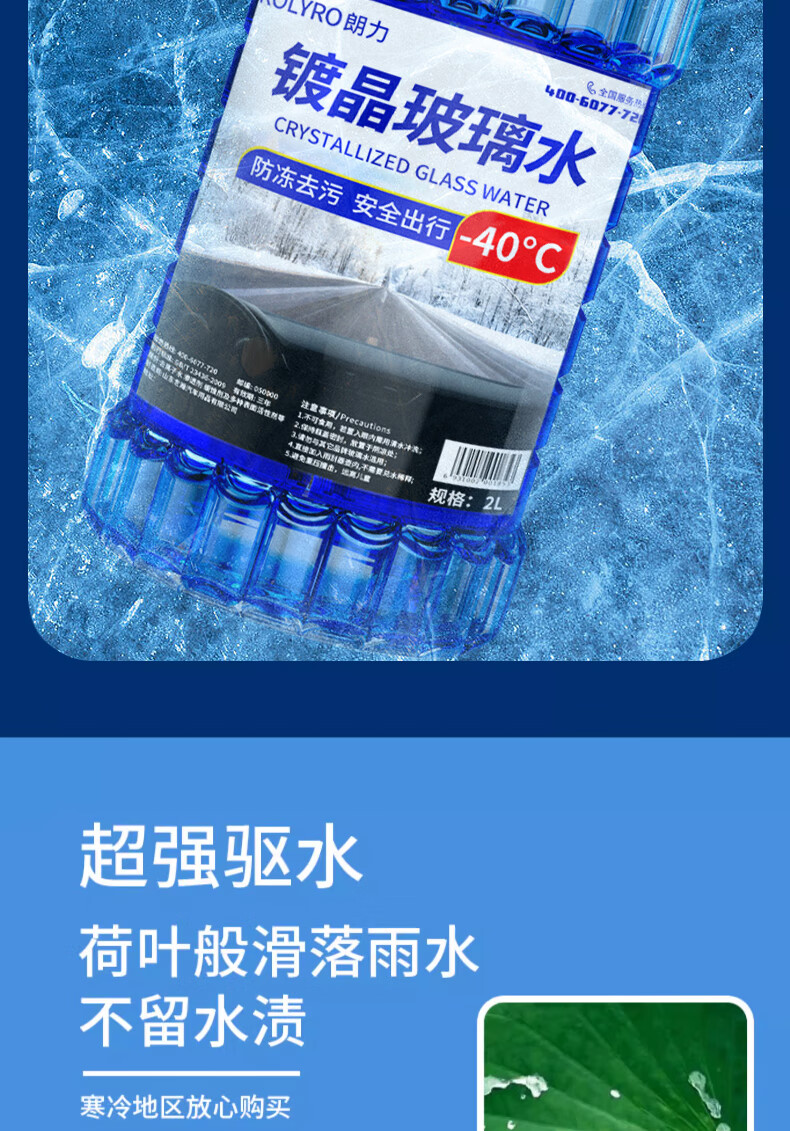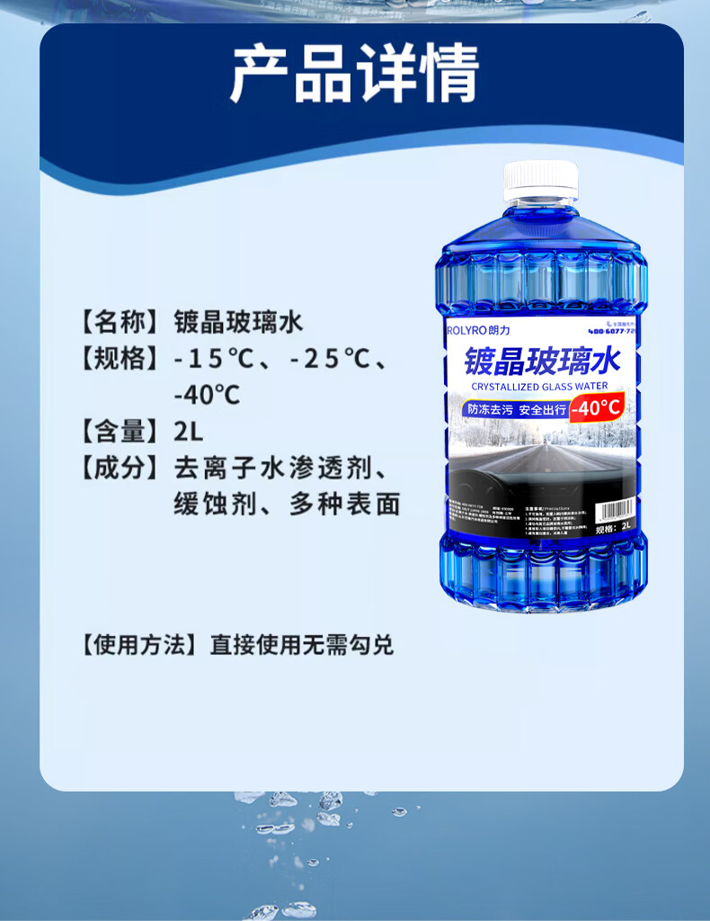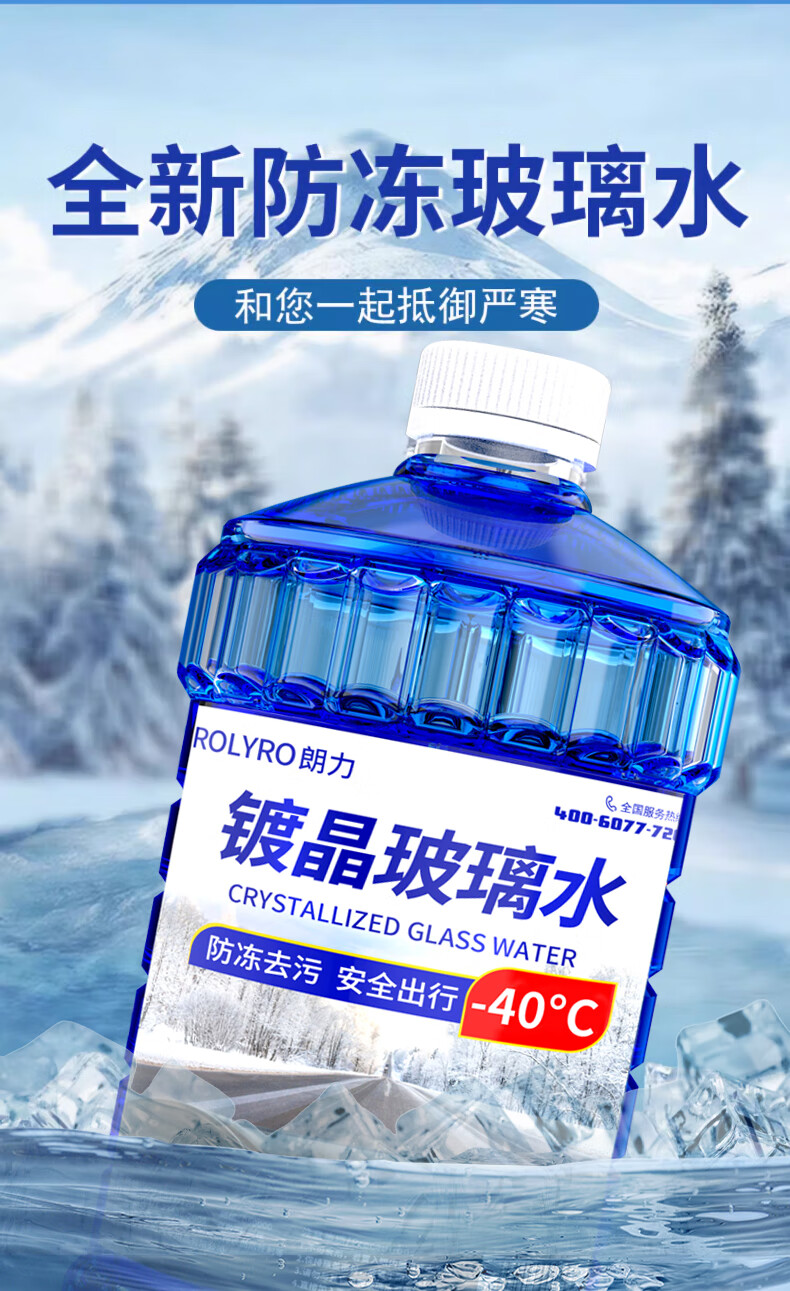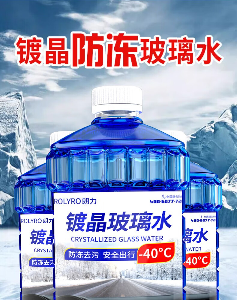 朗力(ROLYRO)镀晶玻璃水汽车防冻零下40 25冬季东北方专用强去油膜车用雨刮水 真防冻镀晶不结冰 -40℃2L*2瓶