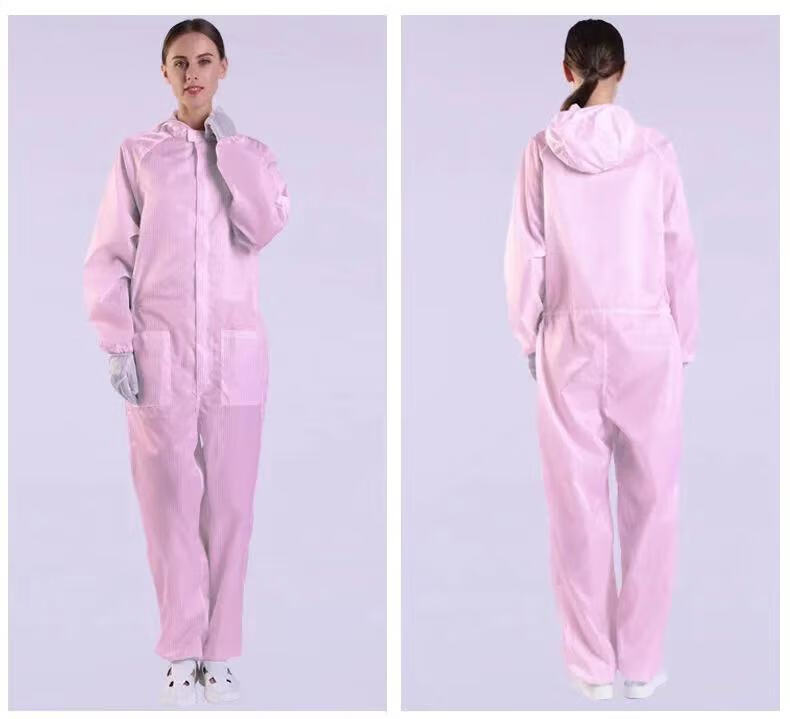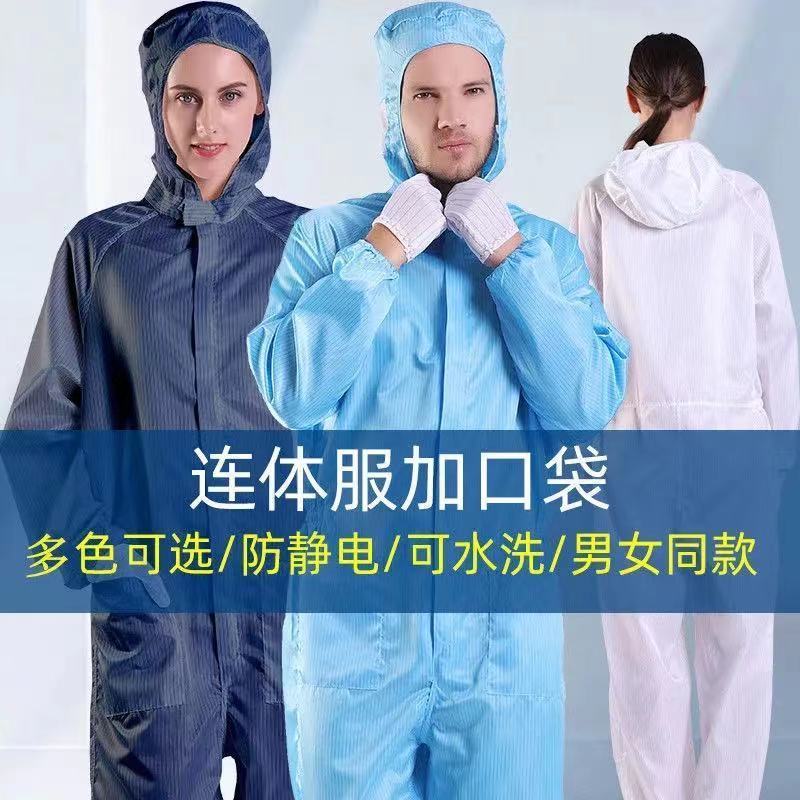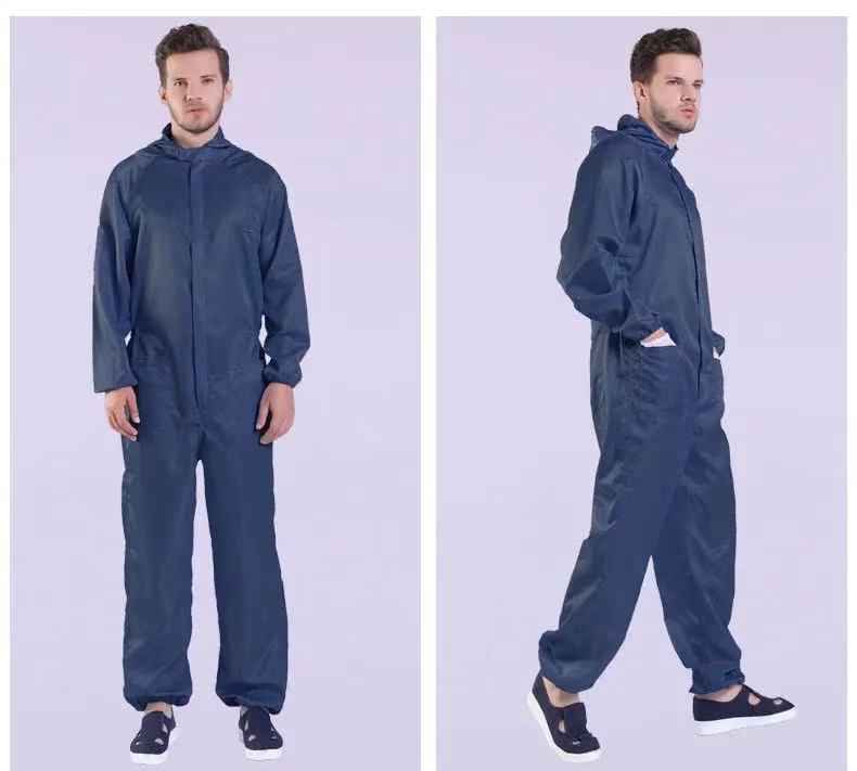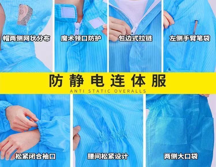 雷事兴无尘服防静电连体连帽喷漆防尘条纹白蓝色男女工作车间除静电衣服 藏青色连体服带口袋【不含鞋子】 5XL