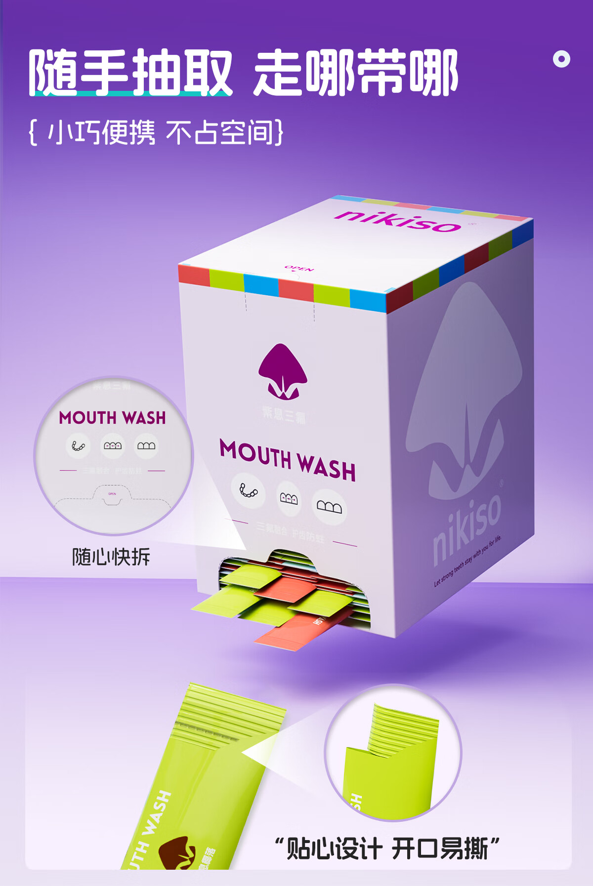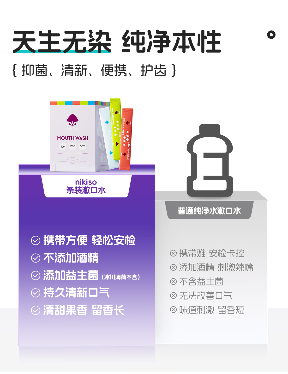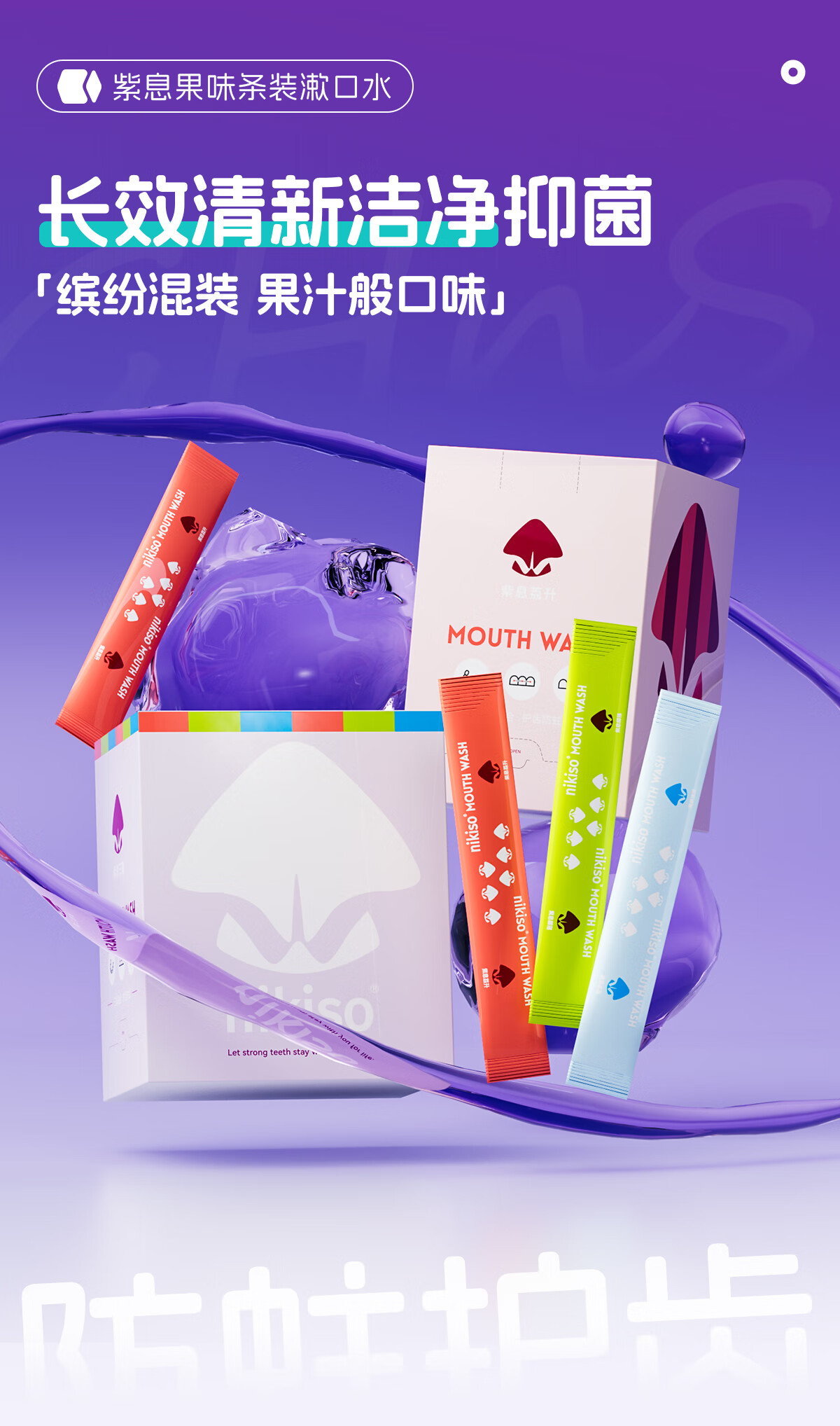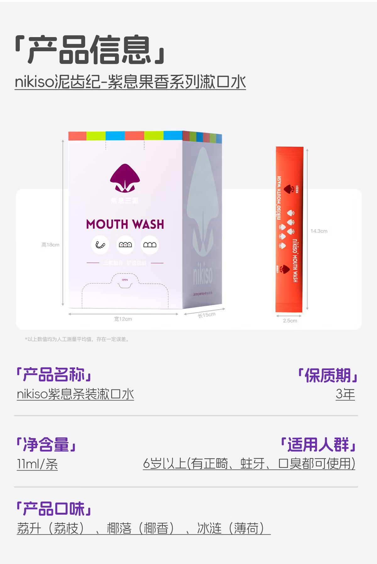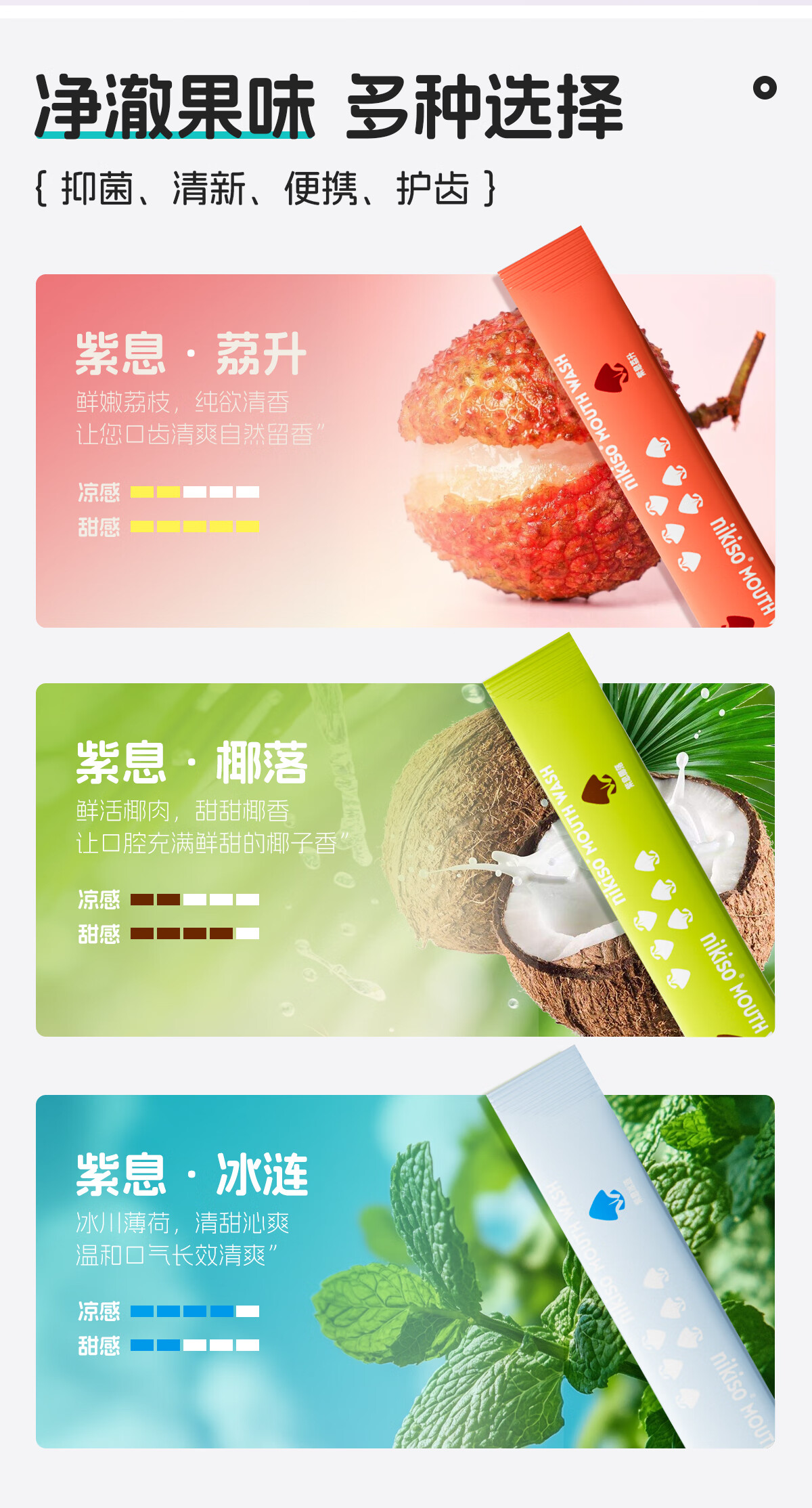 nikiso果味漱口水便携旅行长效清新口气含氟护齿防蛀抑菌口腔深层清洁 11ml*20条 【紫息冰涟】冰川薄荷