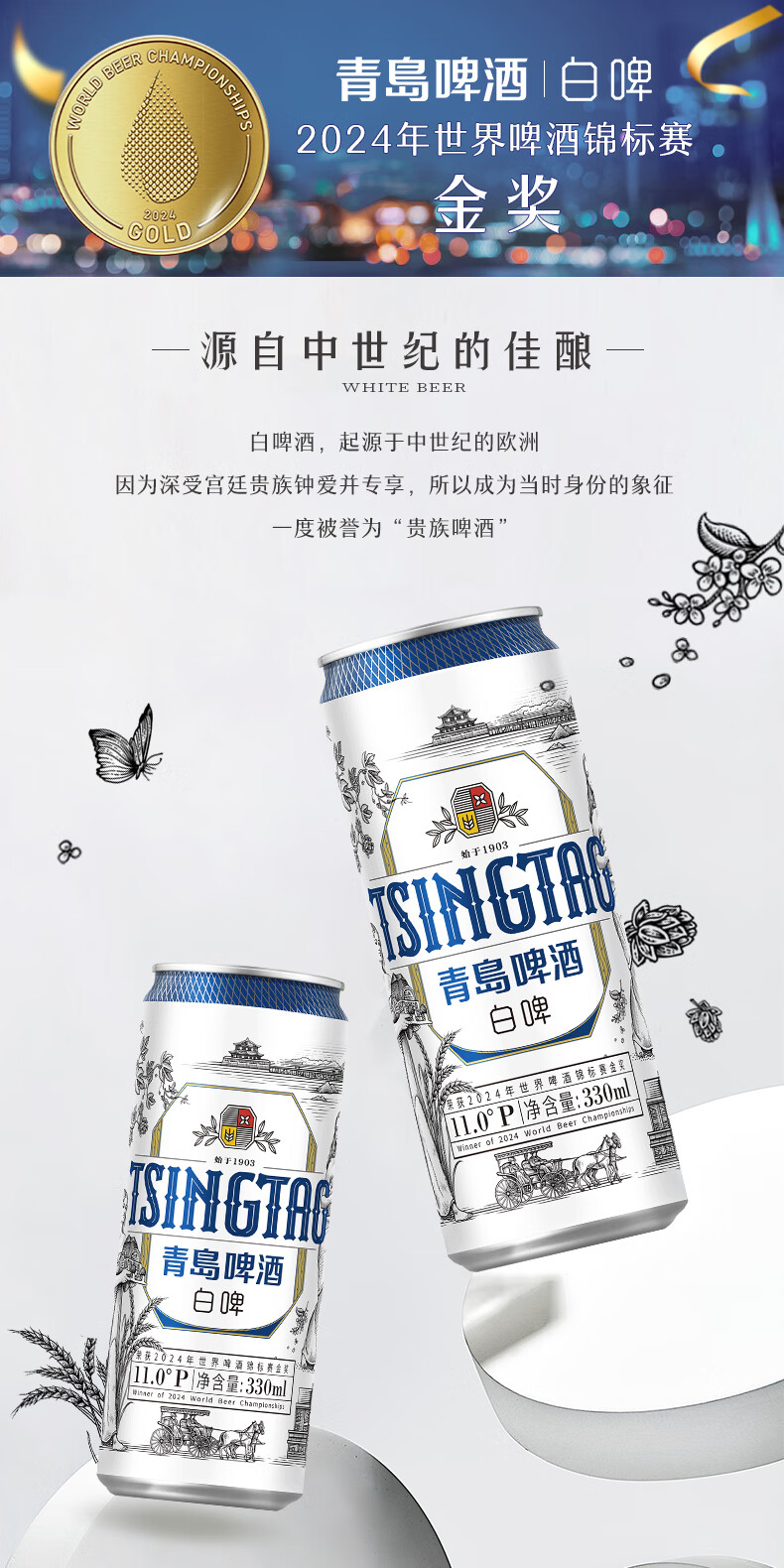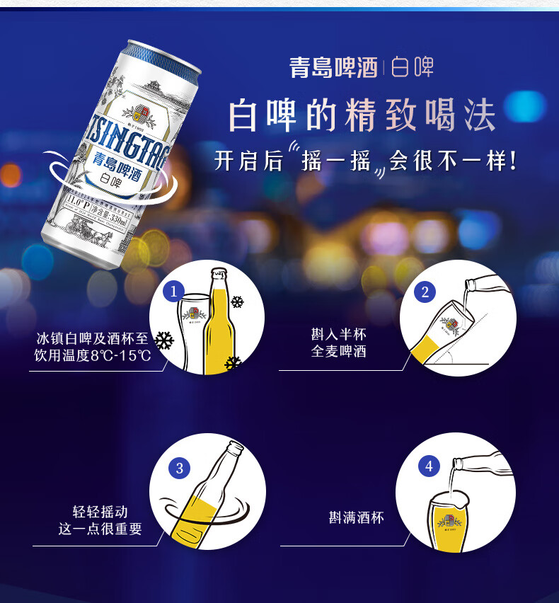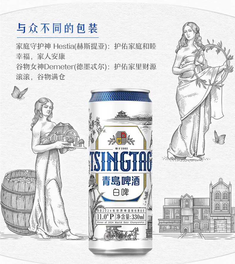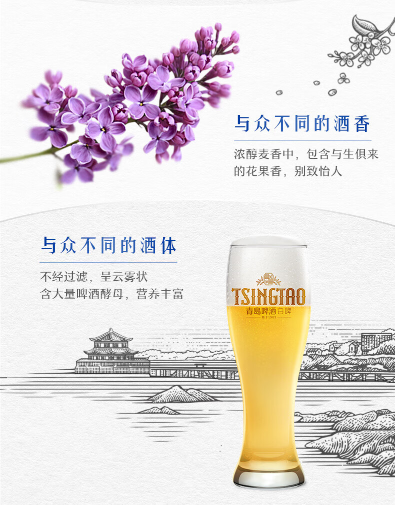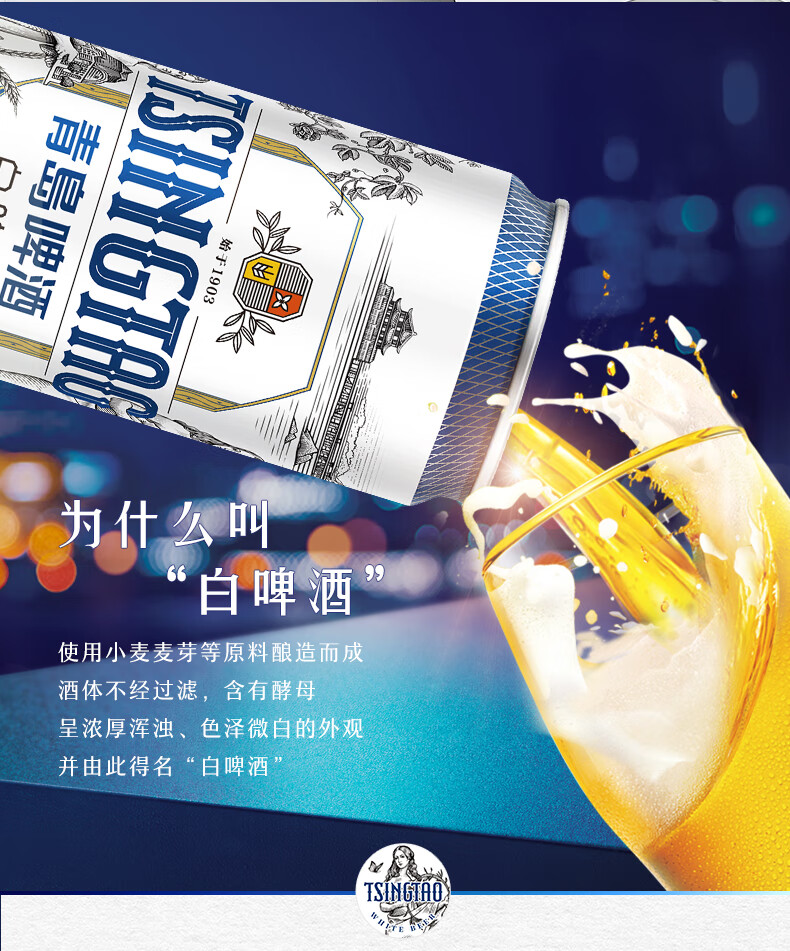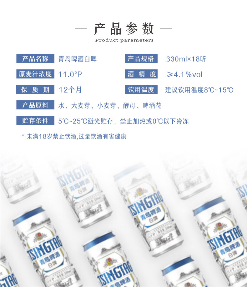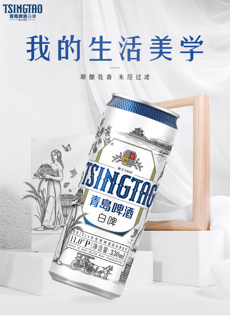青岛啤酒全麦白啤 原麦汁浓度11°P 330mL 18罐 青岛啤酒