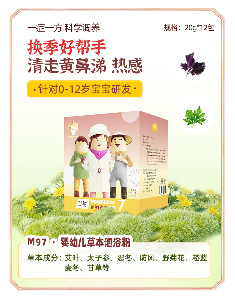 艾裕换季防流感舒缓咳嗽内热宝宝天然草本沐浴包M97婴儿艾草泡澡药包 M97草本泡浴(风热/流涕)20g*12袋