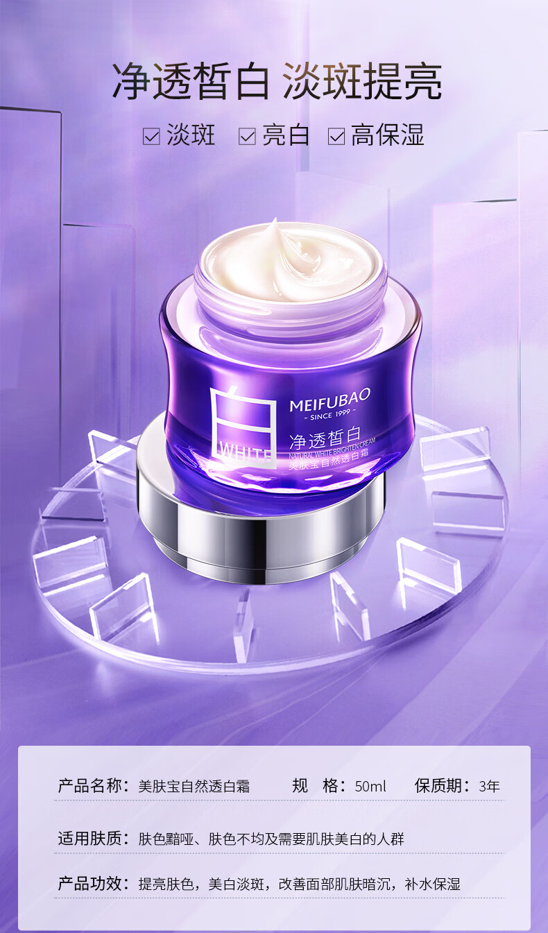 美肤宝补水保湿面霜精华霜锁水滋润护肤品清爽不油腻男女护肤品生日礼物 自然透白霜50ml