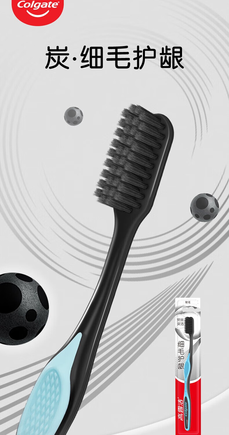 高露洁(Colgate)纤柔备长炭软毛牙刷 3支装超细软毛 深层洁齿官方旗舰 【推荐】护龈炭牙刷 12支