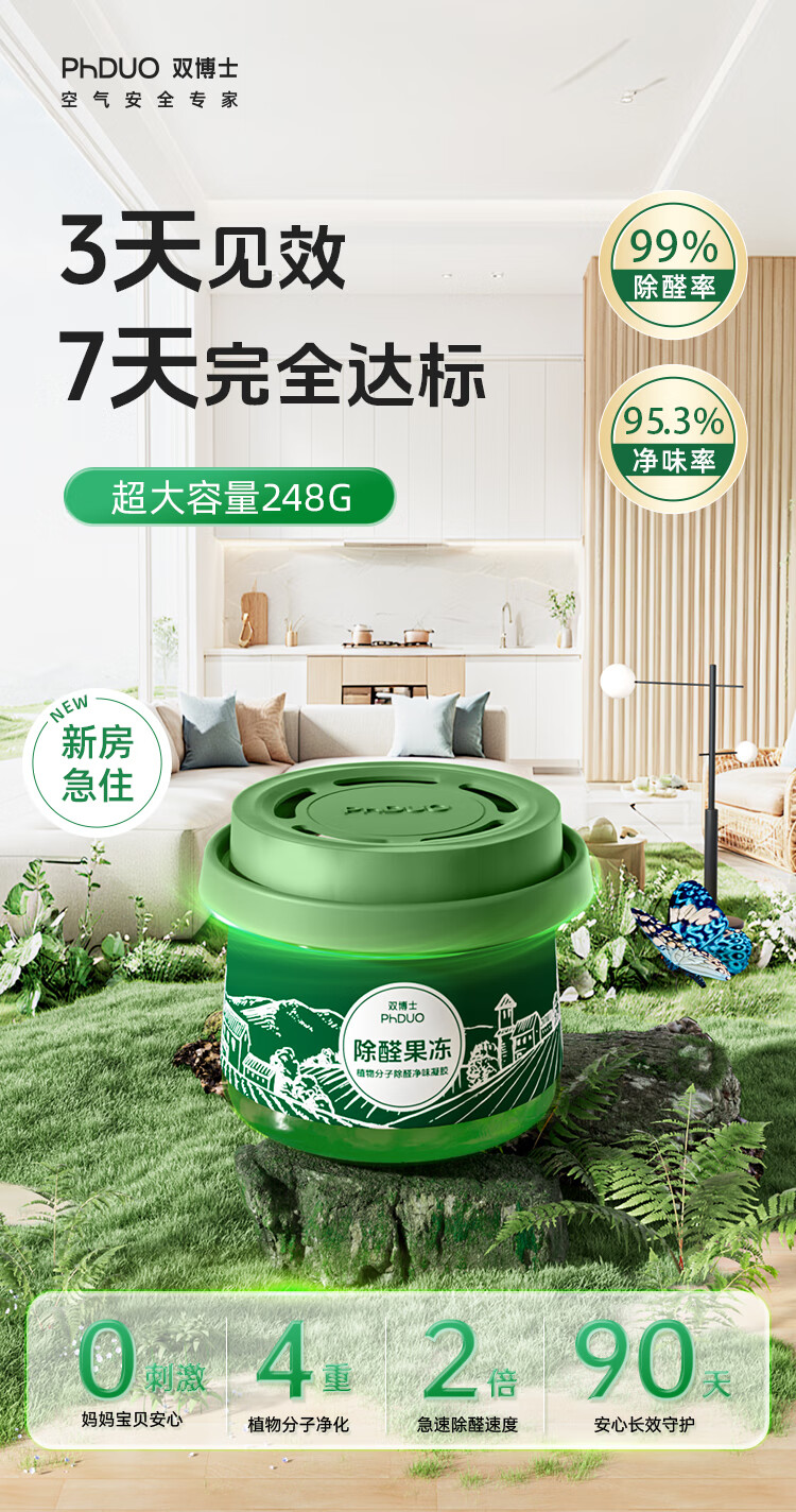 双博士小绿罐除甲醛果冻全效套装新房装修快速除异味净化空气甲醛清除剂 除醛果冻1罐