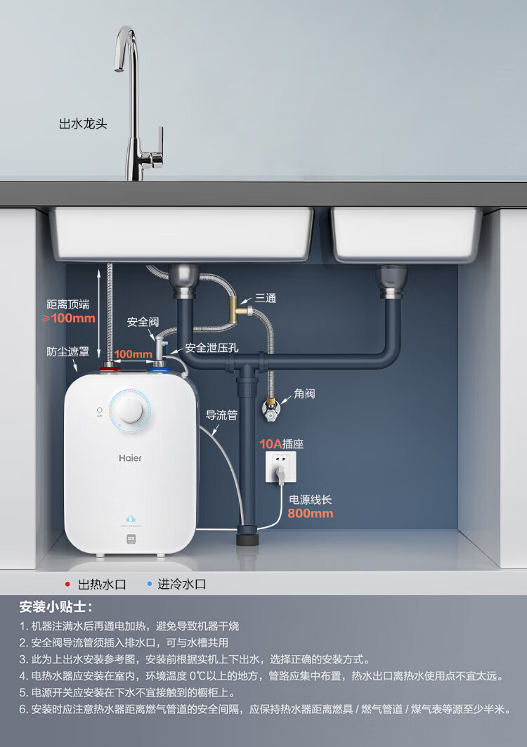 海尔(Haier)国家补贴6.6升小厨宝电热水器EC6.6FA 一级能效京东自营 2200W速热 家用厨房台下小型储水式热水宝