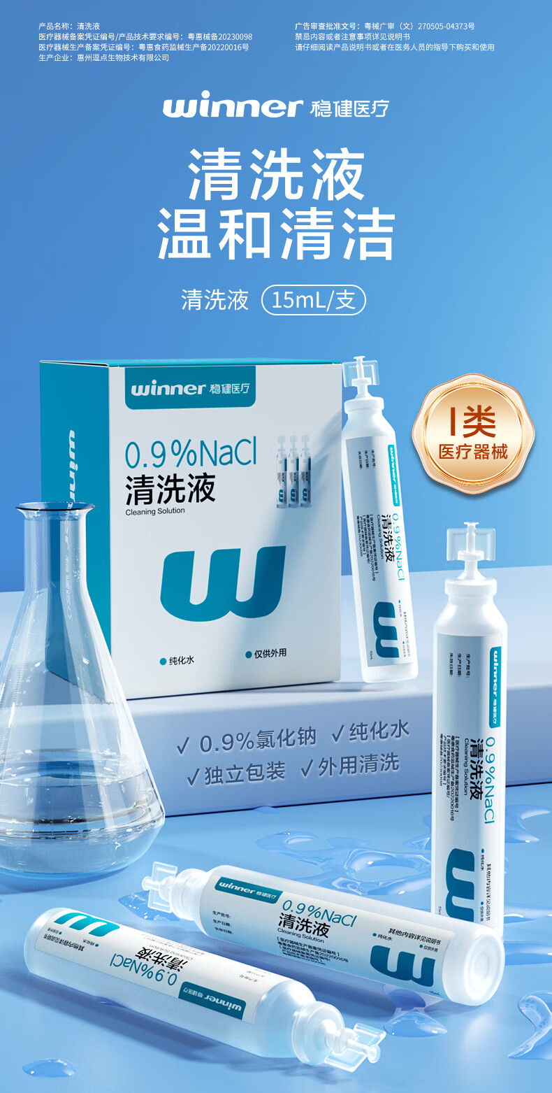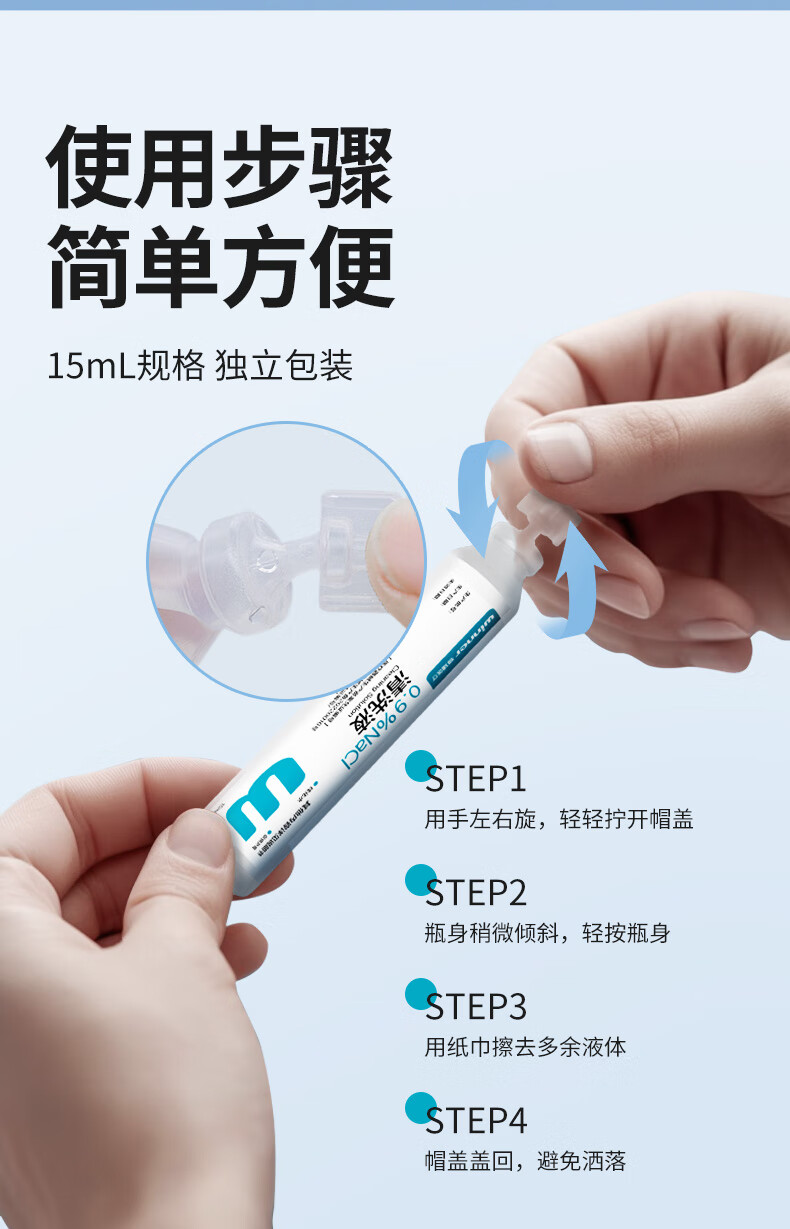 稳健医用生理盐水清洗液便携小支15ml*20支0.9%氯化钠清洁冲洗液