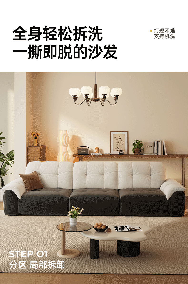 林氏家居帆船布艺沙发客厅2025新款小户型防猫抓布可拆洗云朵沙发G290 【靠背可调节|2.78米|贝母白】12防猫抓布|可拆洗