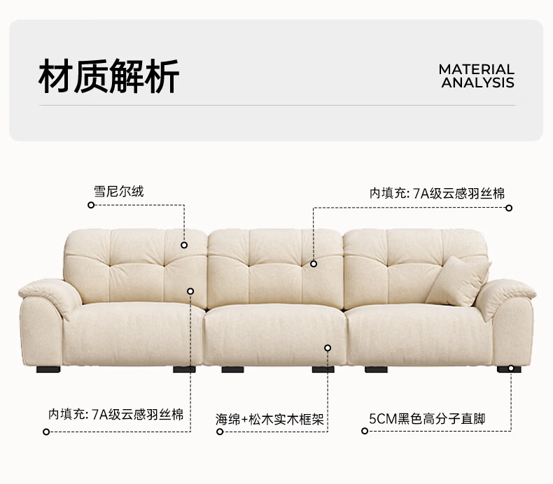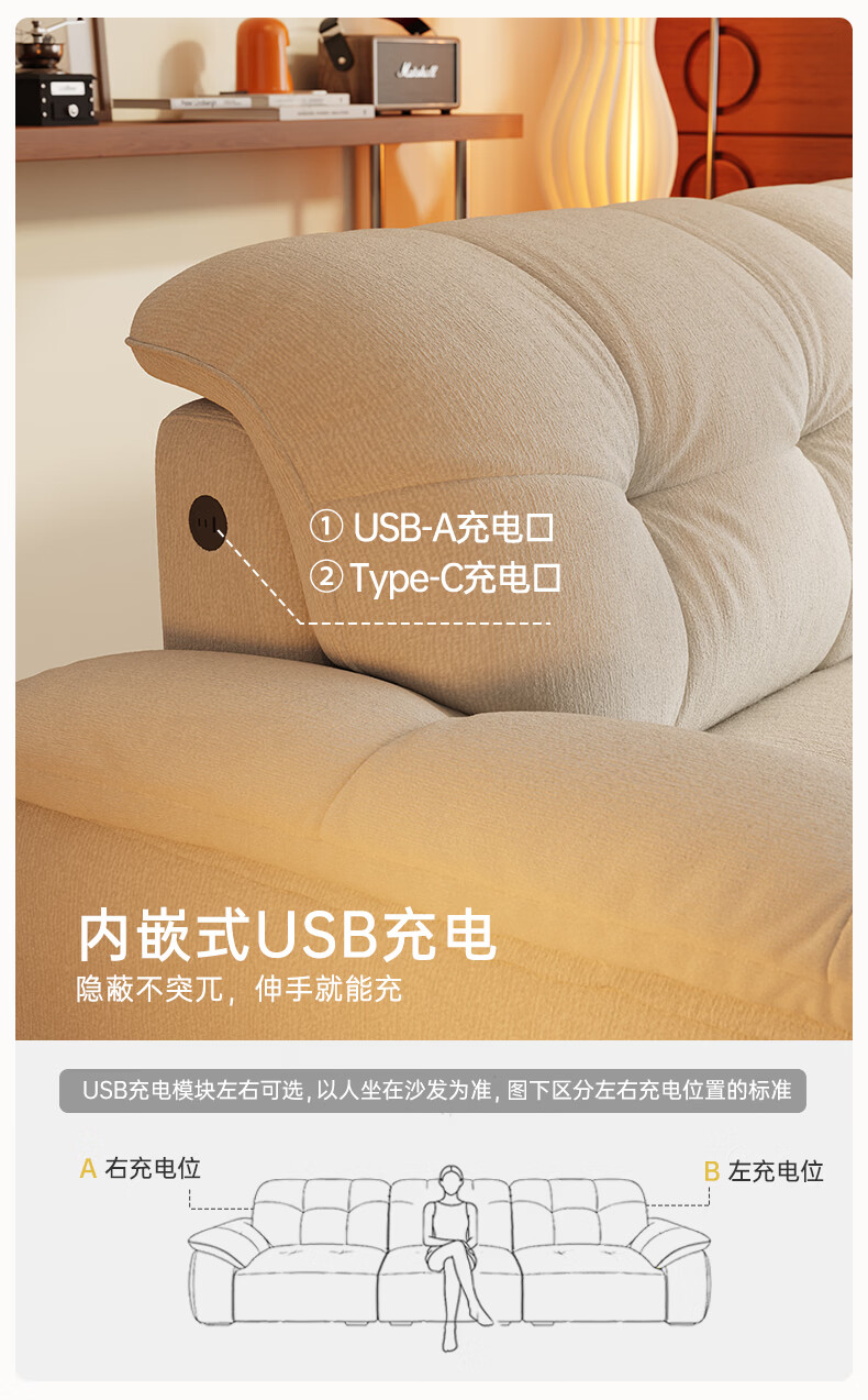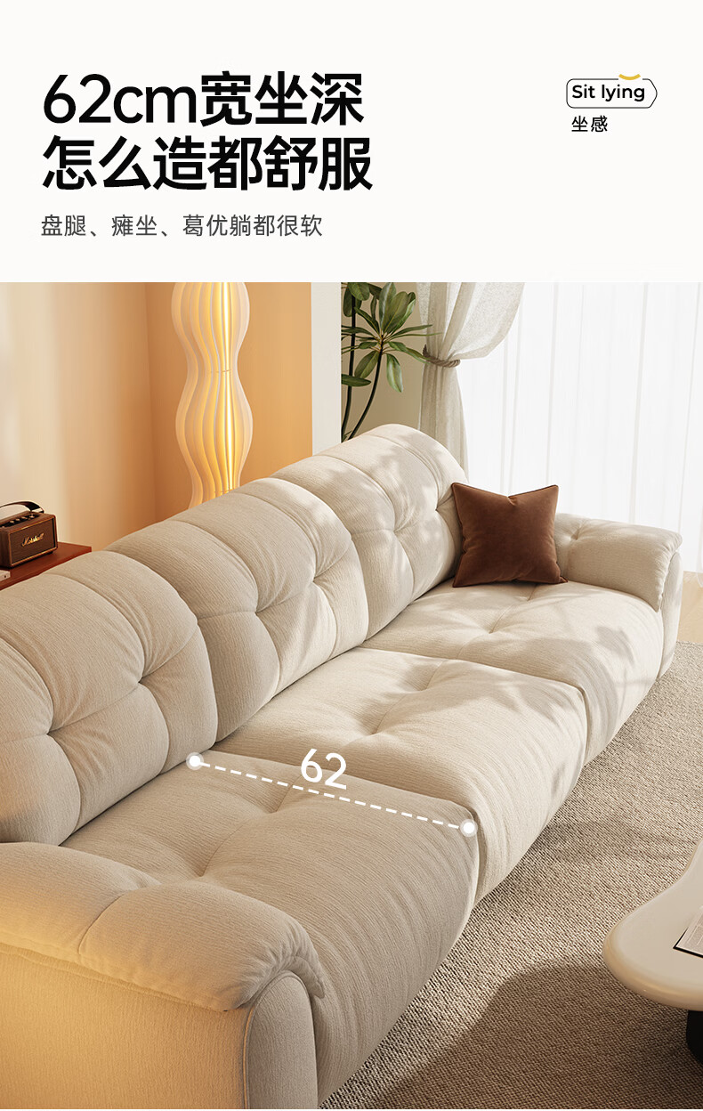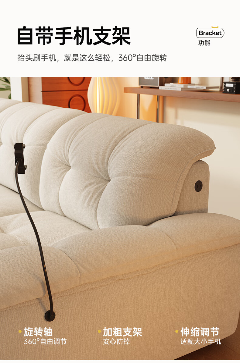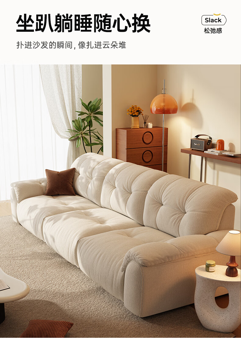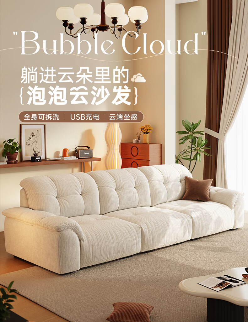 浪度家居泡泡云沙发布艺客厅小户型可拆洗奶油风云朵雪尼尔直排功能 【尊享版】母婴级A类·冰花雪尼尔 【功能款】 340cm 【手机支架+USB充电口】