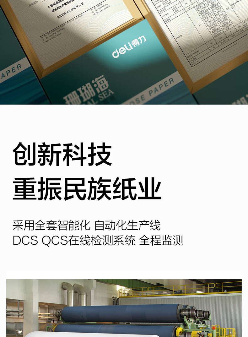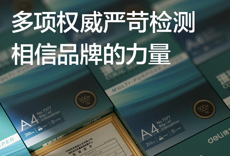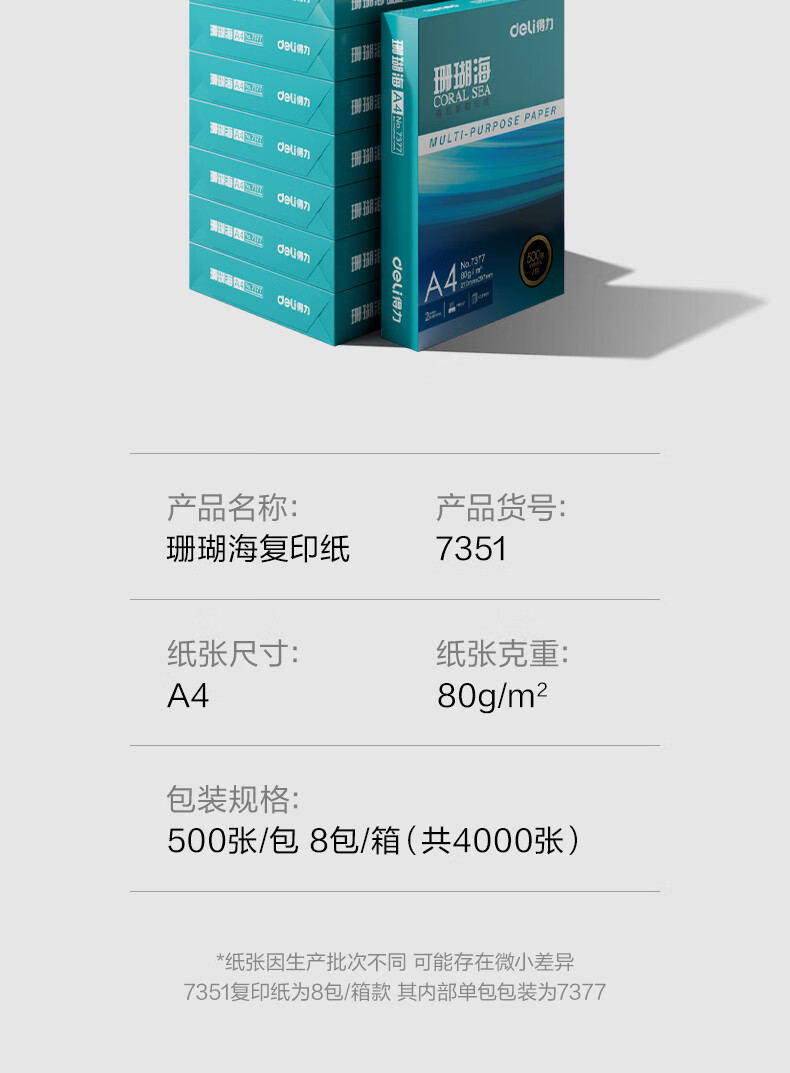 得力(deli)珊瑚海A4打印纸 80g500张*8包一箱 双面使用 加厚复印纸 整箱4000张7351【销冠系列】