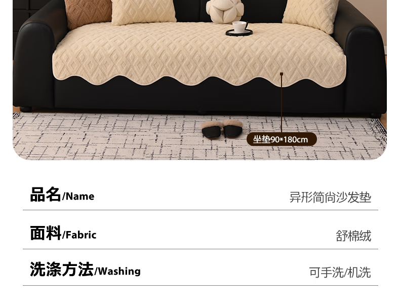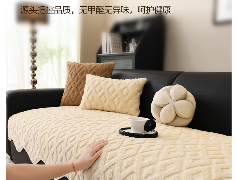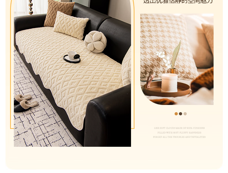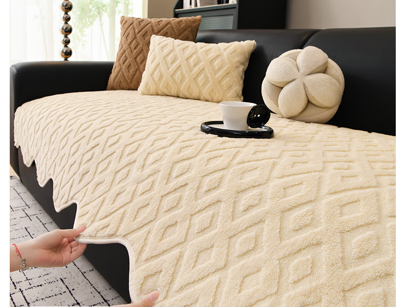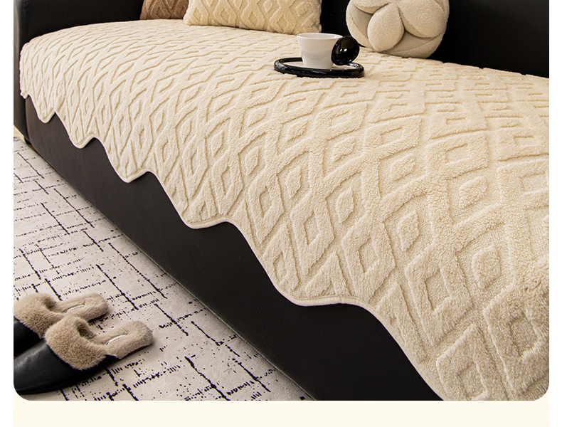 金拾美月奶油风加厚保暖沙发垫冬2026新款异形套坐垫高级固定防滑盖布巾 异形简尚-白色 70cm*70cm