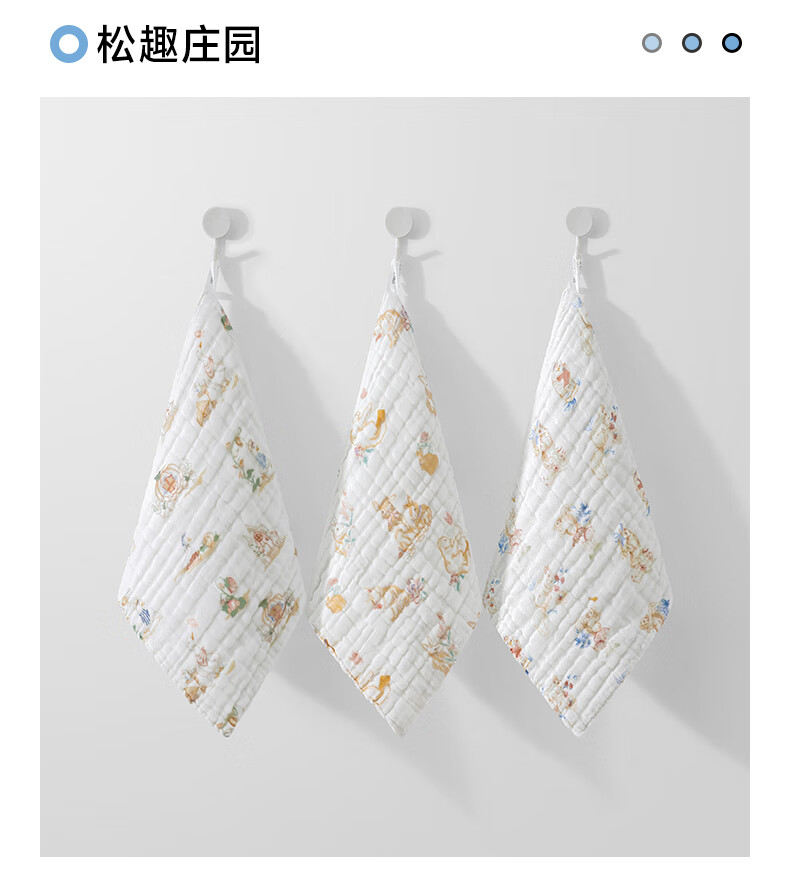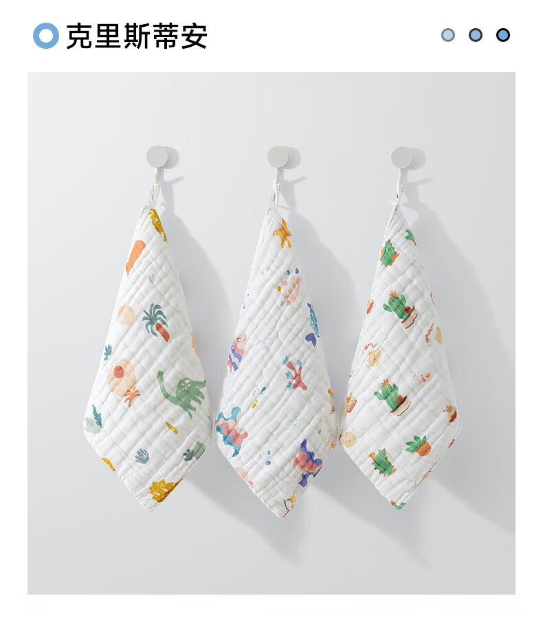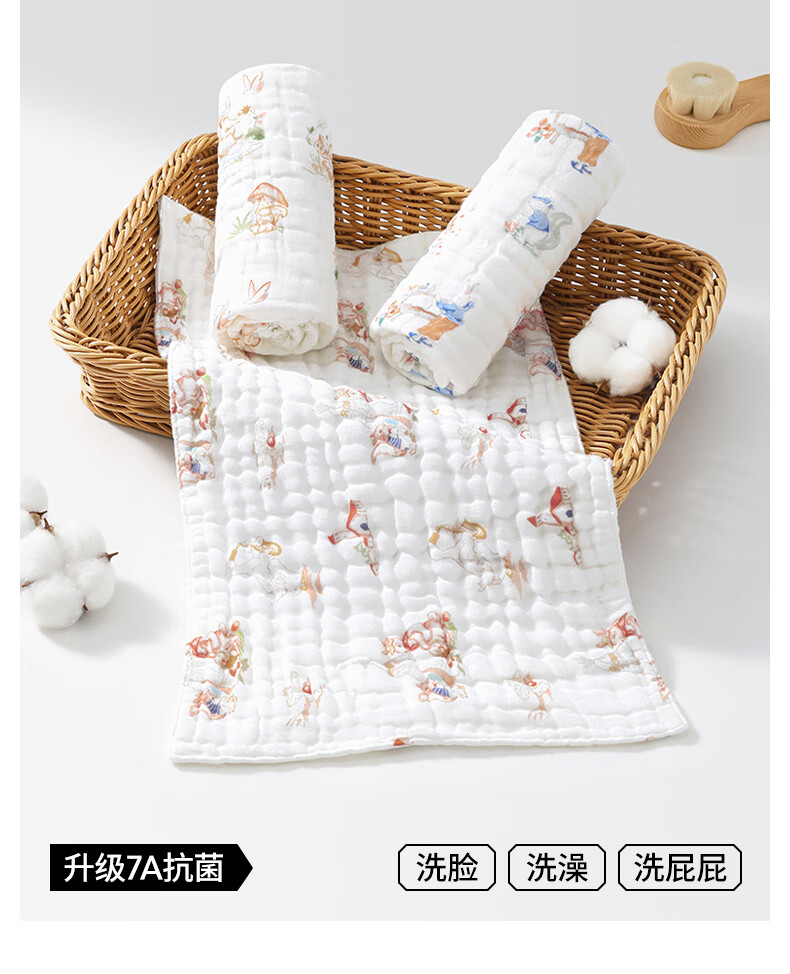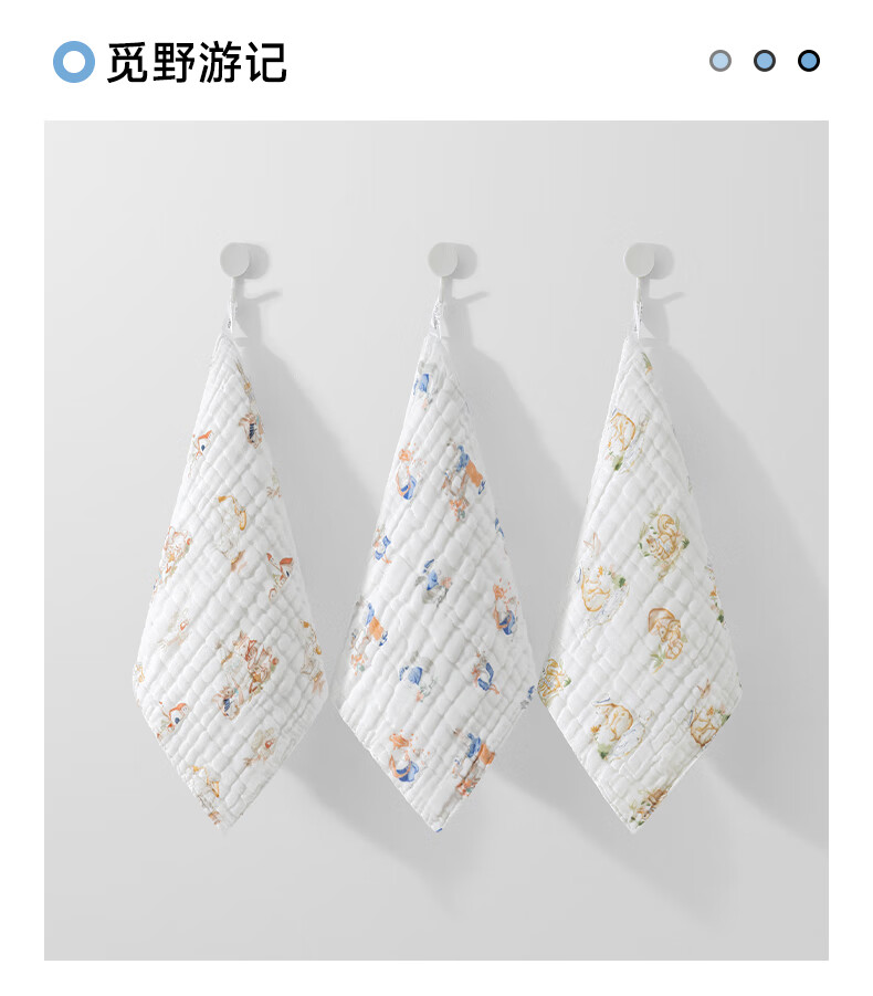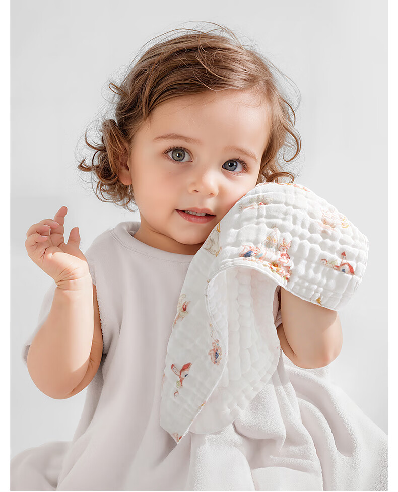 贝肽斯口水巾婴儿纱布小方巾新生儿宝宝洗脸巾儿童毛巾4层3条装 30*30cm