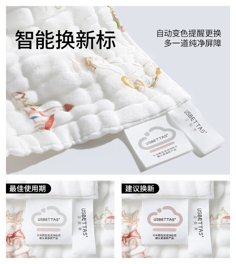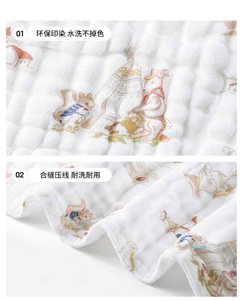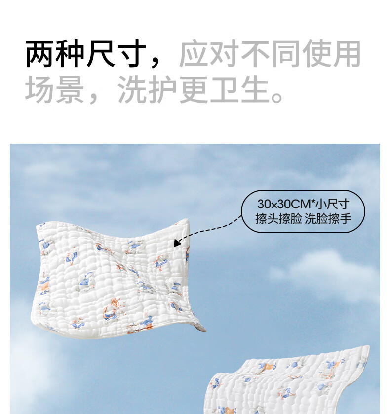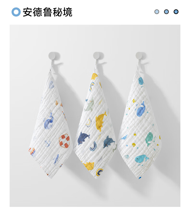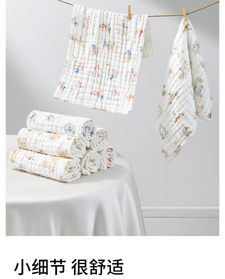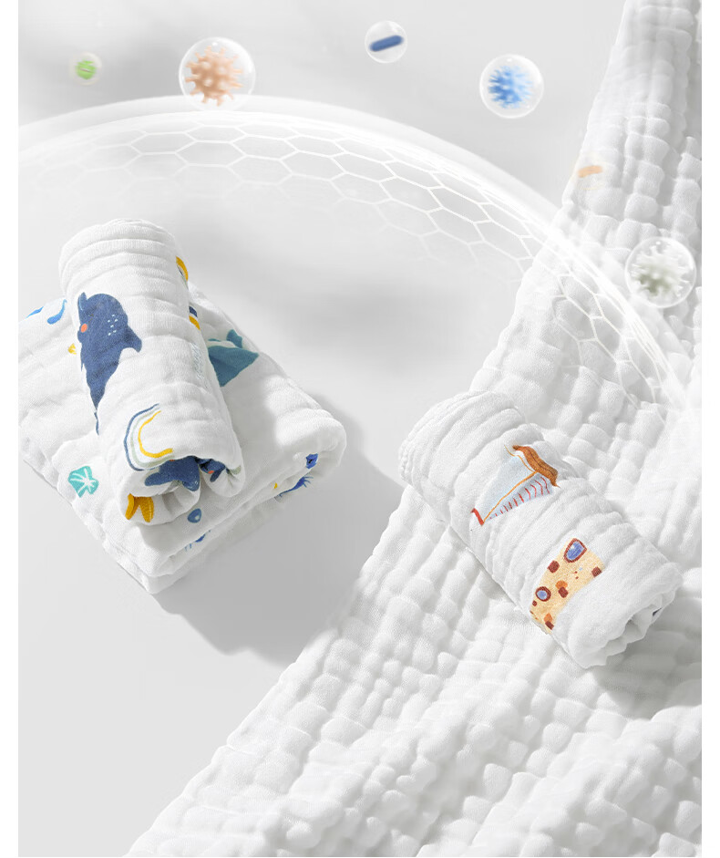 贝肽斯口水巾婴儿纱布小方巾新生儿宝宝洗脸巾儿童毛巾4层3条装 30*30cm
