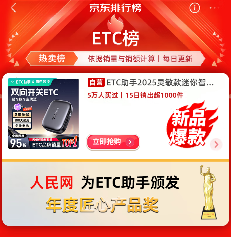 ETC助手2026新款智能无卡穿膜ETC高速通行九五折微信扣款etc设备办理