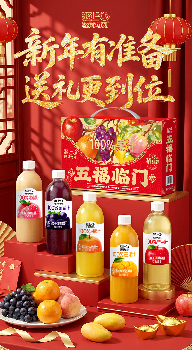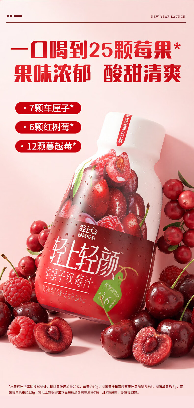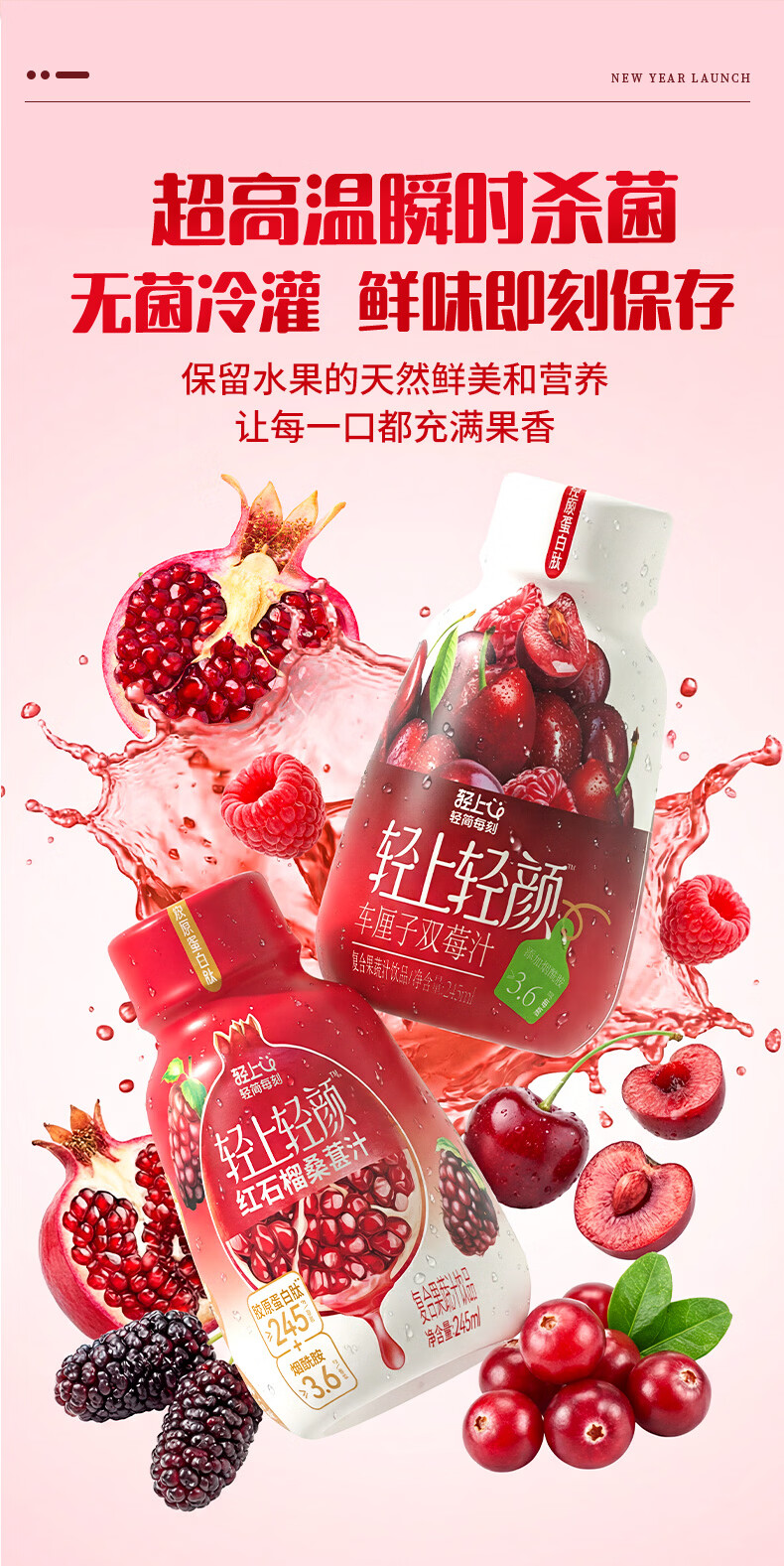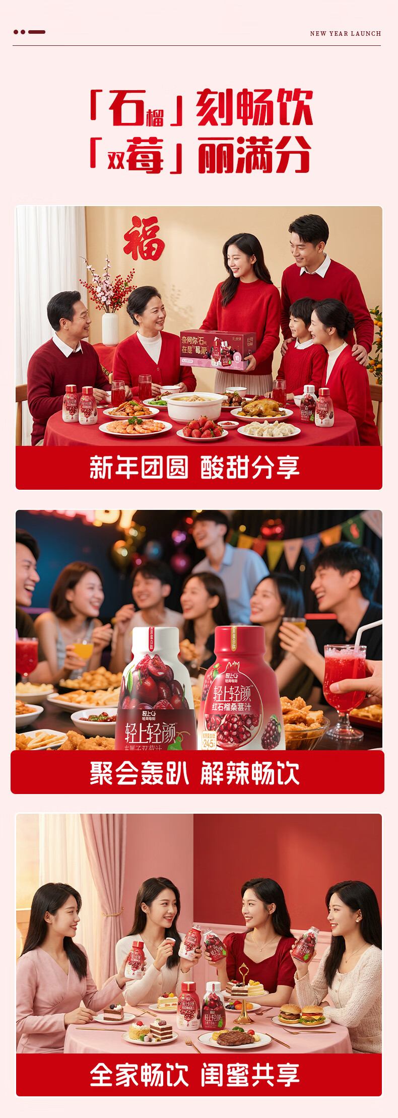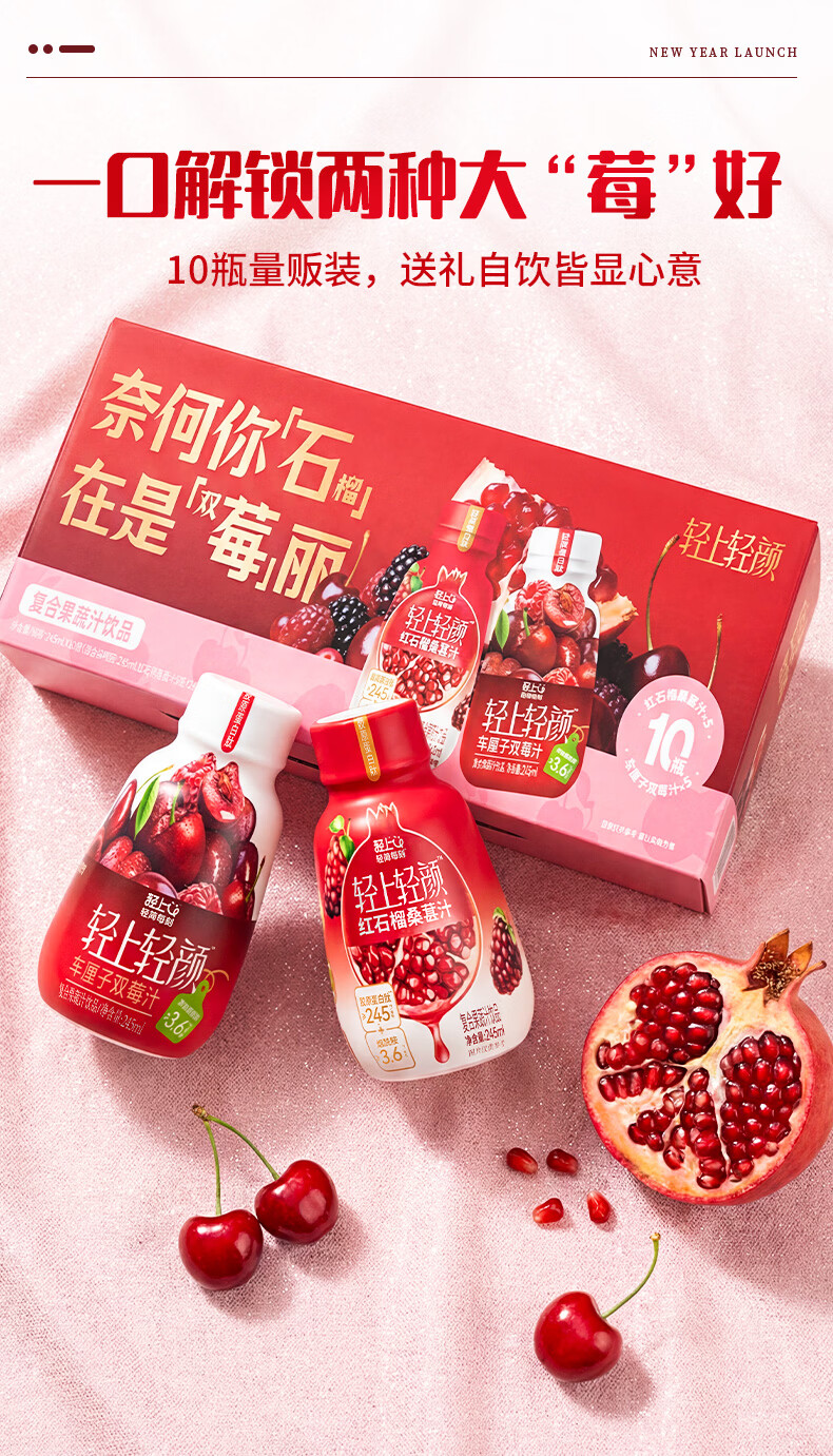 轻上【年货送礼】轻颜红石榴桑葚汁车厘子双莓汁富含维C酸甜可口整箱 红石榴桑椹汁1L*2瓶+车厘子双莓汁1L*2
