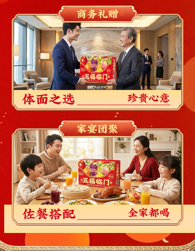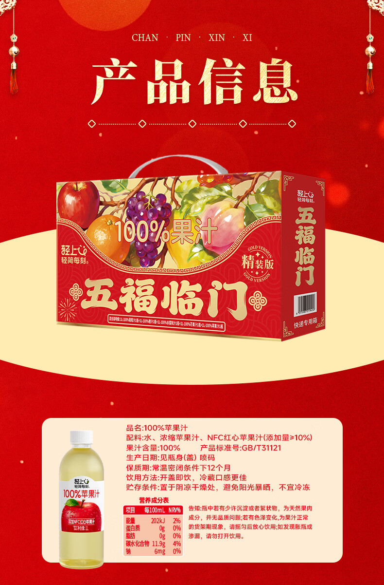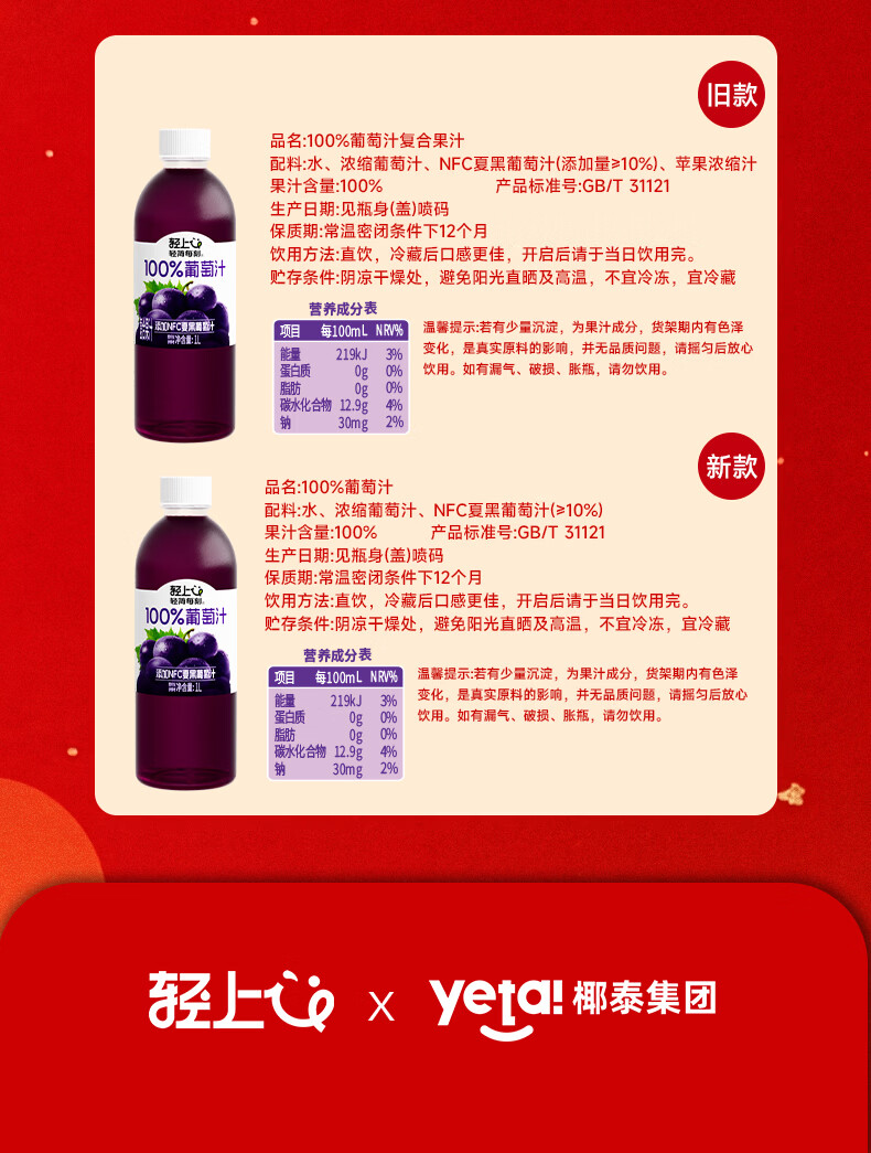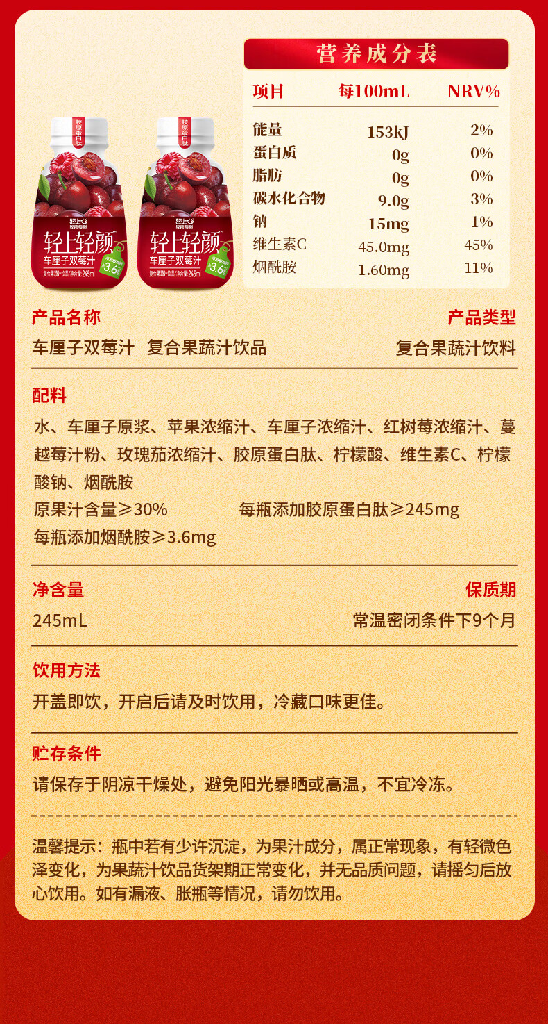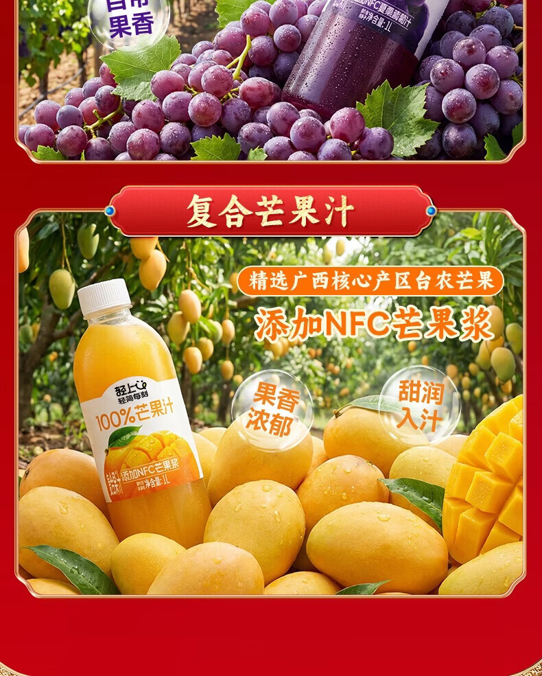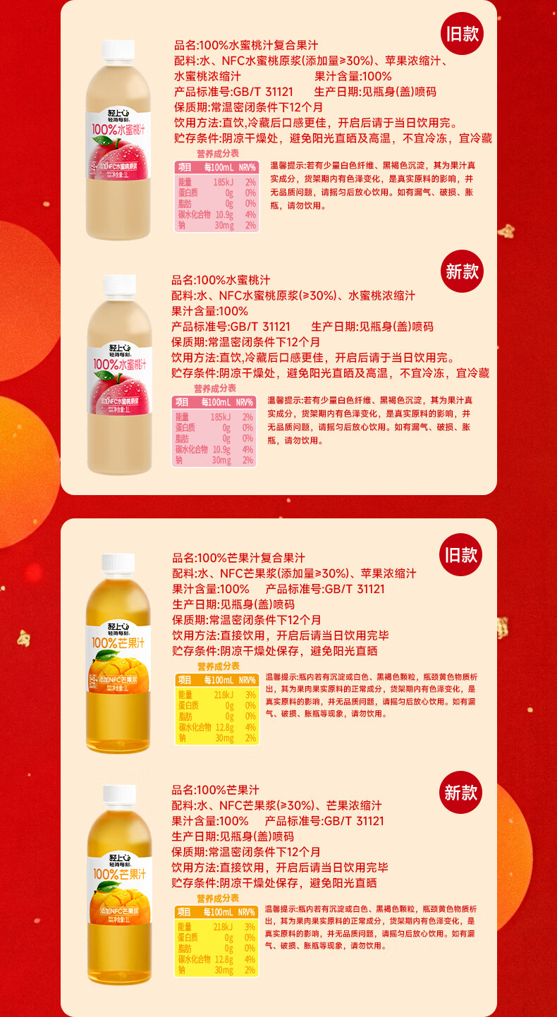 轻上【年货送礼】轻颜红石榴桑葚汁车厘子双莓汁富含维C酸甜可口整箱 红石榴桑椹汁1L*2瓶+车厘子双莓汁1L*2