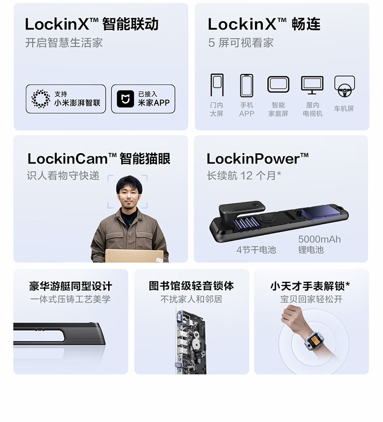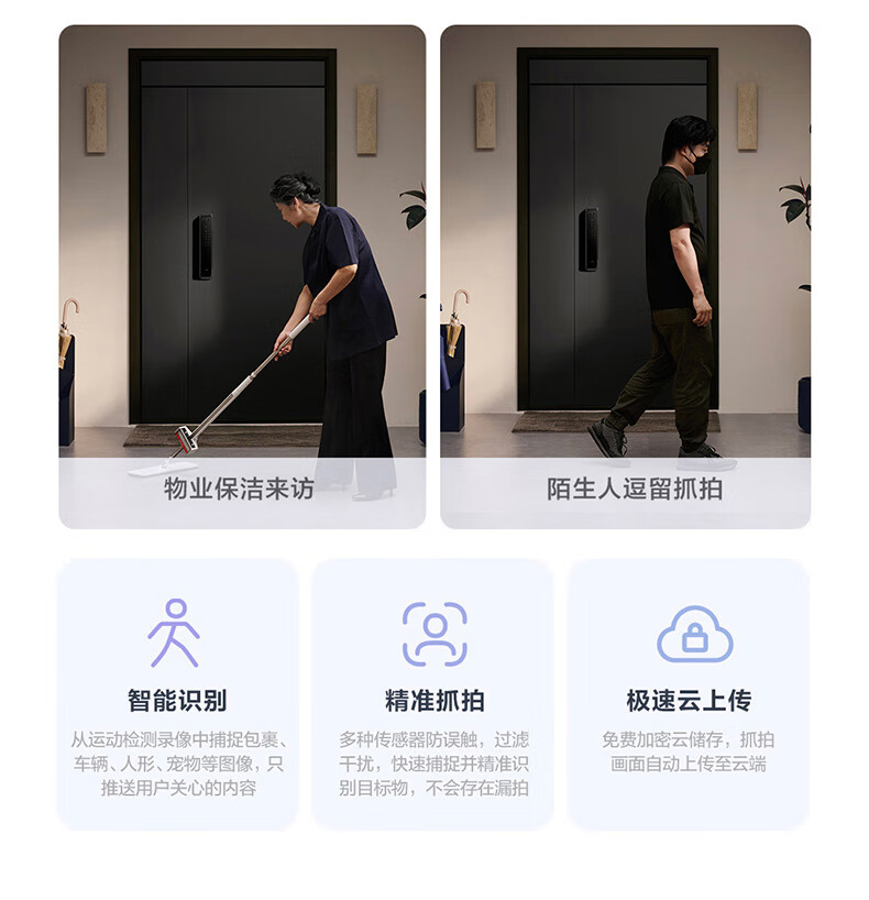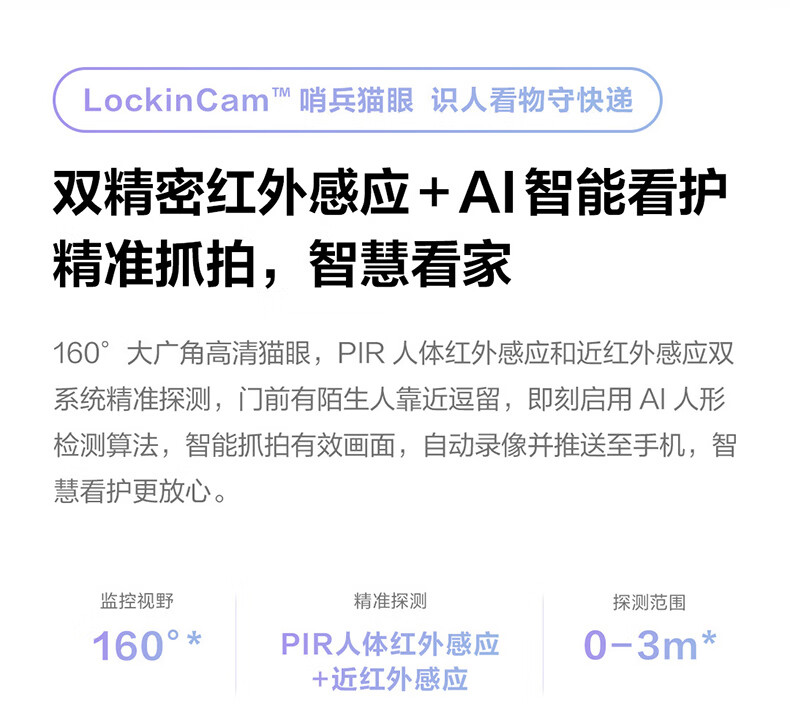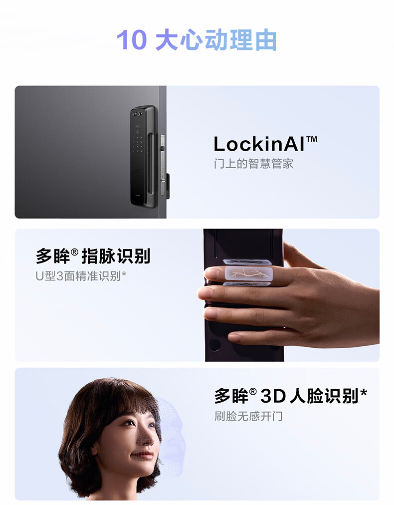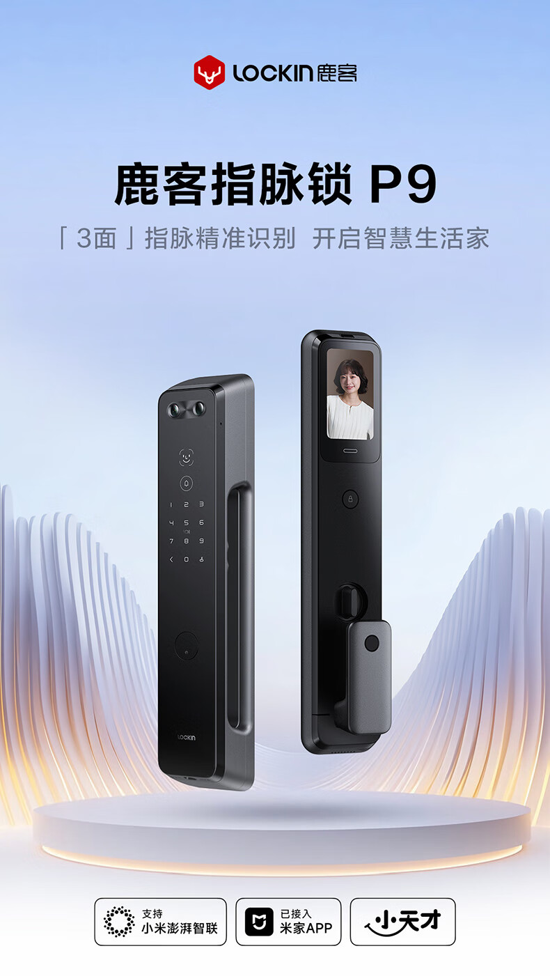 鹿客智能门锁指脉锁 人脸识别猫眼大屏智能联动密码锁电子锁P9