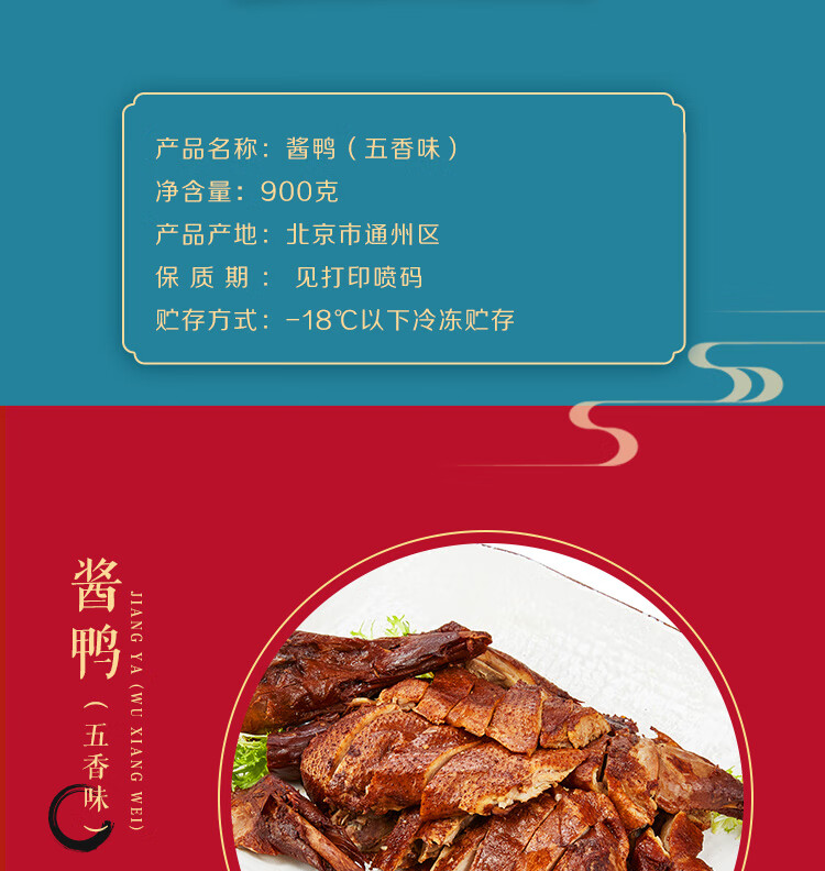 全聚德酱鸭年节礼品 北京特产小吃卤味零食熟食年货春节送礼冷冻预制菜 五香酱鸭900g/袋