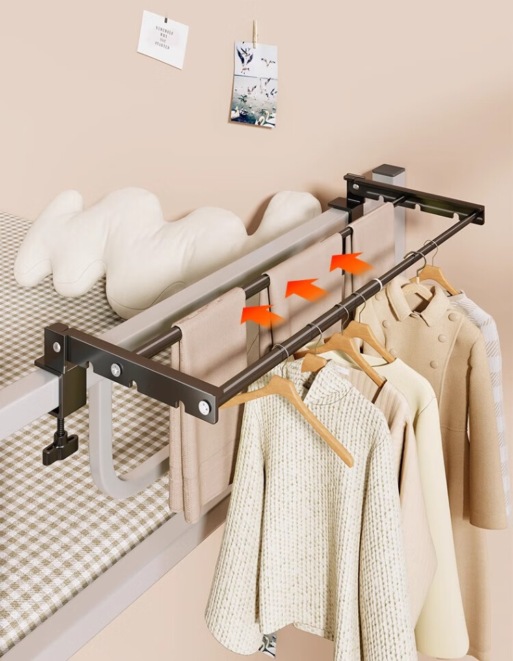 尔思家宿舍床边挂衣架床尾放衣服神器上铺收纳挂篮免打孔悬挂式整理架 伸缩款【37-67cm】