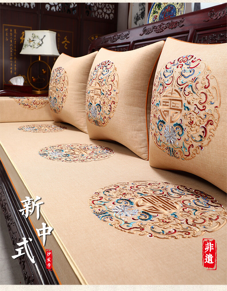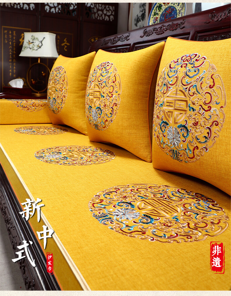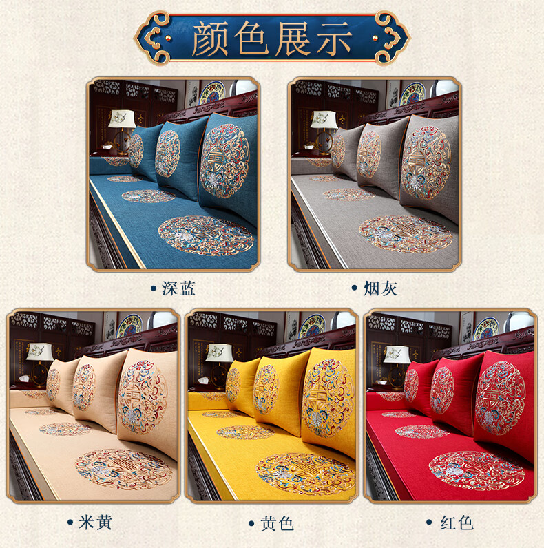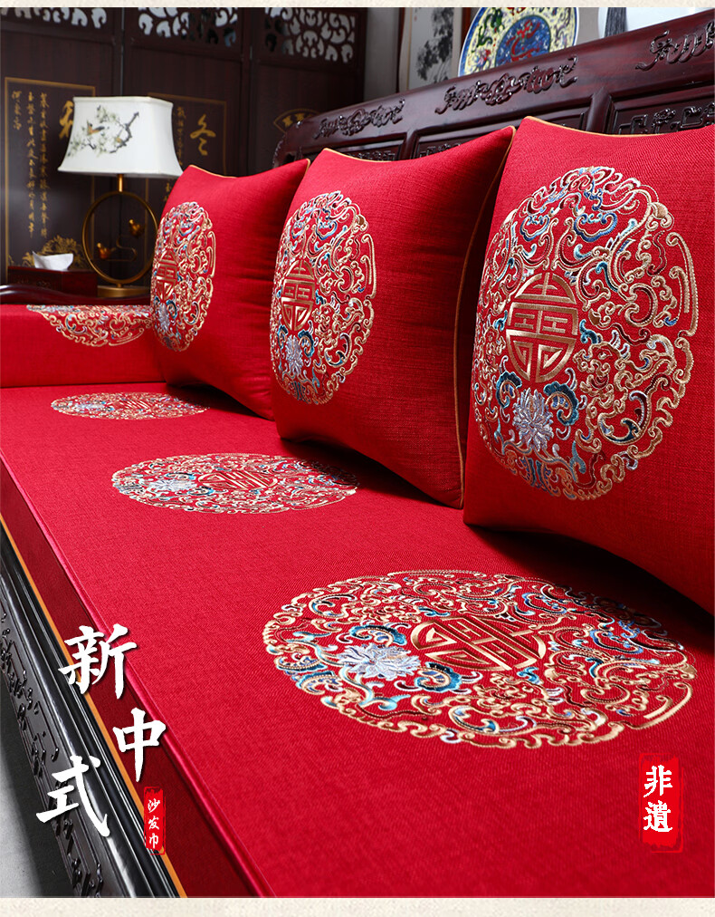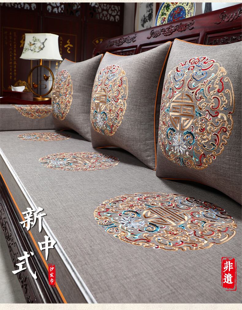 大唐梦新中式红木沙发盖布座垫套罩靠背巾全盖定制高级感防滑直排沙发巾 福庆 深蓝【多丽丝麻/刺绣/防水/防滑】 60cm*60cm【单人坐垫/靠背巾/扶手巾】不含内芯