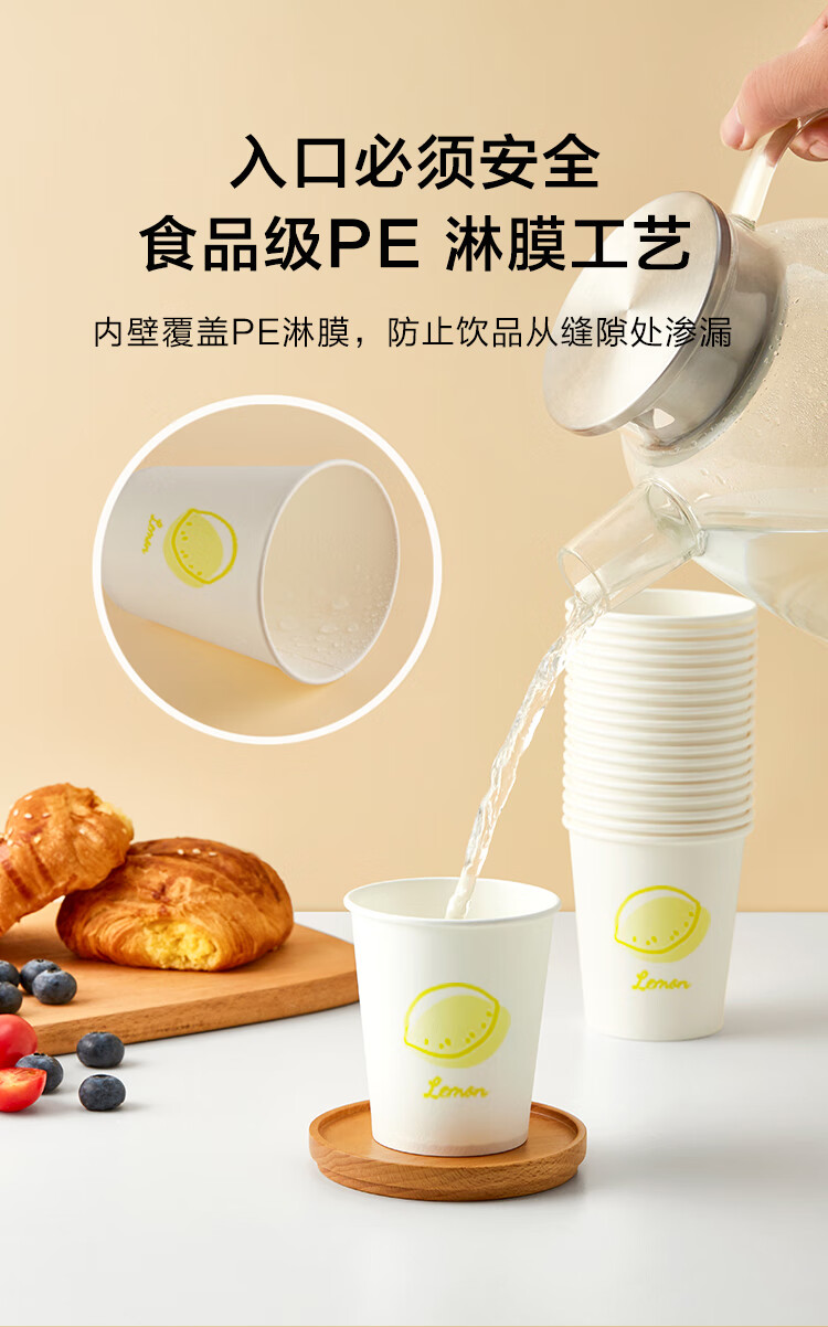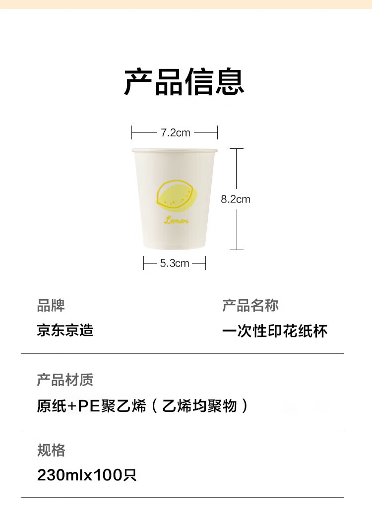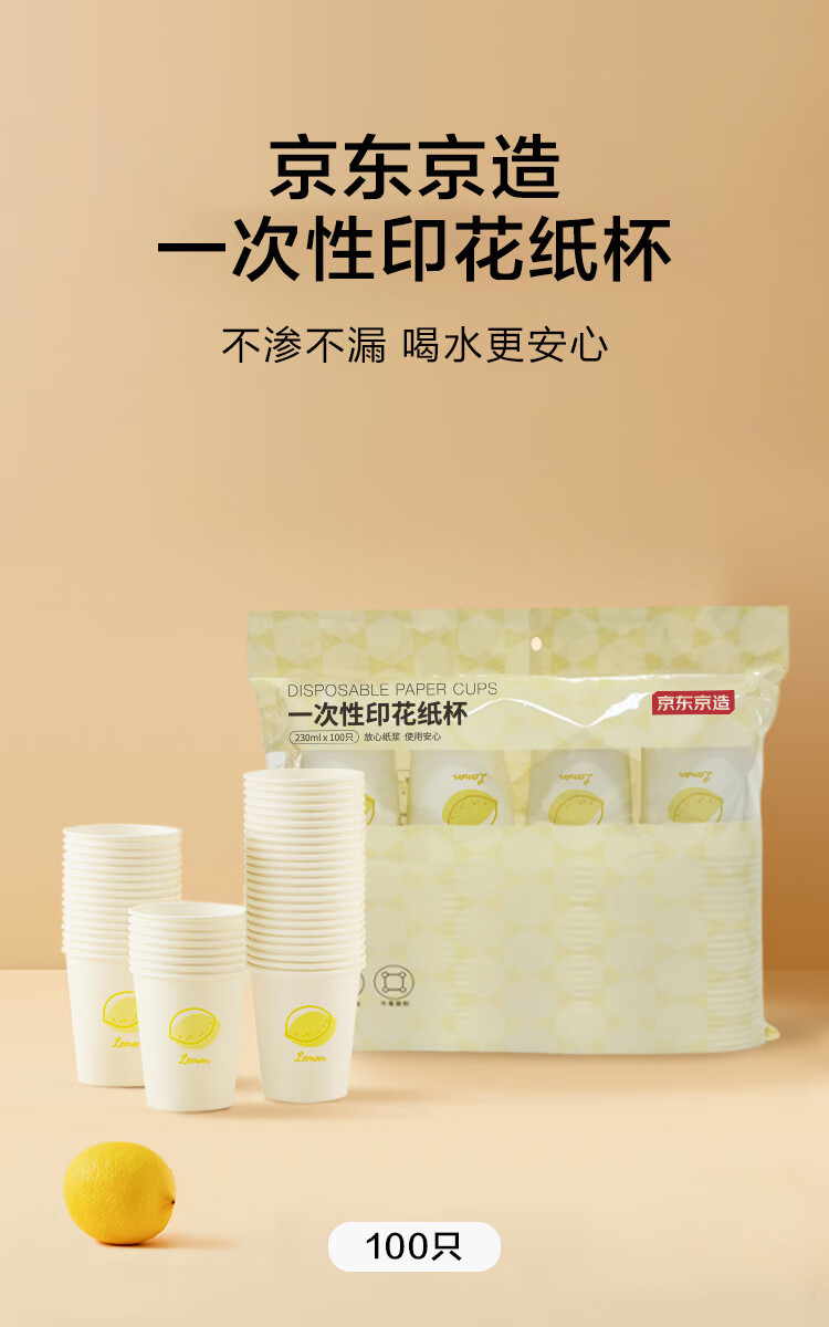 京东京造 纸杯一次性杯子 加厚食品级办公商务家用水杯230ml【100只】