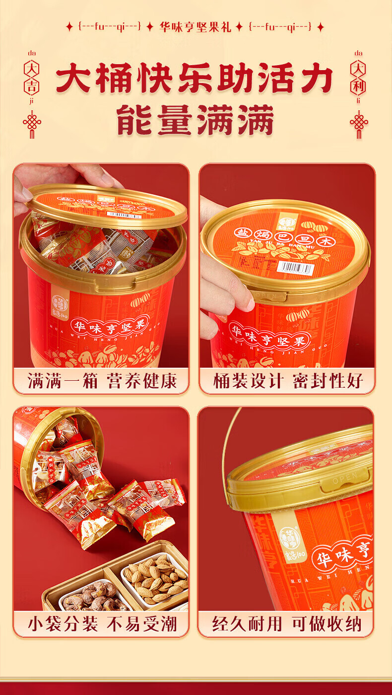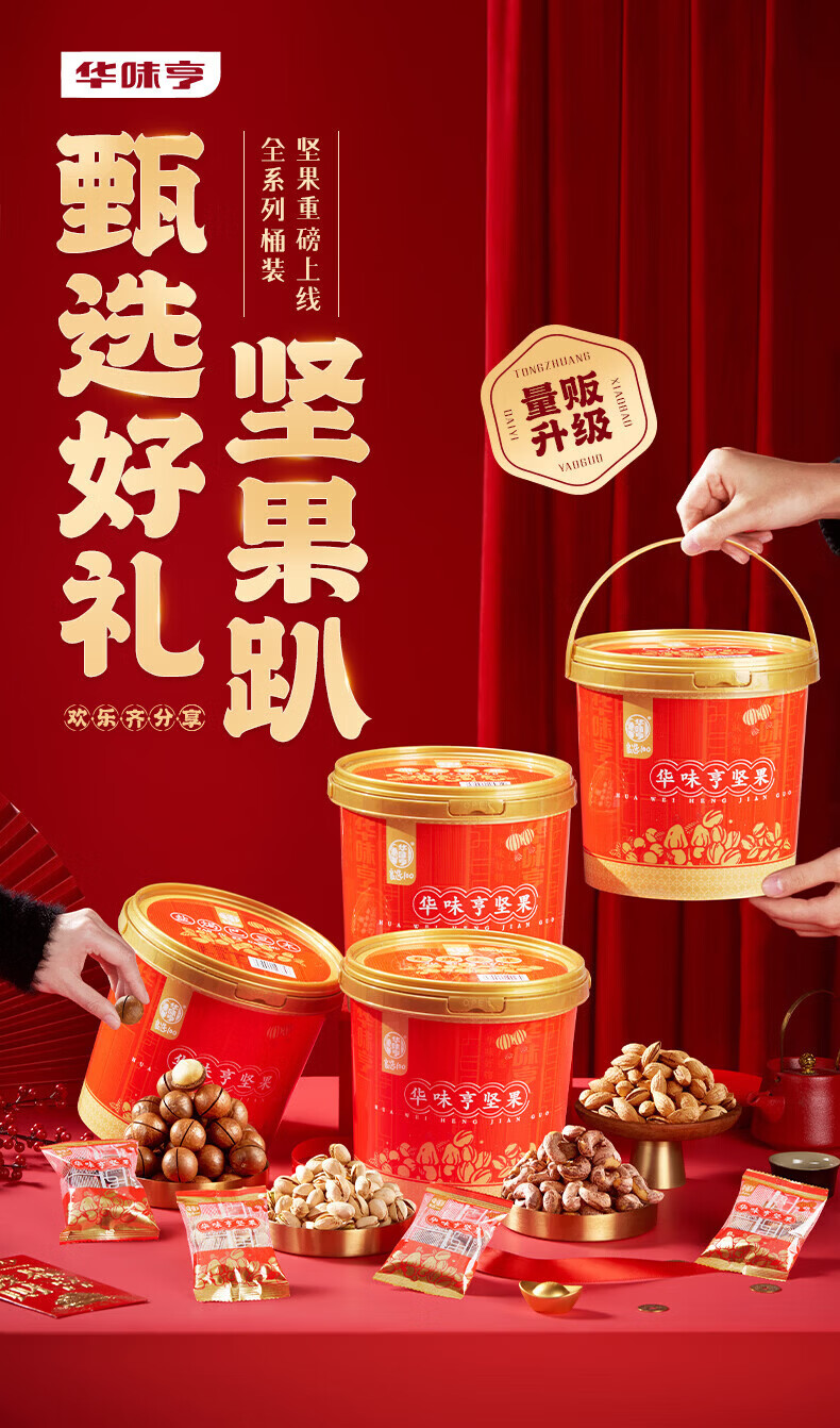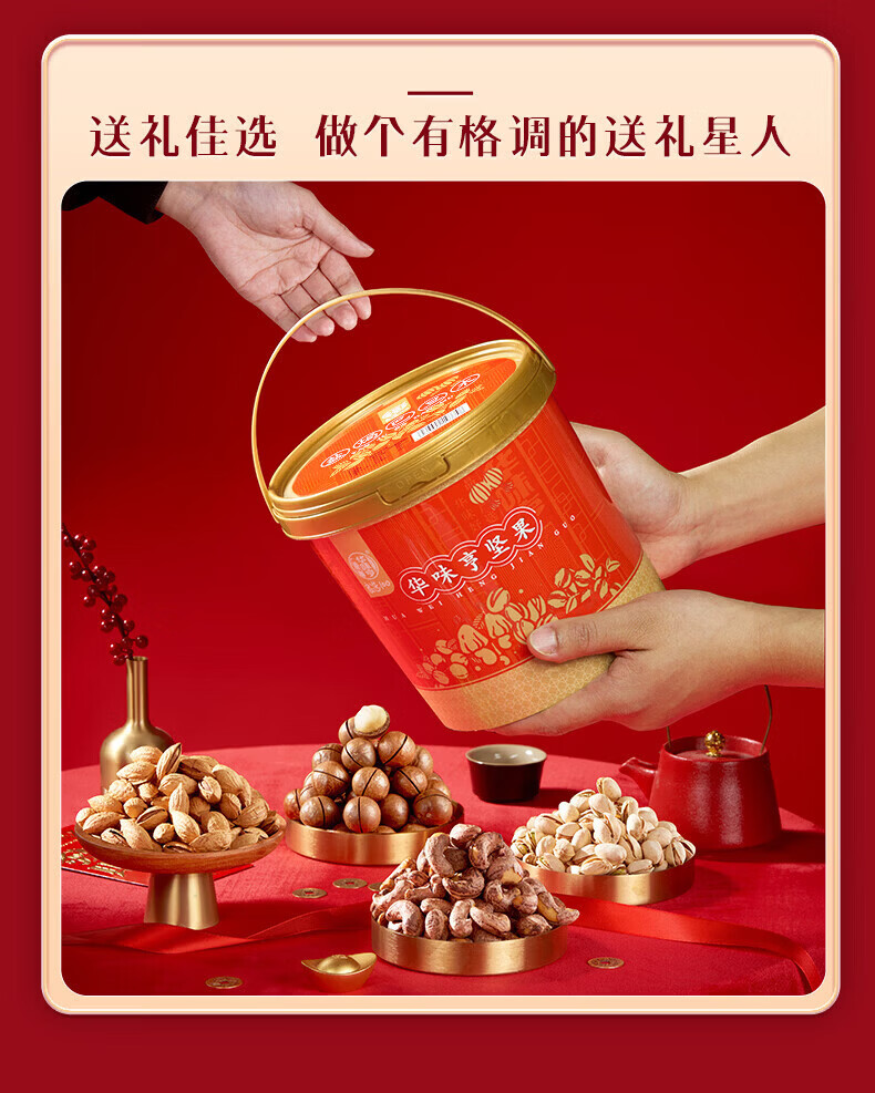 华味亨桶装混合坚果1kg 坚果炒货开心果腰果年货礼盒送礼零食休闲小吃 500g夏威夷果+500g盐焗巴旦木