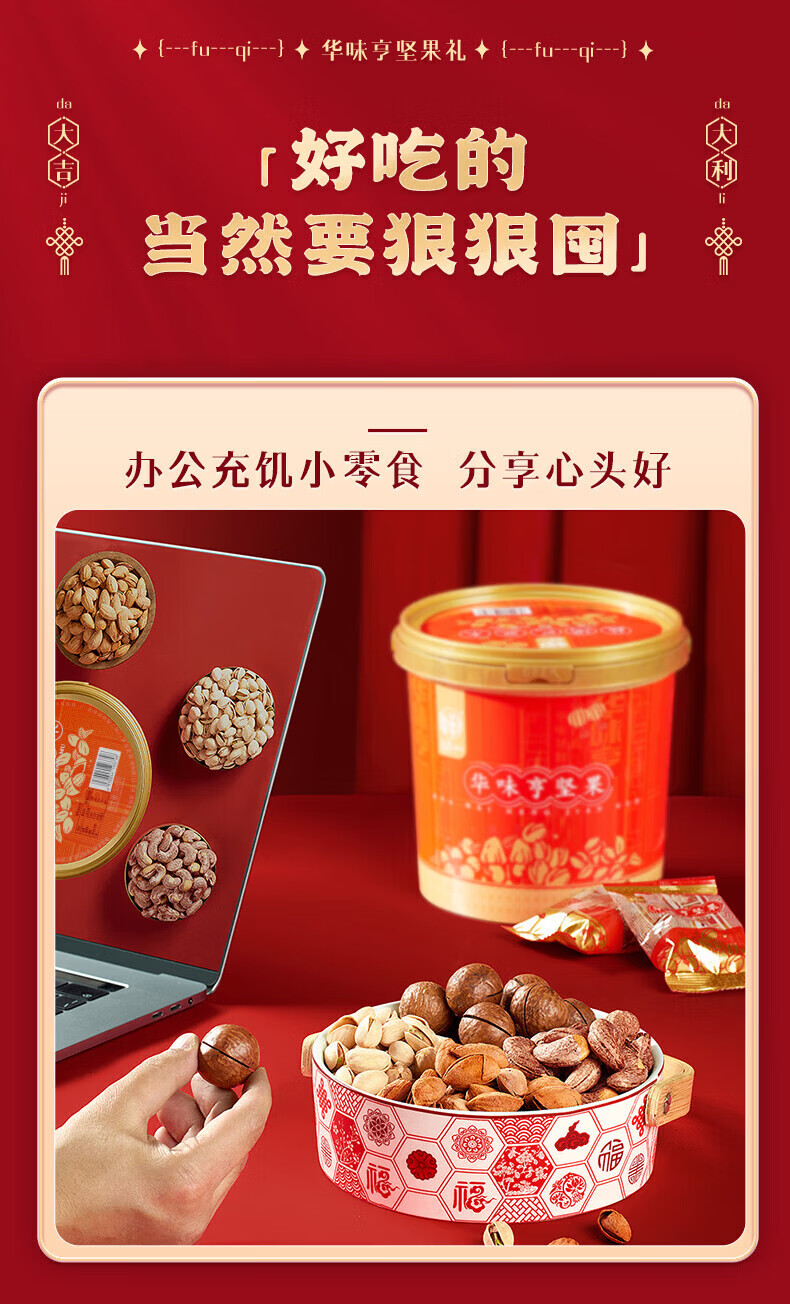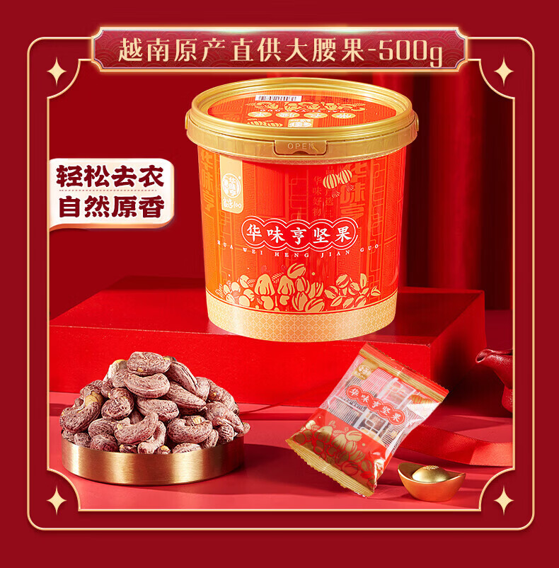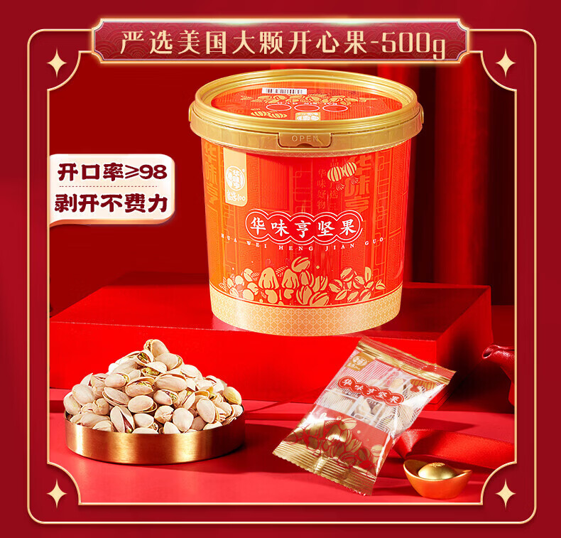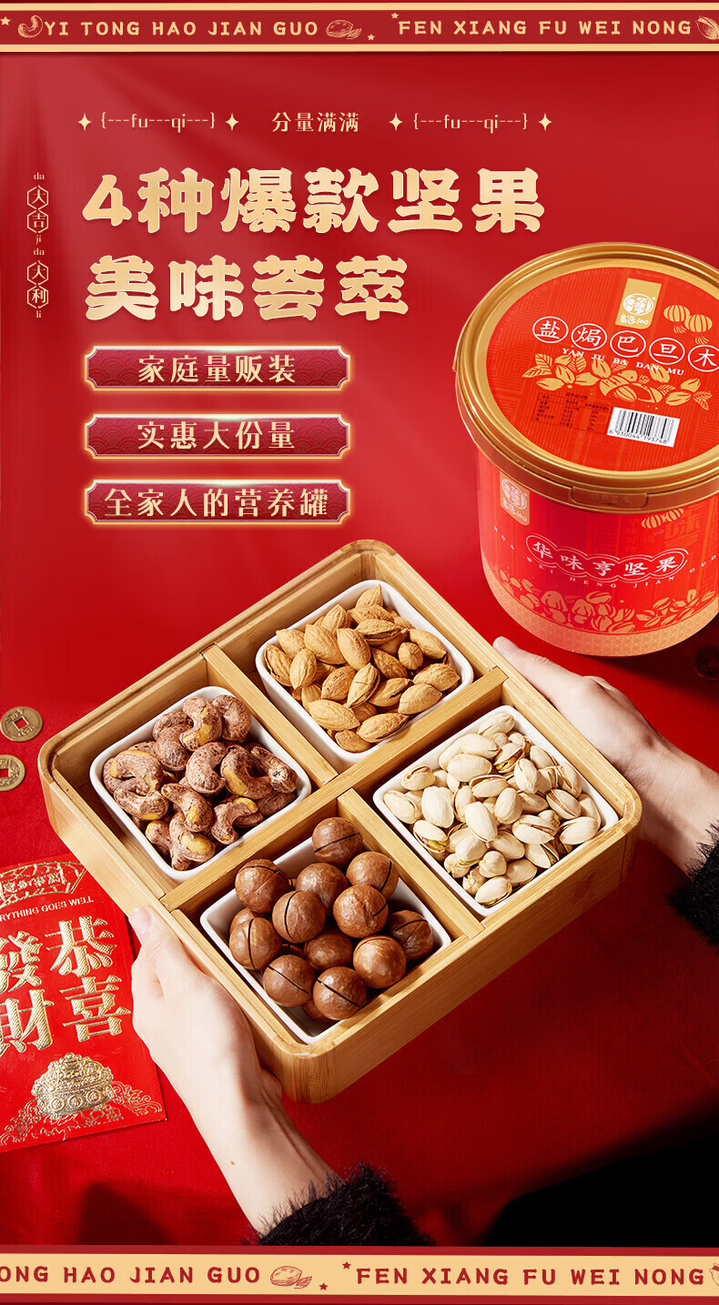 华味亨桶装混合坚果1kg 坚果炒货开心果腰果年货礼盒送礼零食休闲小吃 500g夏威夷果+500g盐焗巴旦木