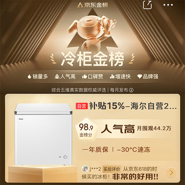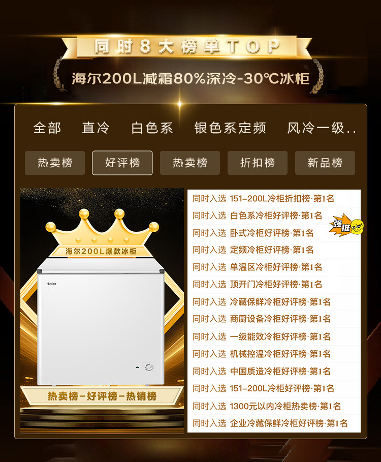 海尔(Haier)200L单温冰柜小型家用小冰柜商用减霜一级能效冷藏冷冻转换深冷冷柜小冰箱BC/BD-200GHW9D国家补贴