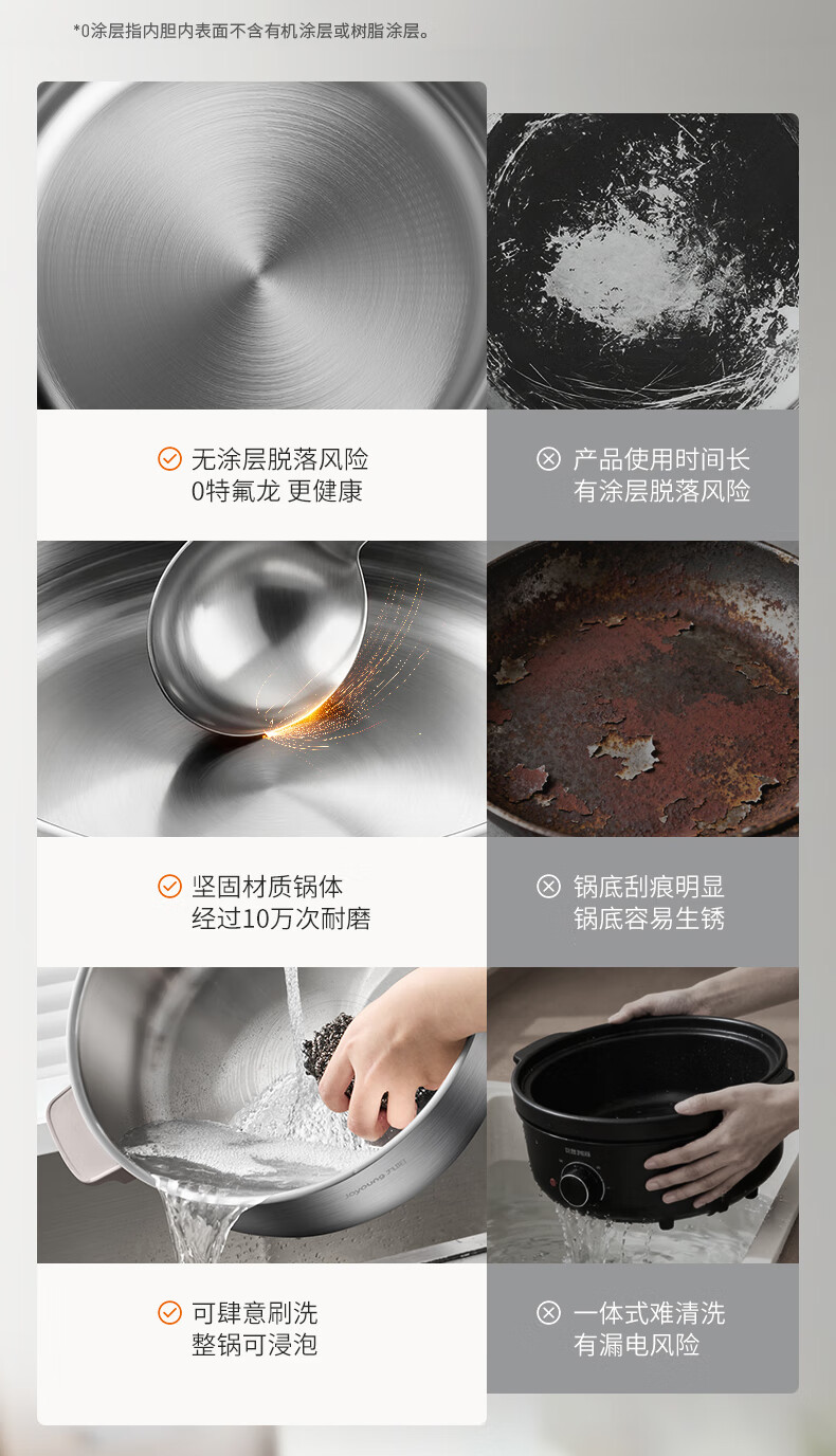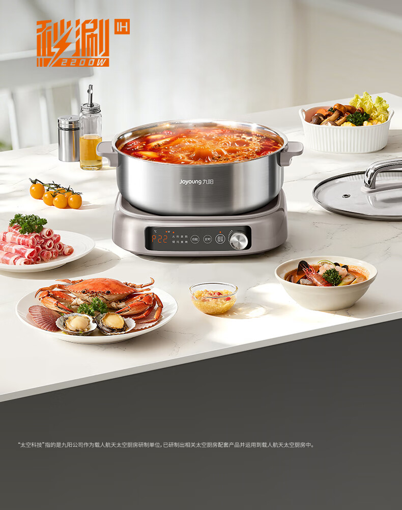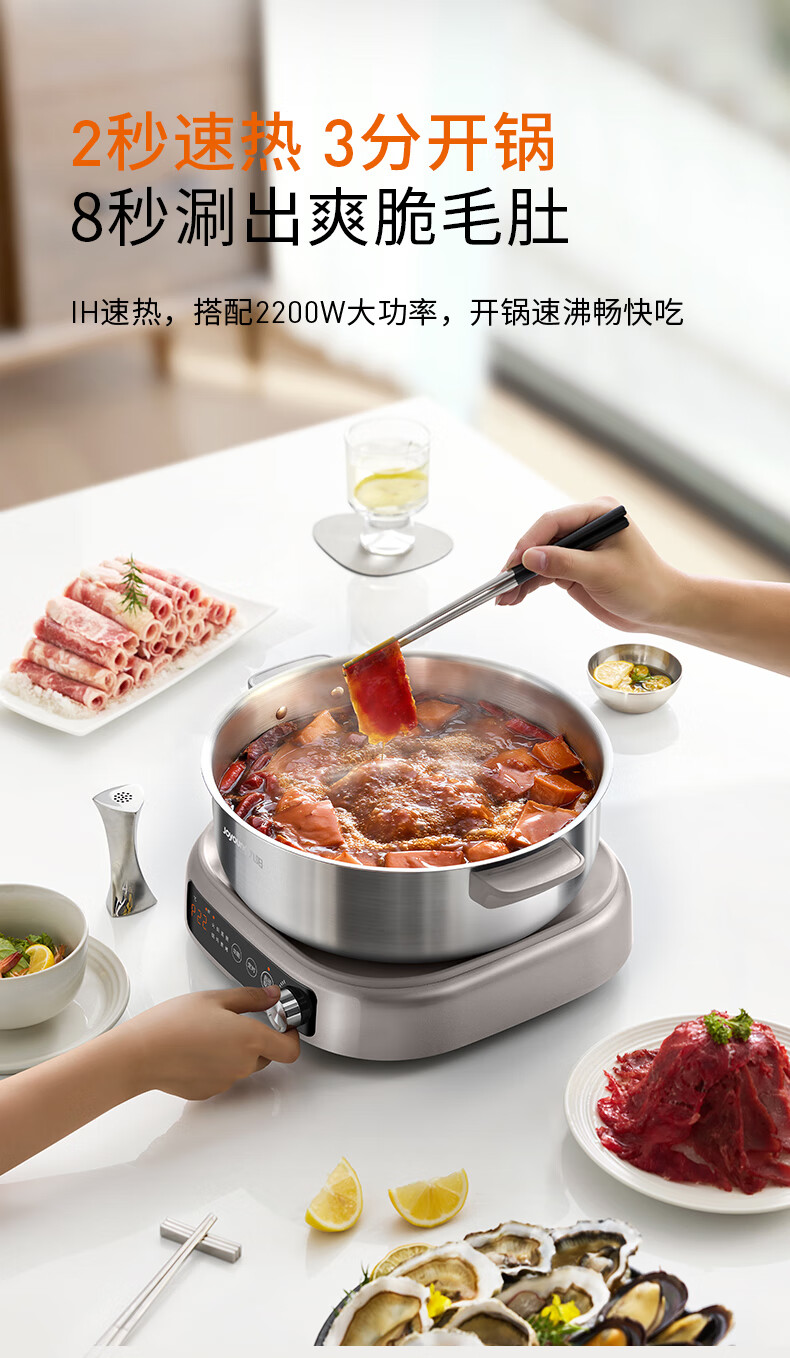 九阳(Joyoung)0涂层IH秒涮电火锅火锅专用锅电锅家用4-8人分体式可拆洗多功能电蒸锅不锈钢电煮锅6L火锅锅GN12