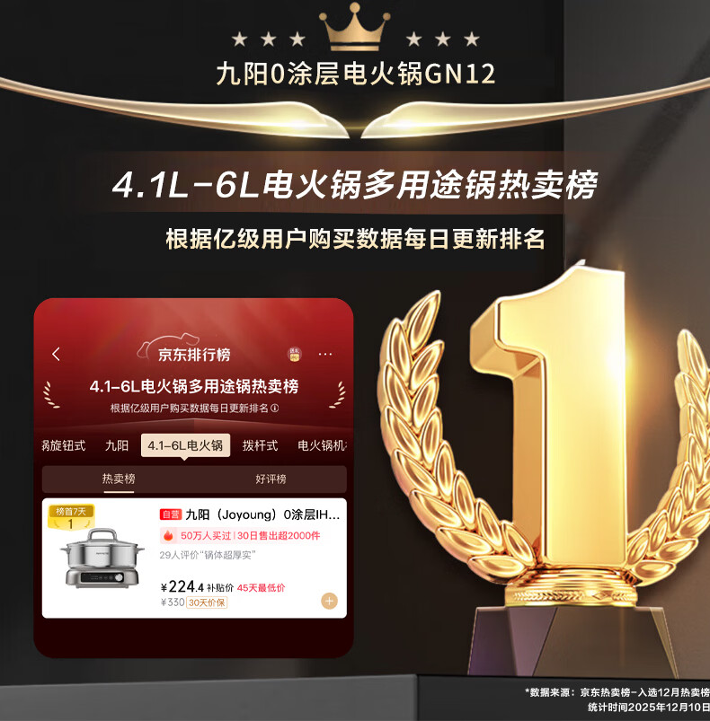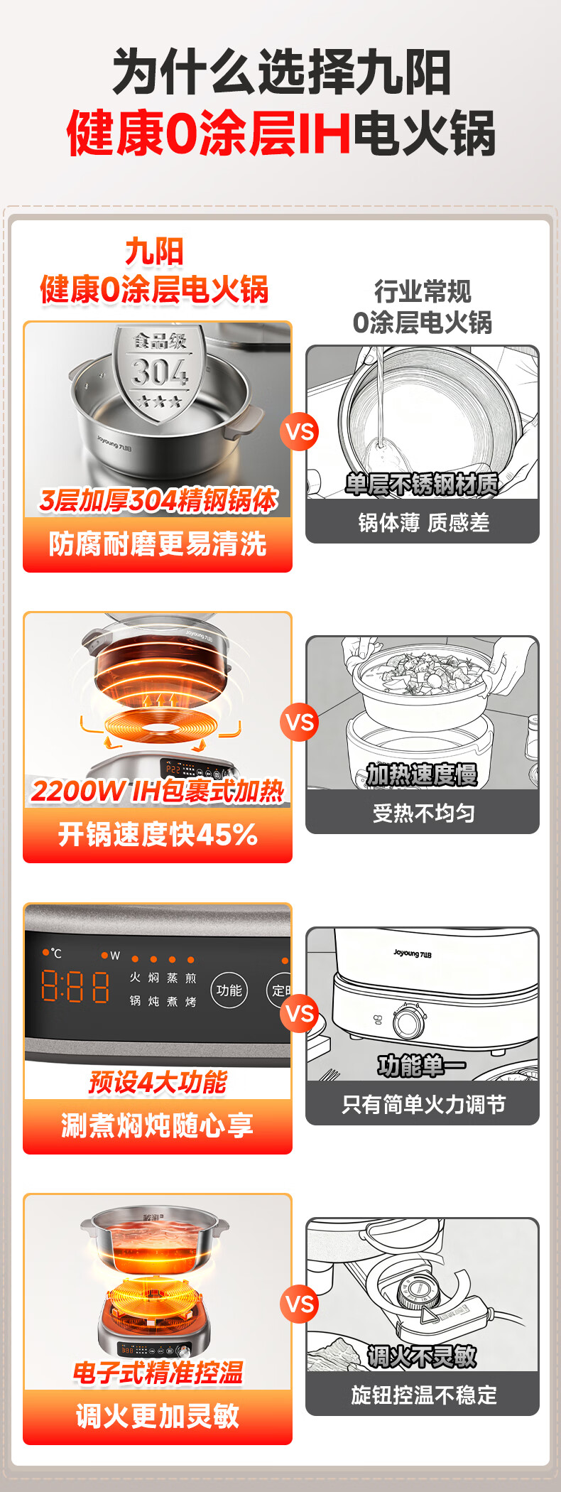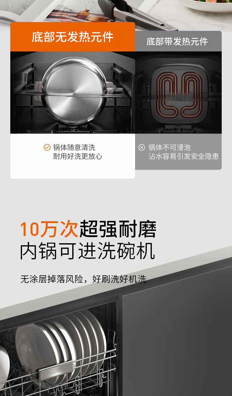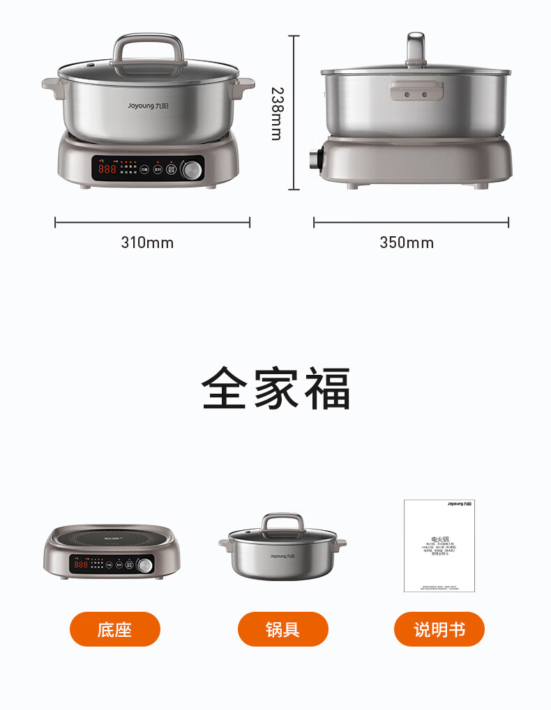 九阳(Joyoung)0涂层IH秒涮电火锅火锅专用锅电锅家用4-8人分体式可拆洗多功能电蒸锅不锈钢电煮锅6L火锅锅GN12