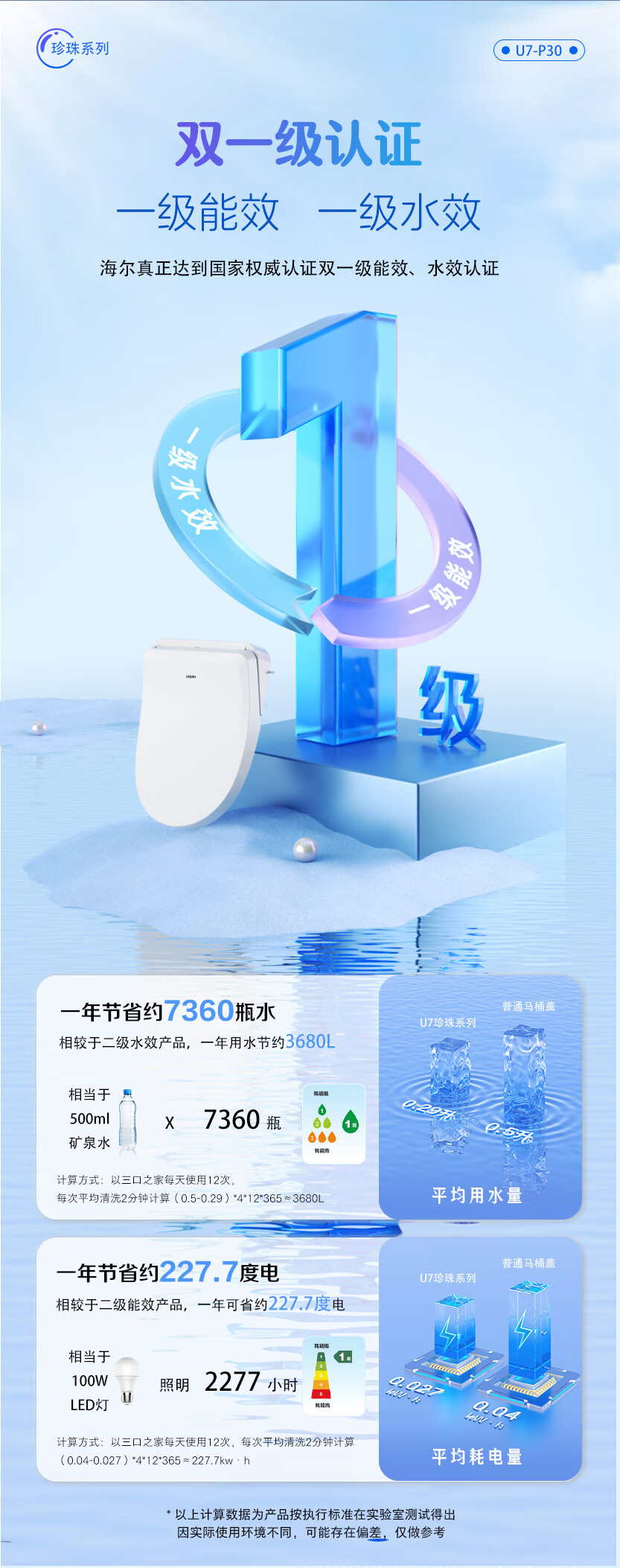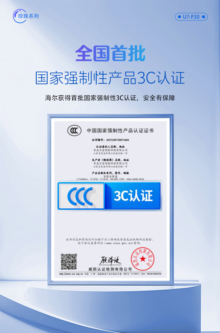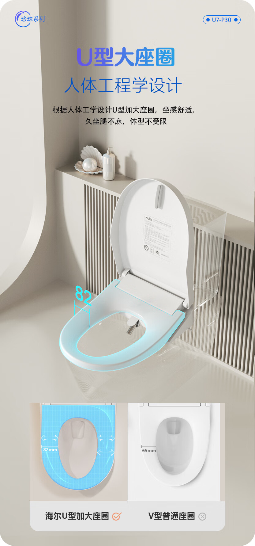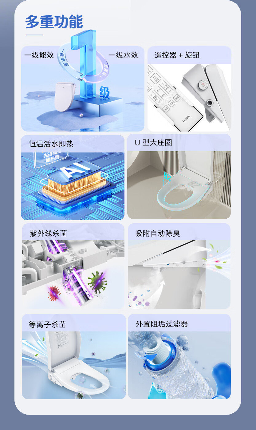 海尔(Haier)珍珠系列 智能马桶盖 U型大座圈 即热烘干 双重杀菌 自动除臭 【U7高端遥控款】 【海尔售后 免费安装】包送货上门