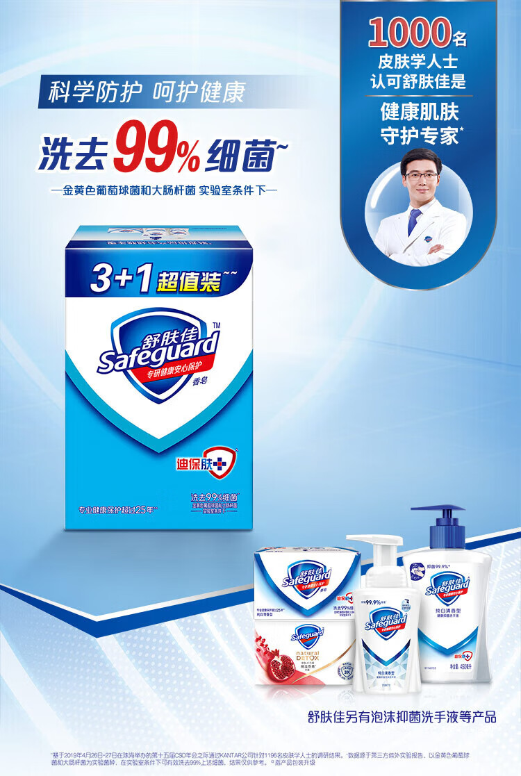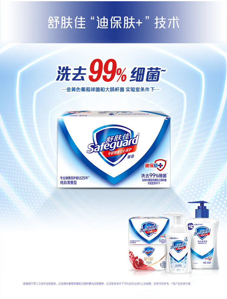 舒肤佳【严选百货】香皂 纯白清香4块皂 沐浴皂肥皂 新老包 4块 100g 纯白清香香皂