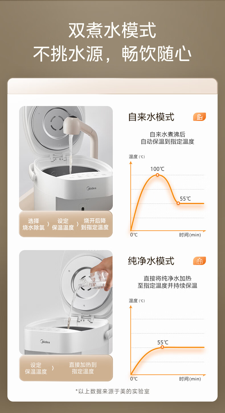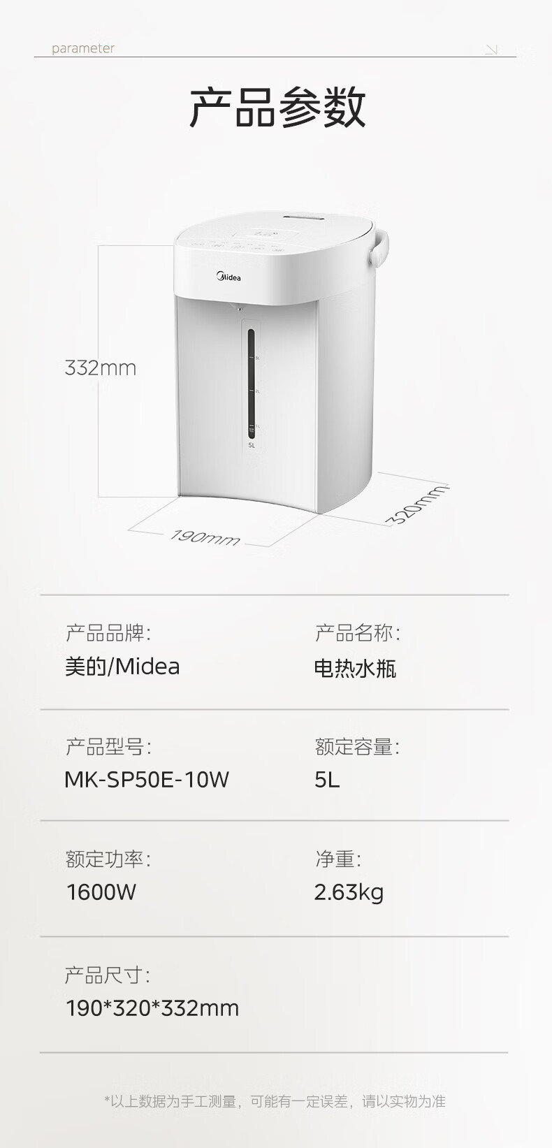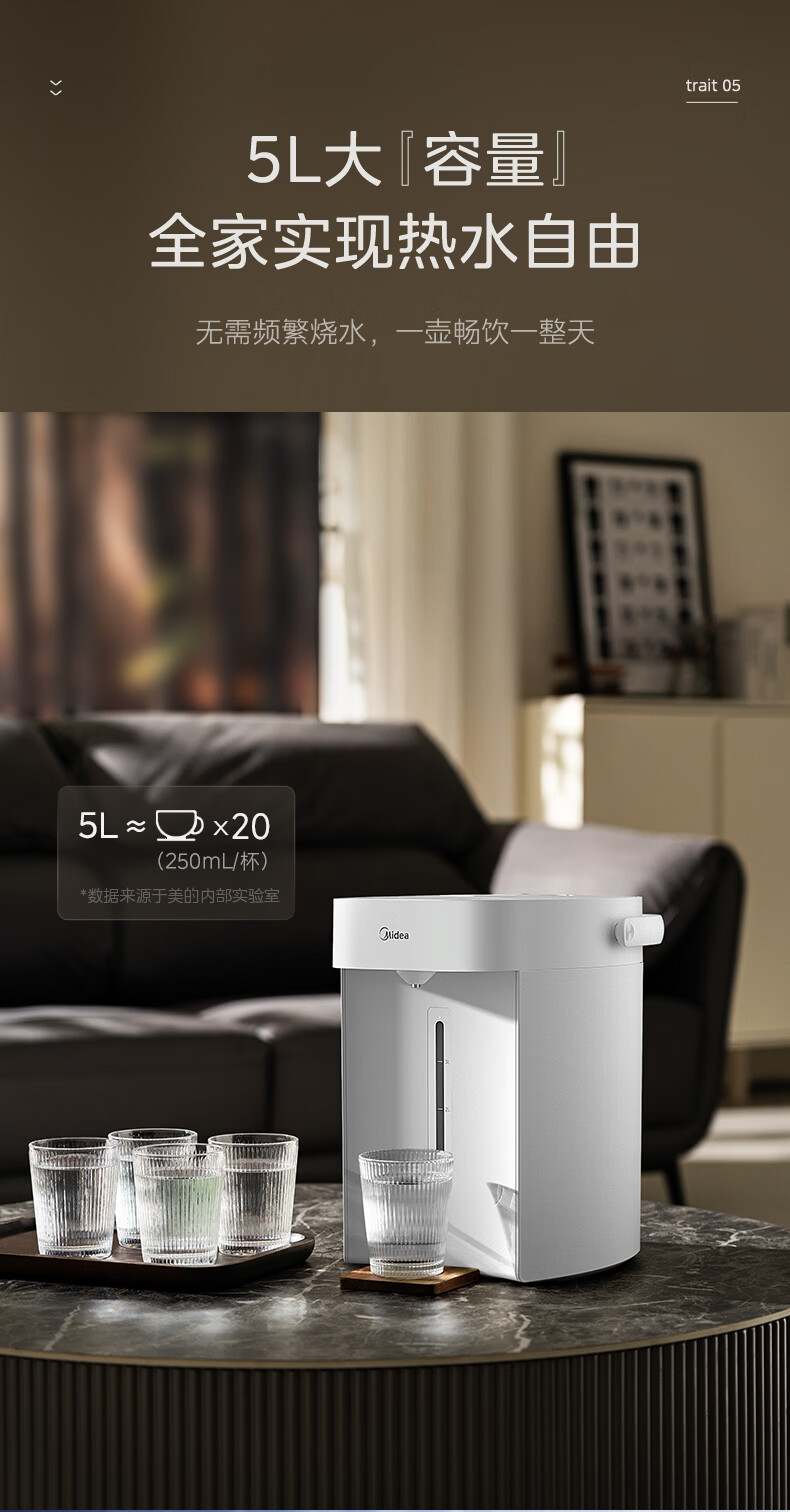 美的(Midea)电热水瓶烧水壶恒温电热水壶开水壶一体无缝内胆0塑料家用5L大容量多段保温恒温自动断电SP50E-10W