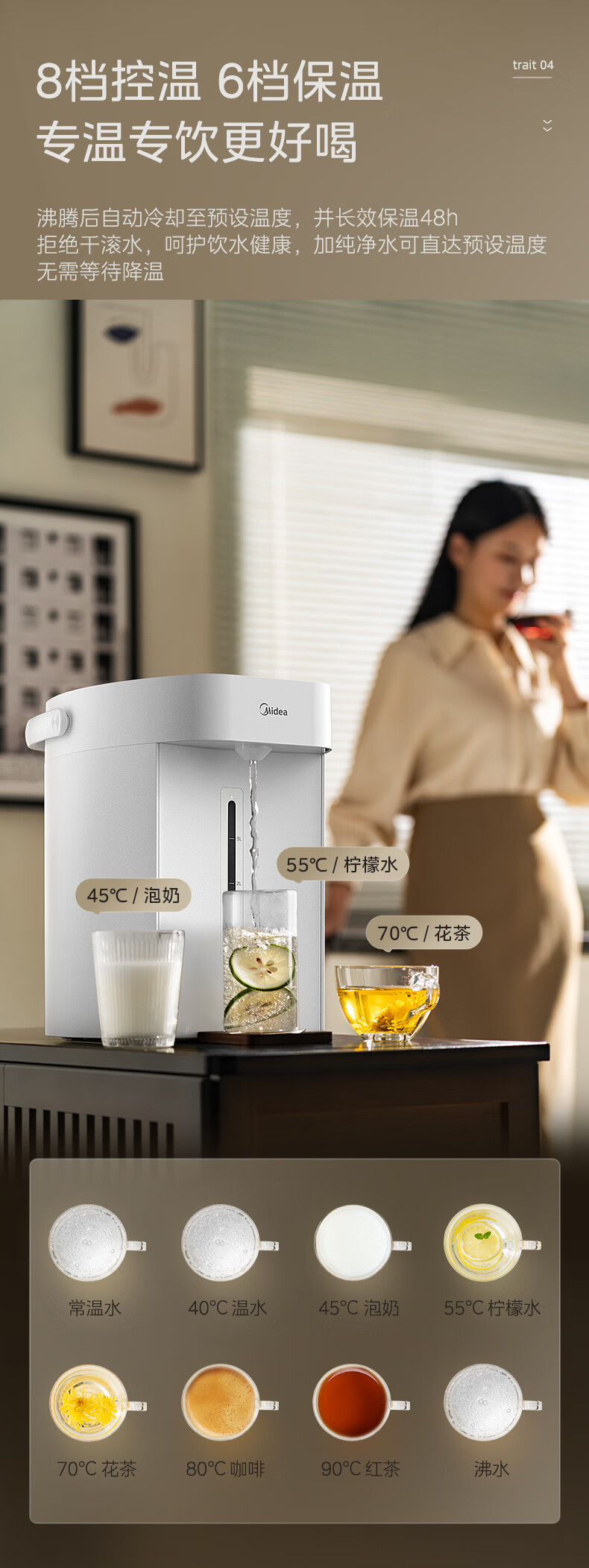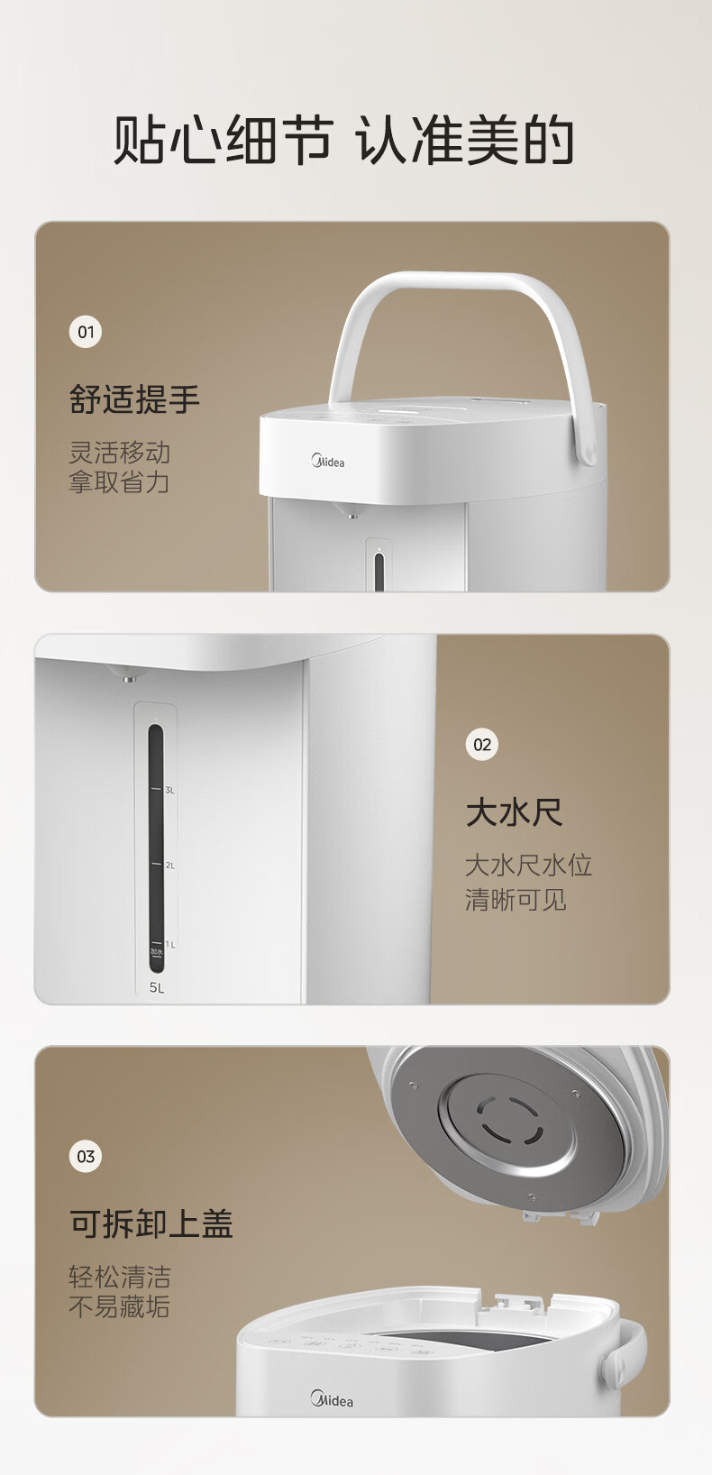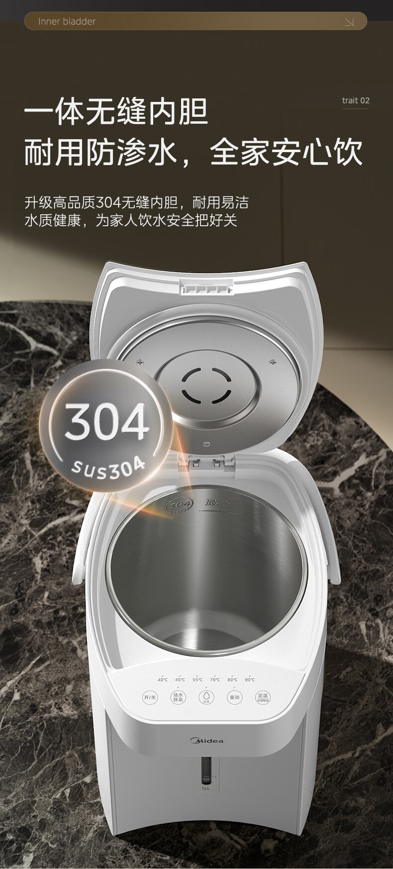 美的(Midea)电热水瓶烧水壶恒温电热水壶开水壶一体无缝内胆0塑料家用5L大容量多段保温恒温自动断电SP50E-10W